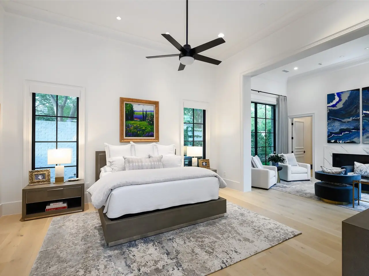 Beautifully redesigned in 2022 by Knox Built and further enhanced in 2024 by Reilly Homes, this design-forward estate in Los Arboles, one of Dallas most exclusive 24-hour guarded and gated communities, offers timeless luxury in the heart of Preston Hollow. Set among tranquil ponds, mature trees, and manicured landscapes, the transitional home was thoughtfully crafted for both everyday living and elevated entertaining. The main level showcases a vaulted study, a luxurious primary suite expanded to include a sitting area, fireplace, and dual custom closets with serene pool views, plus a gracious guest suite. Expansive formal living and dining areas feature marble details, Phillip Jeffries wall coverings, and Visual Comfort lighting. The chef’s kitchen boasts fine Ornare cabinetry, Wolf and Sub-Zero appliances, and stone countertops, opening seamlessly to a spacious family room with oversized sliding glass doors that blur the line between indoors and out. Upstairs offers three generously sized guest bedrooms, a living area and gym or game room. The outdoor spaces include a heated pool, covered patio, turfed backyard, and separate gated grassy side yard. Countless upgrades include: a whole-home generator, high SEER AC units, premium finishes, and a 3-car garage with additional front parking, this property provides refined, low-maintenance living. Just minutes from top-rated private schools, luxury shopping, and fine dining, 9 Robledo Drive presents a rare opportunity to own a private, sophisticated retreat in one of Dallas premier gated developments.