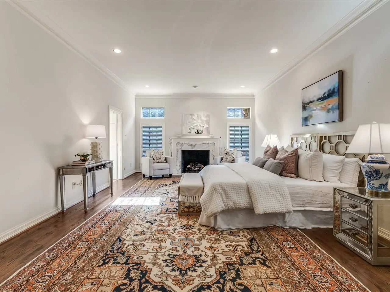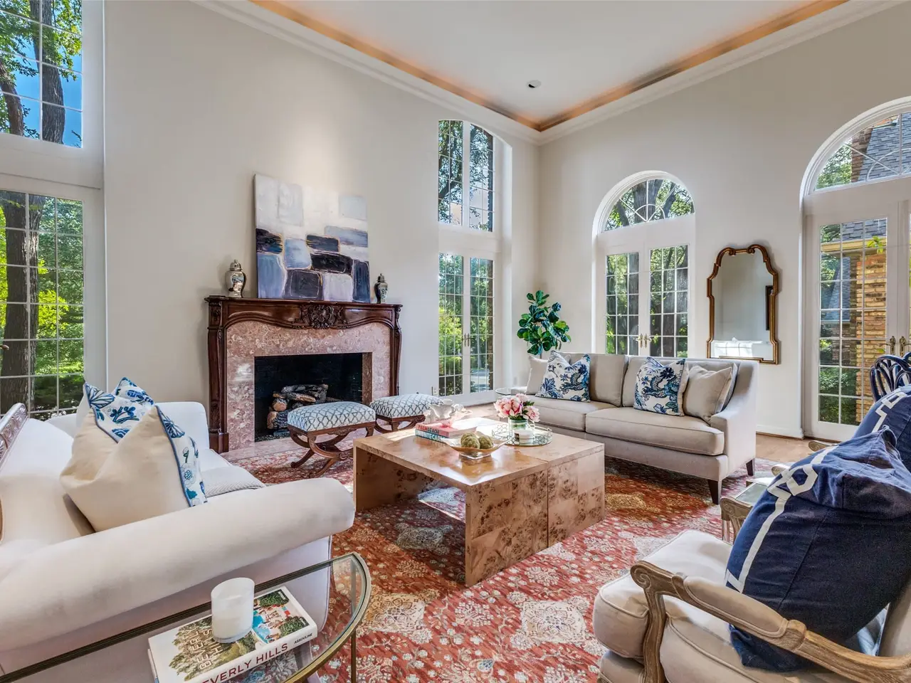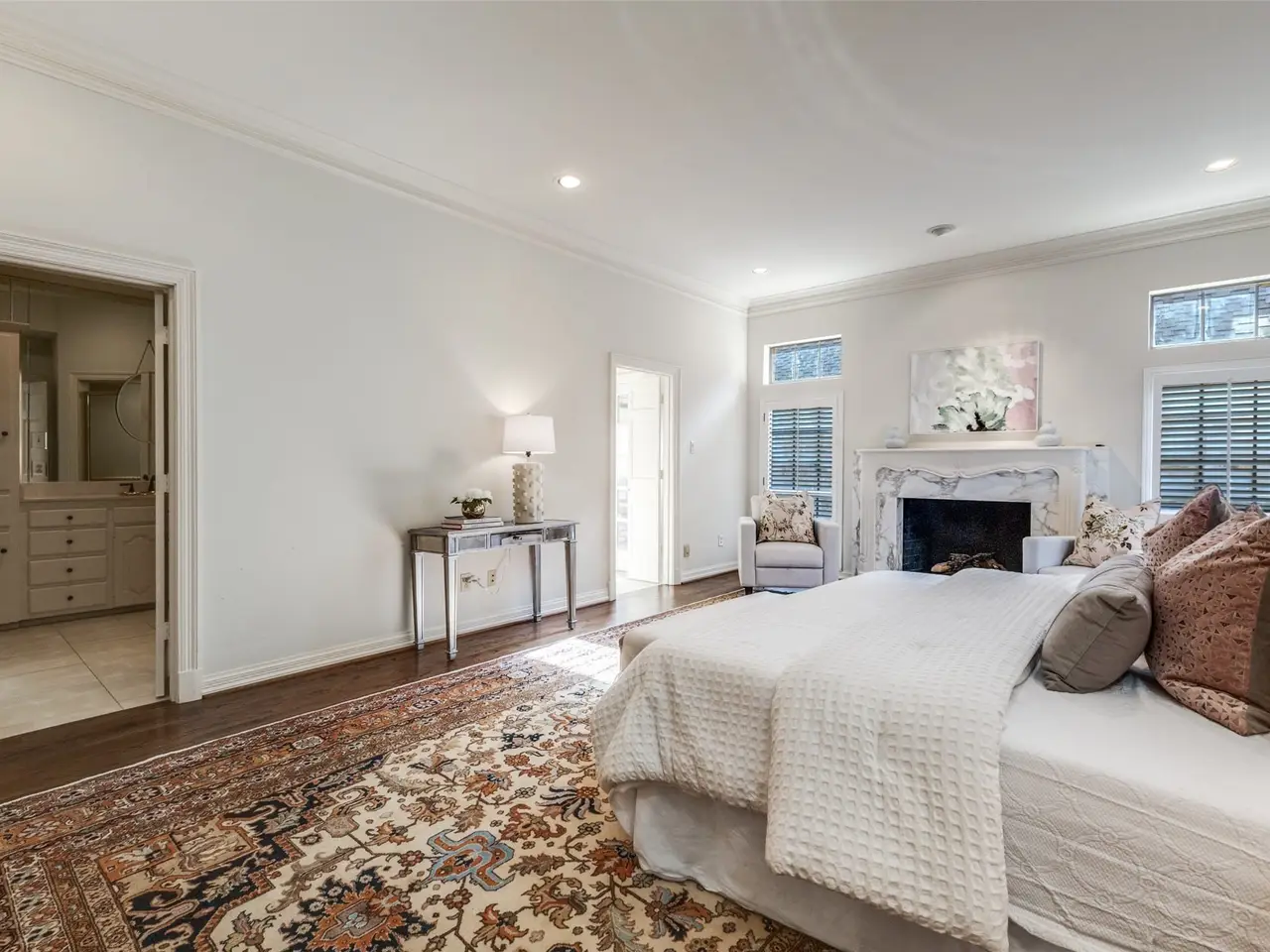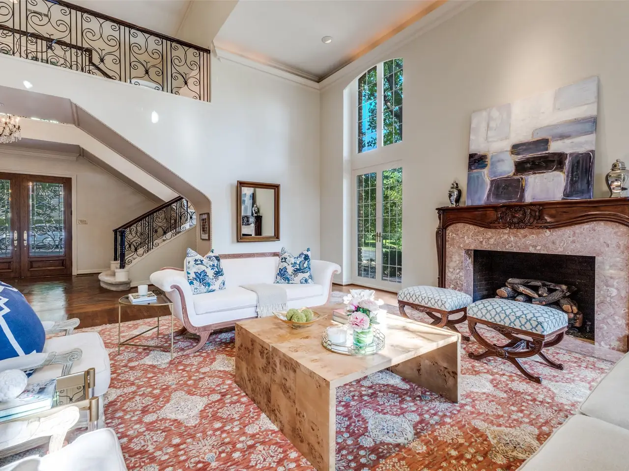 Located in the prestigious gated community of Glen Lakes, this elegant home blends timeless architecture with thoughtful updates. Tall ceilings, intricate moldings, and rich hardwood floors create a warm and inviting atmosphere designed for both entertaining and everyday living.The main living area features a gas fireplace with a marble surround, framed by floor-to-ceiling windows offering serene views of the creek and walking trail. A second living area with its own marble fireplace opens to the chef’s kitchen, showcasing a built-in gas range, double ovens, warming drawer, and Sub-Zero refrigerator, freezer.The grand primary suite is a private retreat with its own marble fireplace, direct courtyard access, dual walk-in closets, and luxurious his-and-hers bathsone with a soaking tub and the other with an oversized shower.Additional highlights include a circular drive with ample parking, pier and beam foundation, three HVAC units, and a roof and gutters and skylights replaced in June 2025. The turfed courtyard provides the perfect low-maintenance outdoor space.Glen Lakes offers 24-hour guarded security, tree-lined streets, sparkling lakes, fountains, and scenic jogging and biking trails. Perfectly located near NorthPark Center, Preston Center, SMU, and the Dallas Arts District, this community provides both tranquility and convenience.