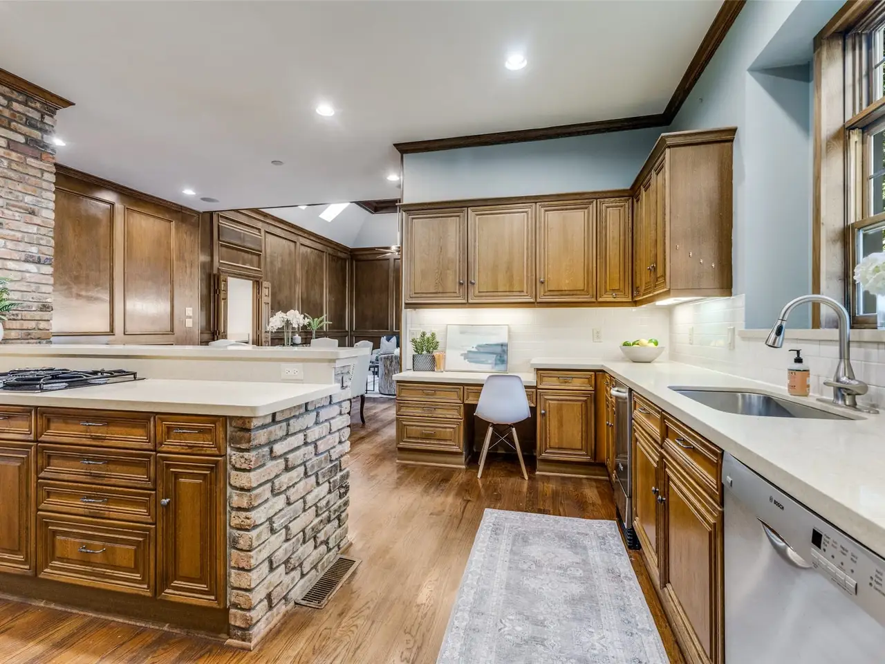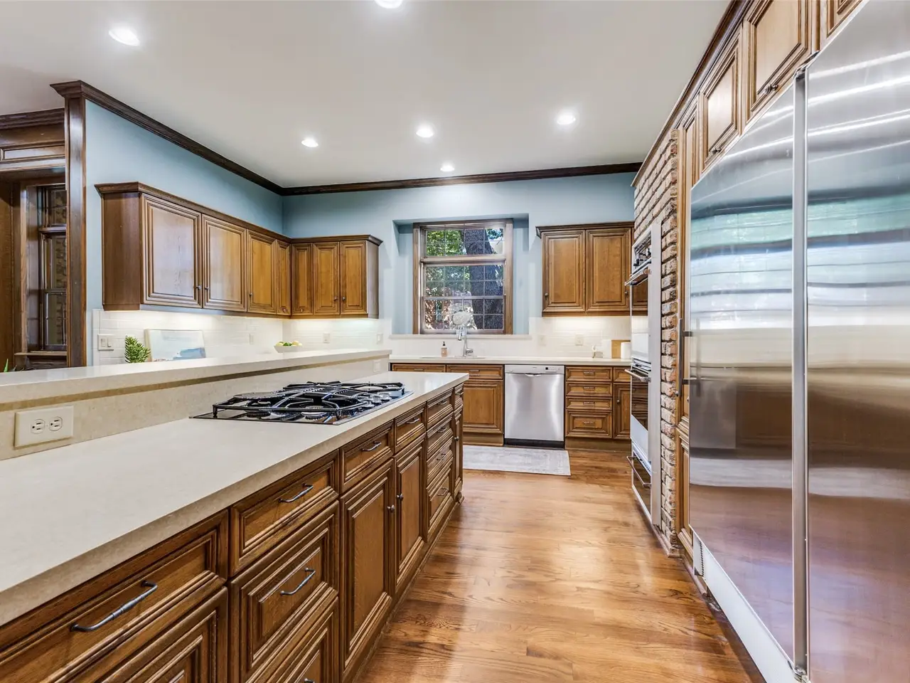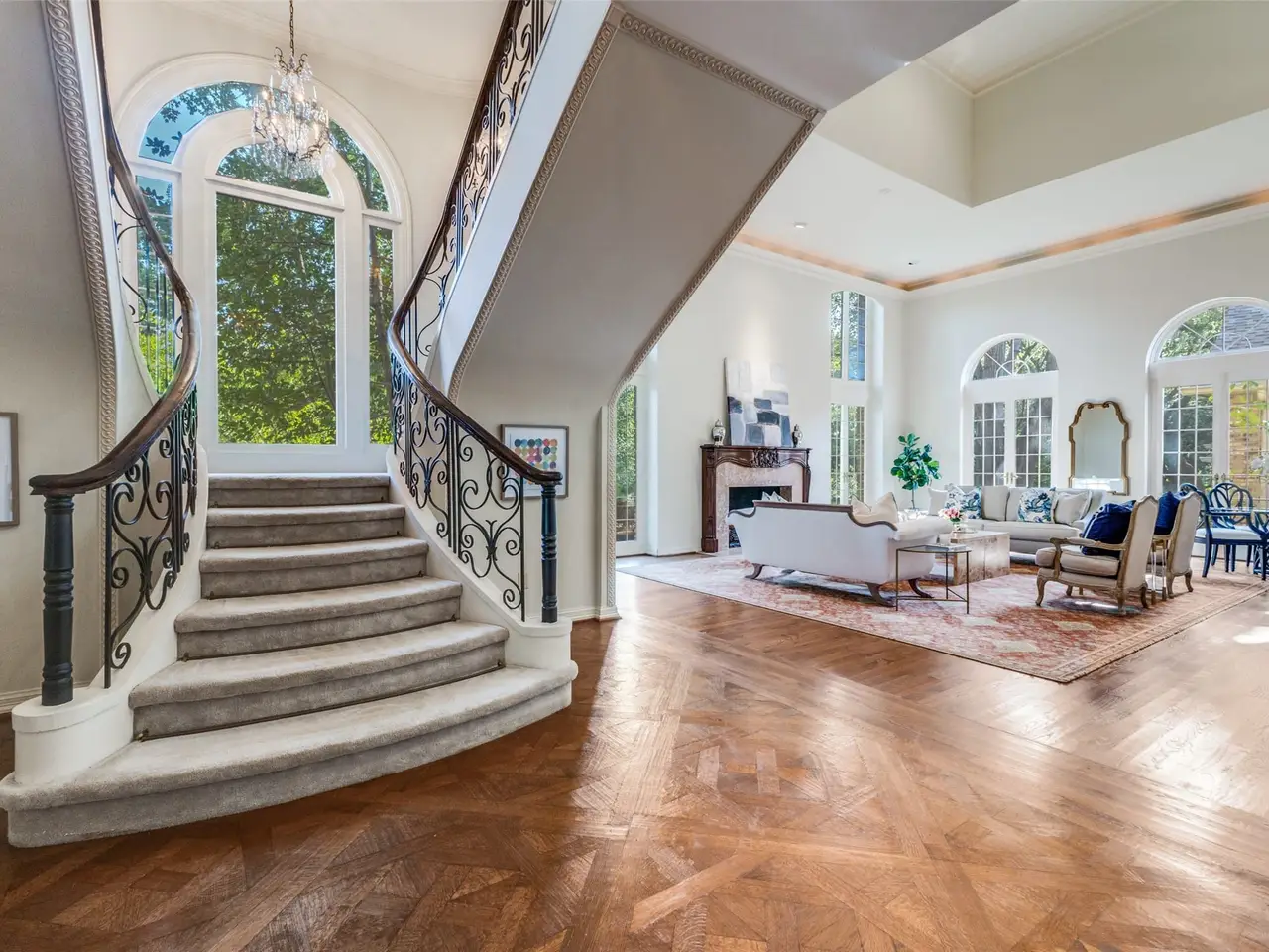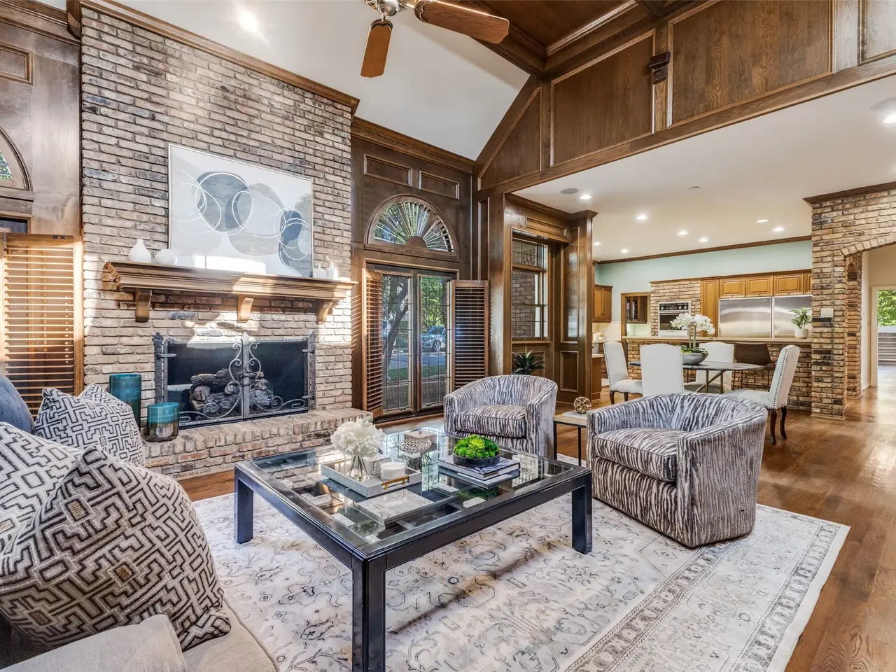 Located in the prestigious gated community of Glen Lakes, this elegant home blends timeless architecture with thoughtful updates. Tall ceilings, intricate moldings, and rich hardwood floors create a warm and inviting atmosphere designed for both entertaining and everyday living.The main living area features a gas fireplace with a marble surround, framed by floor-to-ceiling windows offering serene views of the creek and walking trail. A second living area with its own marble fireplace opens to the chef’s kitchen, showcasing a built-in gas range, double ovens, warming drawer, and Sub-Zero refrigerator, freezer.The grand primary suite is a private retreat with its own marble fireplace, direct courtyard access, dual walk-in closets, and luxurious his-and-hers bathsone with a soaking tub and the other with an oversized shower.Additional highlights include a circular drive with ample parking, pier and beam foundation, three HVAC units, and a roof and gutters and skylights replaced in June 2025. The turfed courtyard provides the perfect low-maintenance outdoor space.Glen Lakes offers 24-hour guarded security, tree-lined streets, sparkling lakes, fountains, and scenic jogging and biking trails. Perfectly located near NorthPark Center, Preston Center, SMU, and the Dallas Arts District, this community provides both tranquility and convenience.