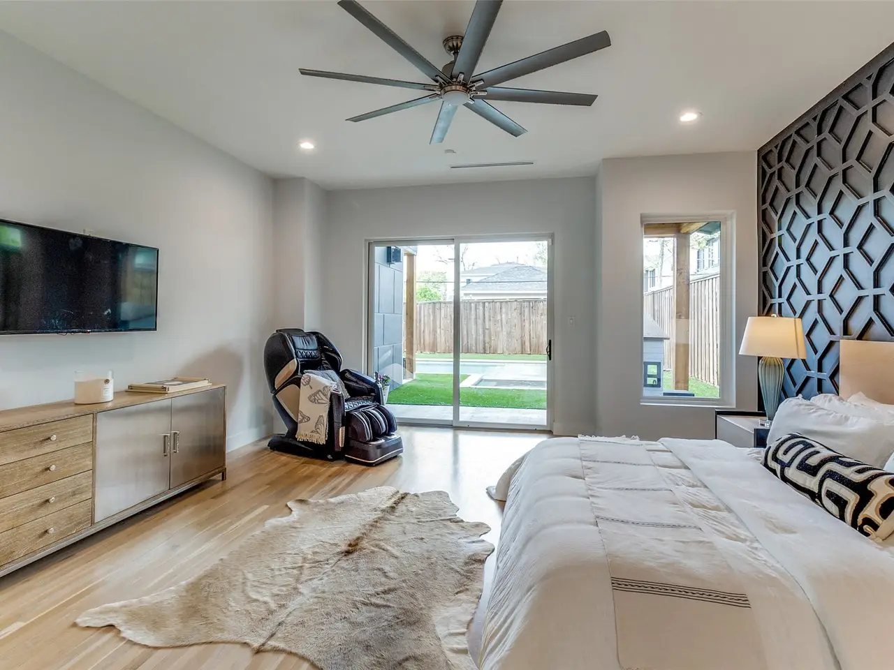 Step into this exquisite 5-bedroom, 4-bathroom home built in 2021, blending sleek modern design with thoughtful functionality in the coveted M Streets neighborhood and Award winning Mockingbird Elementary. The open-concept living room, anchored by a cozy gas fireplace, flows seamlessly to the backyard oasis through expansive sliding glass doors. Outdoors, youll find a built-in grill, fireplace, fridge, and a sparkling pool featuring an in-floor cleaning system and surrounding turf areaperfect for entertaining.The gourmet kitchen is a chefs dream, equipped with a Thor 6-burner stove with griddle, double ovens, built-in Dacor refrigerator, walk-in pantry with wall mounted microwave. The luxurious downstairs primary suite boasts a spa-inspired marble bathroom and an impressive walk-in closet. A guest bedroom or home office with a full bath is also located on the first floor for added convenience. Upstairs, a spacious game room or second living area provides additional space to relax or entertain. Other highlights include a full laundry room, mudroom with abundant storage, tankless water heaters, wine cooler and dry bar, and premium finishes throughout. This home effortlessly combines indoor comfort with outdoor elegancean M Streets gem not to be missed.
