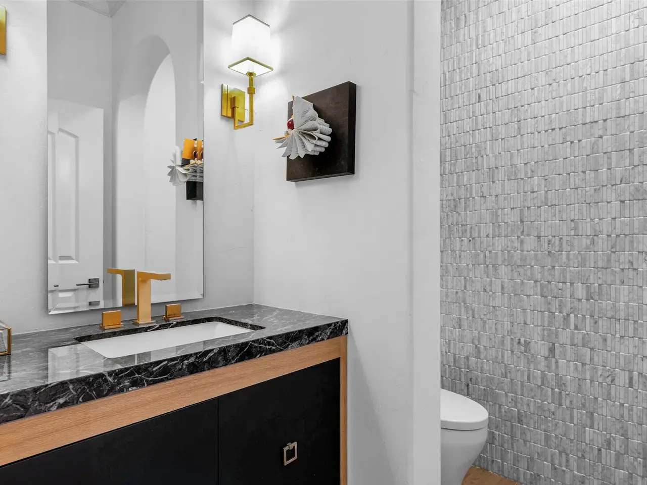 This fully reimagined modern Tudor in Preston Hollow offers a perfect blend of style, functionality, and luxury. The striking front elevation, covered in large windows, allows an abundance of natural light to pour into the home throughout the day. Upon entry, an arched opening leads to the formal dining room, which features an art wall backdrop connecting to a wet bar and butlers area. The chefs kitchen showcases a neutral palette with quartz countertops and a herringbone-patterned backsplash, blending beautifully with the open-concept design that flows into the downstairs living area. A private study with its own front porch access provides a quiet retreat, while the spacious master bedroom offers private access to the backyard. The terrazzo-wrapped ensuite primary bathroom features floating dual vanities and a soaking tub, creating a spa-like atmosphere. Upstairs, the home continues to impress with four generously sized secondary bedrooms, an oversized game room, and a media room, making it ideal for family living and entertainment. Additional highlights include a porte-cochre leading to a 3-car attached garage, along with a mudroom and utility room conveniently located off the garage. This thoughtfully designed home combines timeless architecture with modern amenities, providing the perfect setting for both everyday living and elegant entertaining.