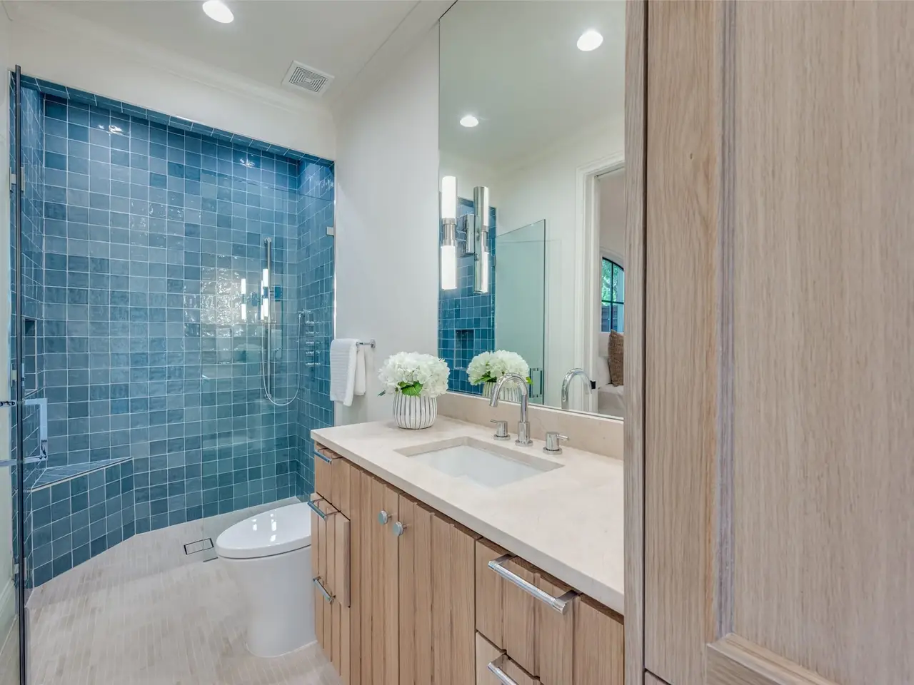 Stunning 6-bed, 5.1-bath transitional set on a prime lot with 5,696 SF of luxury living. Features include a first-floor primary suite and guest room, open-concept chefs kitchen, and spacious game and media rooms upstairs. Each bedroom offers an en-suite bath. Exceptional outdoor living with a covered verandah, pool, built-in grill, trampoline, and custom fortperfect for entertaining and family fun. Three-car garage and direct access to the Northaven Trail for biking and walks. A rare blend of elegance and lifestyle.