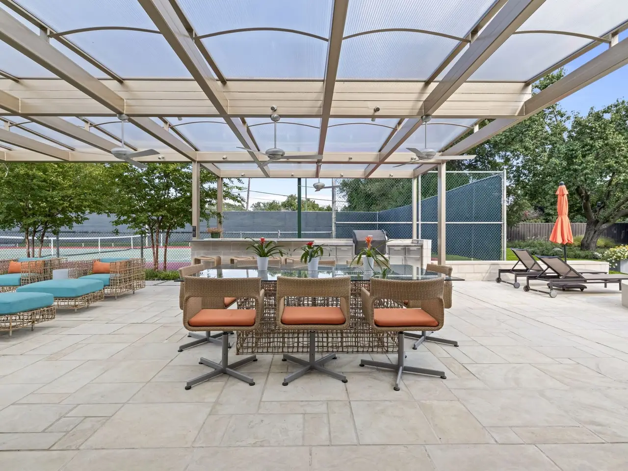 Live a life of luxury and leisure in this modern masterpiece, set on nearly an acre of manicured grounds. This isnt just a home; its your own private resort, designed for both vibrant entertaining and serene relaxation. The outdoors is where the magic happens. Imagine a beautiful afternoon spent playing on your very own full-size private tennis courtcomplete with lighting for evening matcheswhich also features a dedicated pickleball court. The expansive yard offers a large green space surrounded by mature trees, perfect for quiet afternoons or a game of frisbee. When its time to unwind, gather around the firepit under the stars or take a refreshing dip in the sparkling pool. An expansive covered patio hosts a full outdoor kitchen, making it effortless to host unforgettable barbecues and poolside parties. A grand circular drive provides an elegant welcome for you and your guests. Inside, the home is a celebration of light and space. Walls of windows and sliding glass doors blur the line between the indoors and your private outdoor sanctuary. The formal dining room is perfect for hosting elegant dinner parties, featuring heated built-ins for serving, while the polished marble flooring adds a touch of timeless sophistication. The gourmet kitchen is the heart of the home, equipped with a Sub-Zero refrigerator, a 6-burner gas cooktop, double dishwashers, double ovens, and a warming drawer. With polished granite on the floors and countertops, Seimatic cabinetry, and artistic lighting, this space is both beautiful and functional. This home offers ultimate comfort for everyone. The primary suite is a true spa-like retreat with dual sinks, a luxurious walk-in shower with dual heads and body sprays, and two separate toilets. The secondary bedrooms have ensuite baths and walk-in closets, ensuring every guest or family member enjoys their own private sanctuary. Close to top-tier private schools and high-end retail and dining, with easy access to the Dallas North Tollway.