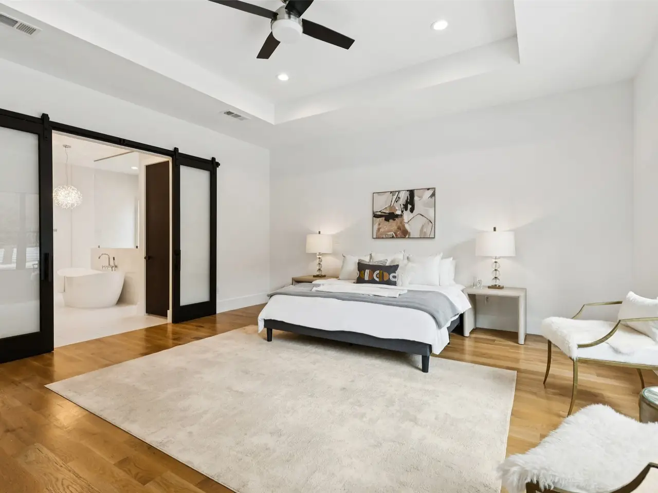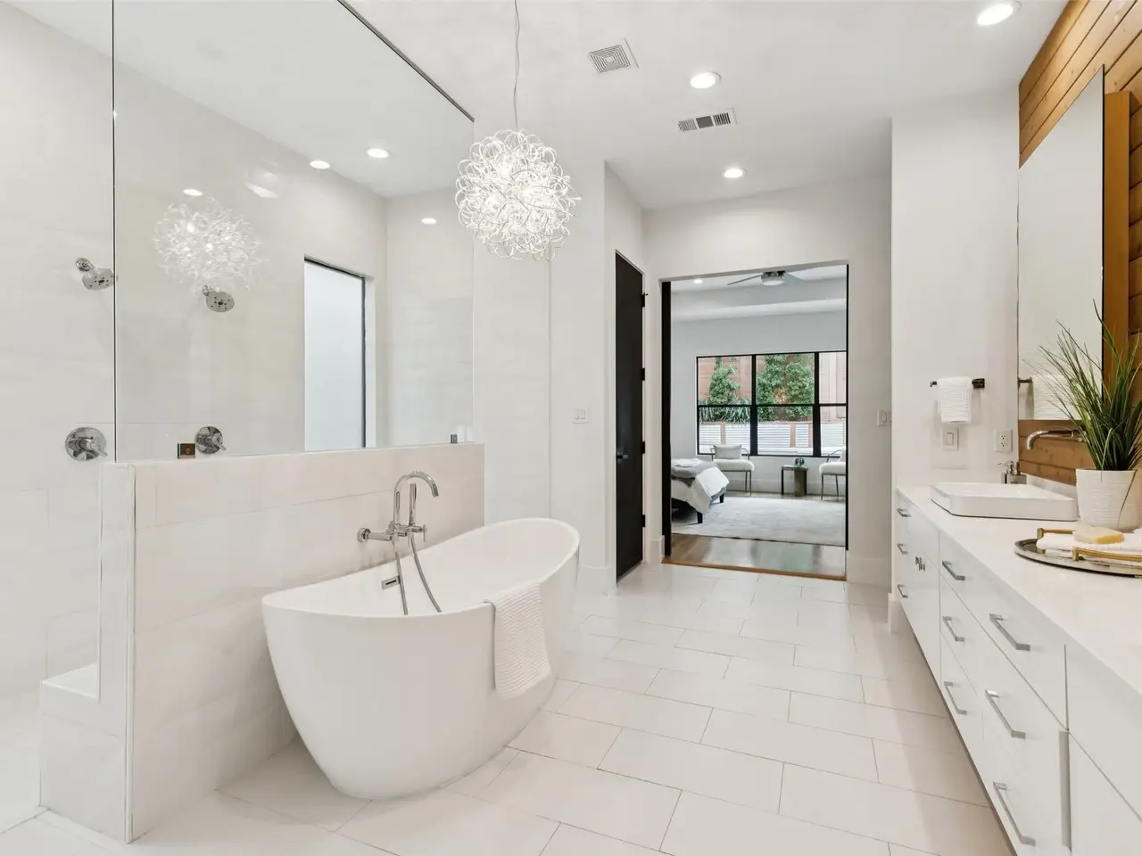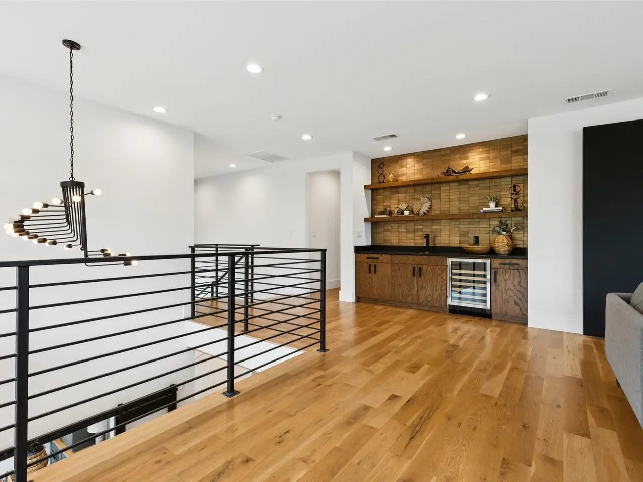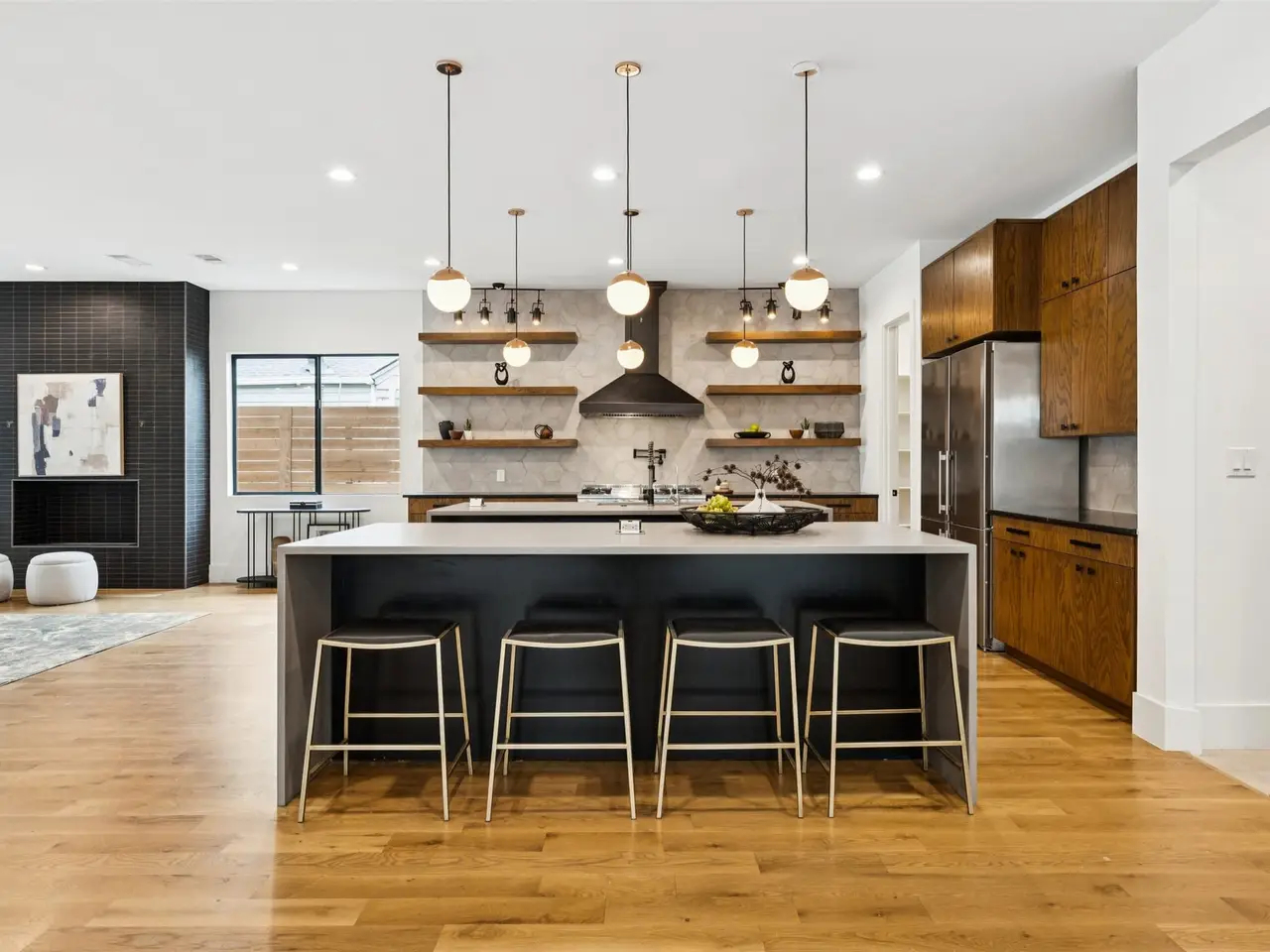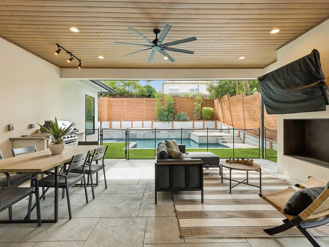 Perched on a hill in the heart of Lakewood Elementary, this newer modern home blends sophisticated design with functional living. A formal entry welcomes you into a private office with built-ins, ideal for remote work or study. The elegant dining room features an enclosed bar with a striking wine displayperfect for entertaining. The open-concept kitchen, living, and dining areas create a seamless flow, highlighted by two oversized islands, abundant cabinetry, a spacious pantry, and premium appliances including a 6-burner gas cooktop with griddle, built-in microwave, and dishwasher. The living room centers around a sleek gas fireplace and expansive sliding glass doors that open to a covered outdoor living area. The downstairs primary suite is a true retreat with a spa-like ensuite offering dual sinks, a soaking tub, a frameless double shower, and a walk-in closet with island, built-ins, and a private laundry room. Upstairs, a generous second living area with wet bar opens to a balcony and connects to a dedicated media roomideal for movie nights or game days. Four spacious bedrooms and three bathrooms, along with an additional laundry room, complete the upper level. Outside, enjoy year-round entertaining with a built-in grilling station, gas fireplace, turfed dog run, and resort-style pool and spa. Designed for comfort, luxury, and convenience, this Lakewood stunner offers the best of modern living in one of Dallas most sought-after neighborhoods.