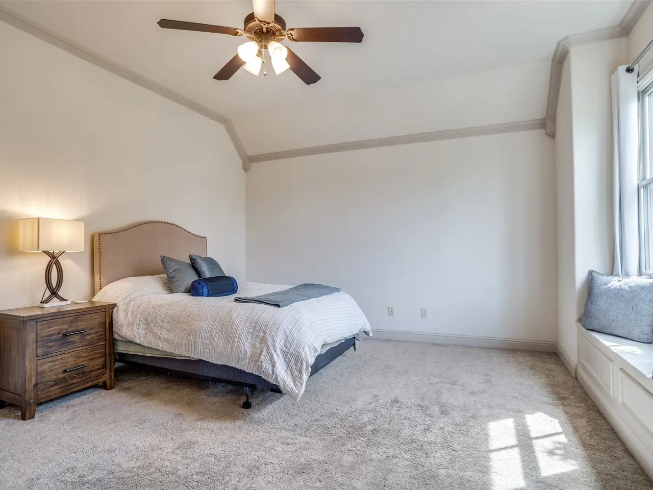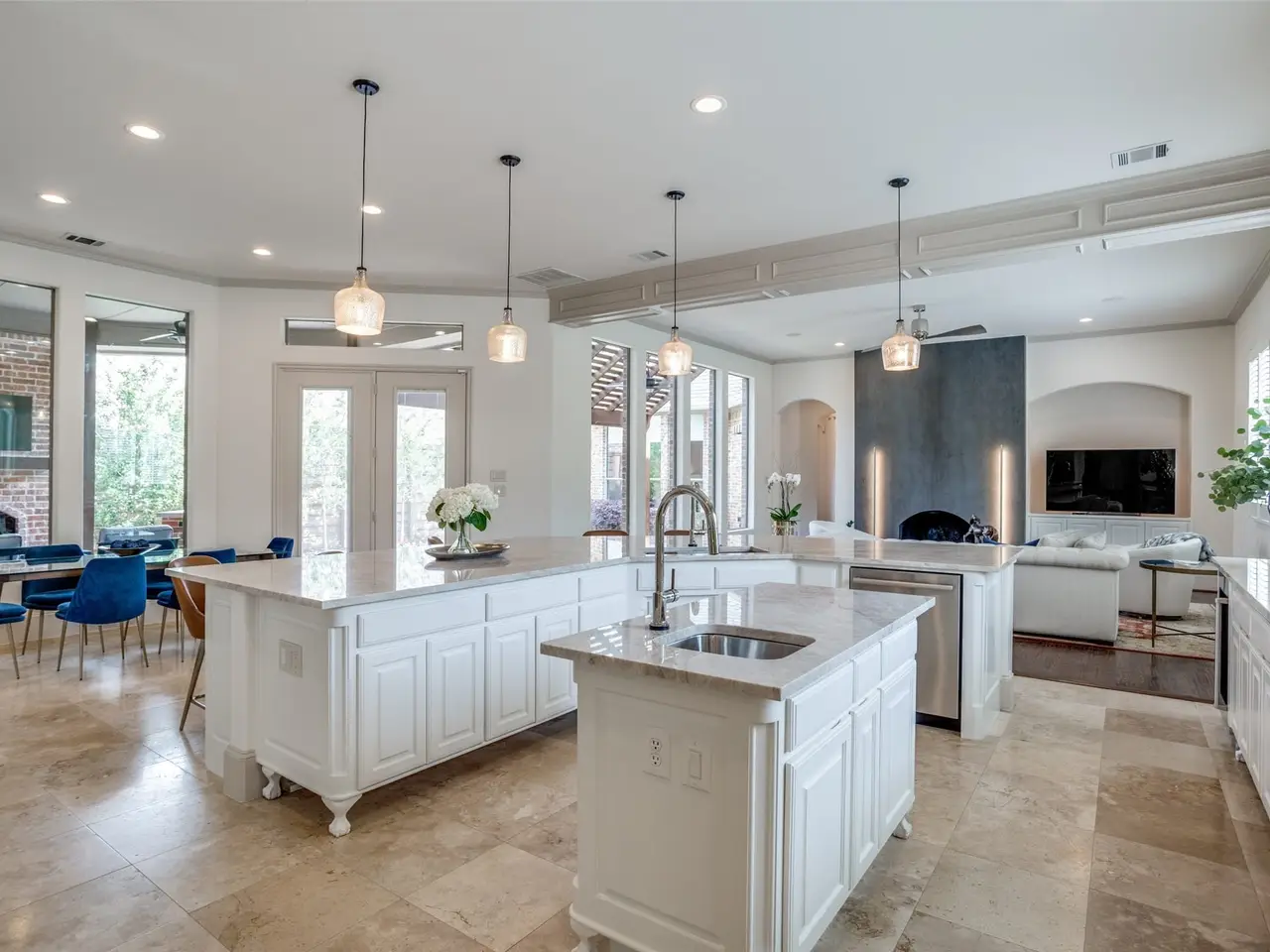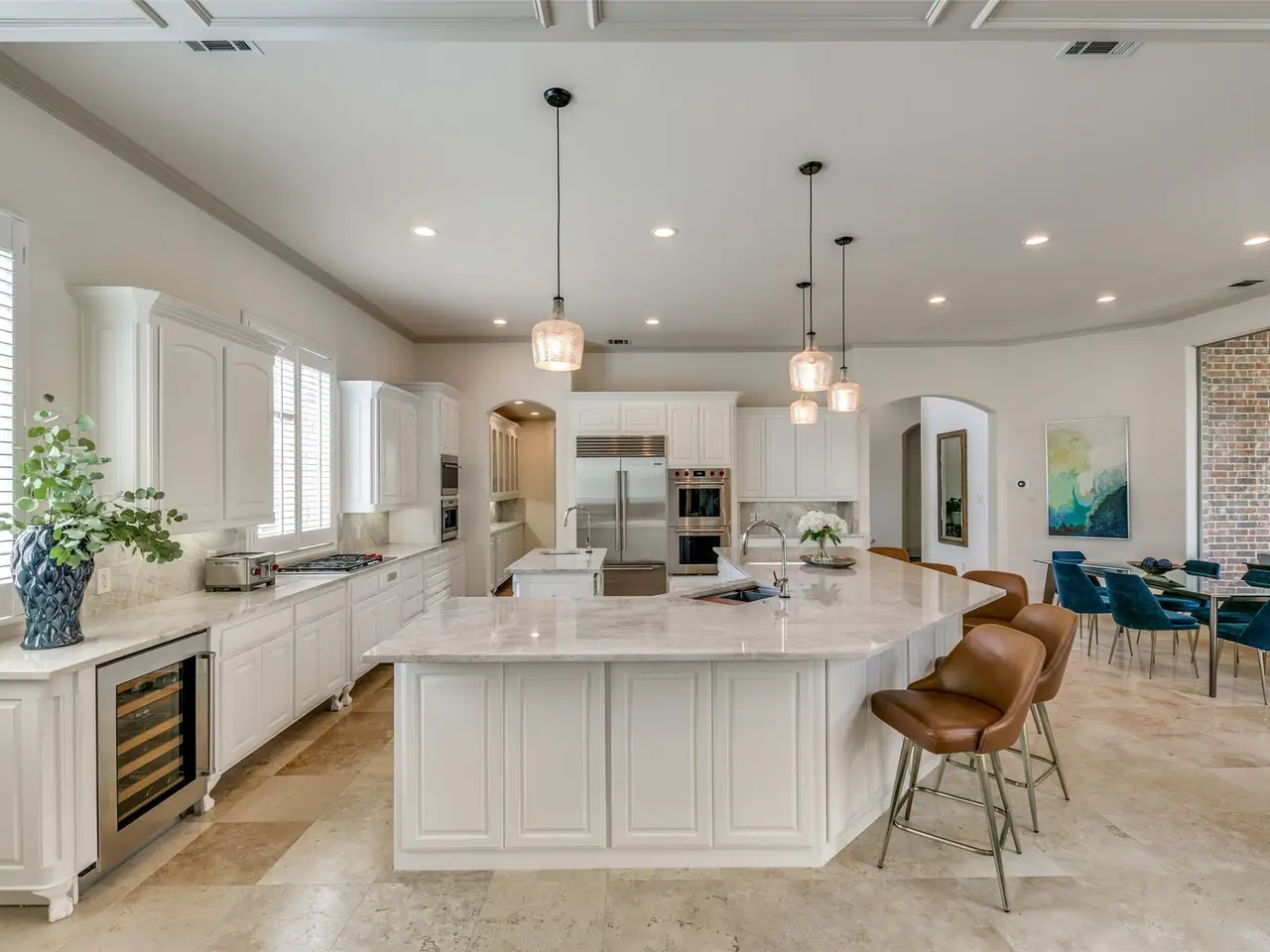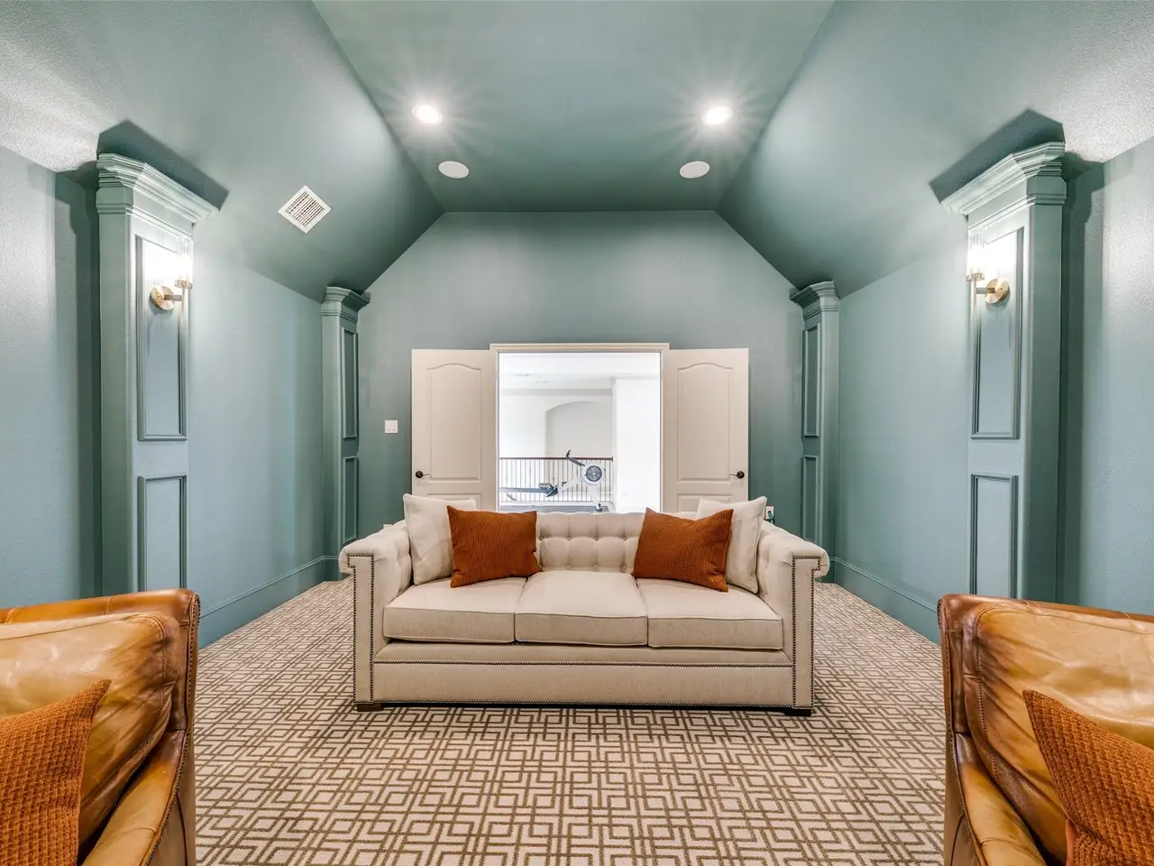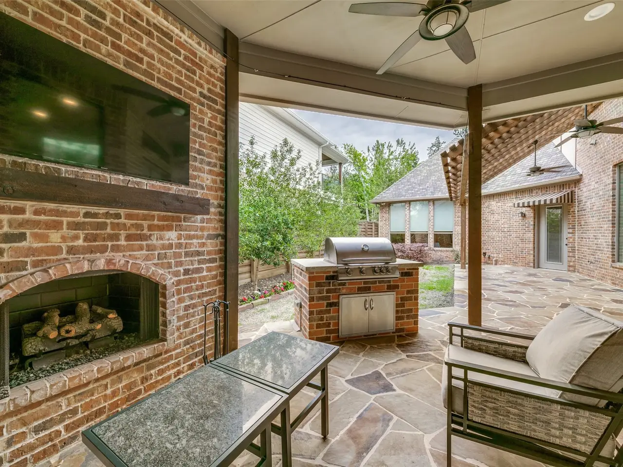 Nestled on a quiet, stately corner lot the exceptional craftsmanship and thoughtful floor plan make this home a standout. The light-filled great room showcases a floor-to-ceiling gas fireplace and spacious secondary dining area, flowing seamlessly into the chefs dream kitchen, updated with Sub-Zero and Wolf M Series appliances, built-in coffee system, wine bar, expansive quartzite surfaces, a butlers pantry, and extensive custom cabinetry. The first-floor primary suite is a private retreat with cathedral ceilings, a spa-like bath featuring a double shower, freestanding soaking tub, and striking book-matched marble. A secondary bedroom with its own bath and cedar closet is also located on the first floor; making it ideal for guests or multigenerational living. Upstairs offers two generously sized bedrooms, each with ensuite baths, a spacious game room with wet bar, a dedicated media room, and a large covered balcony; perfect for evening entertaining or quiet relaxation. A low-maintenance outdoor living area with built in grill, mosquito misting system, and a fireplace are added bonuses.