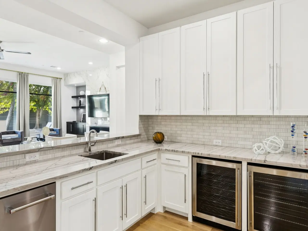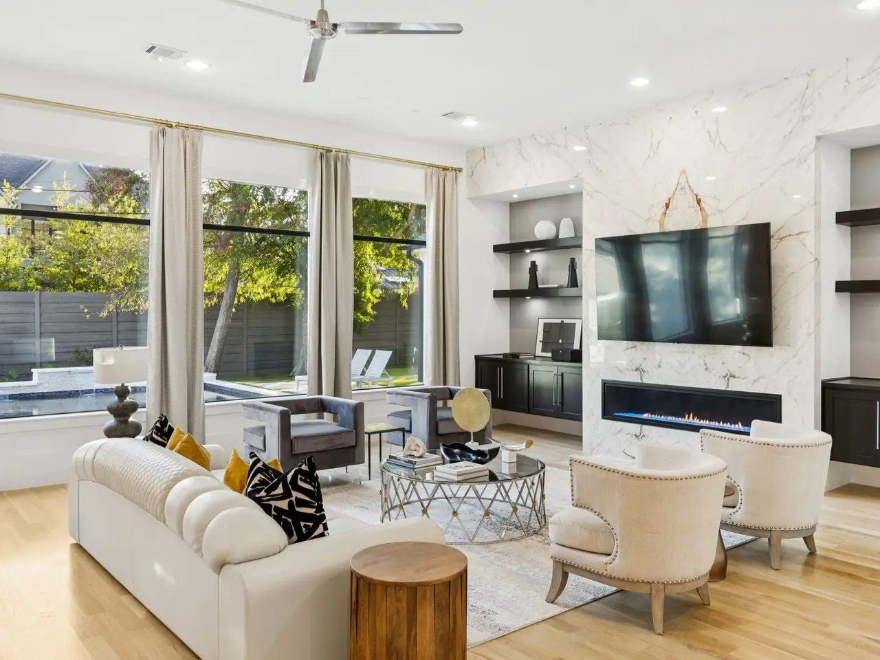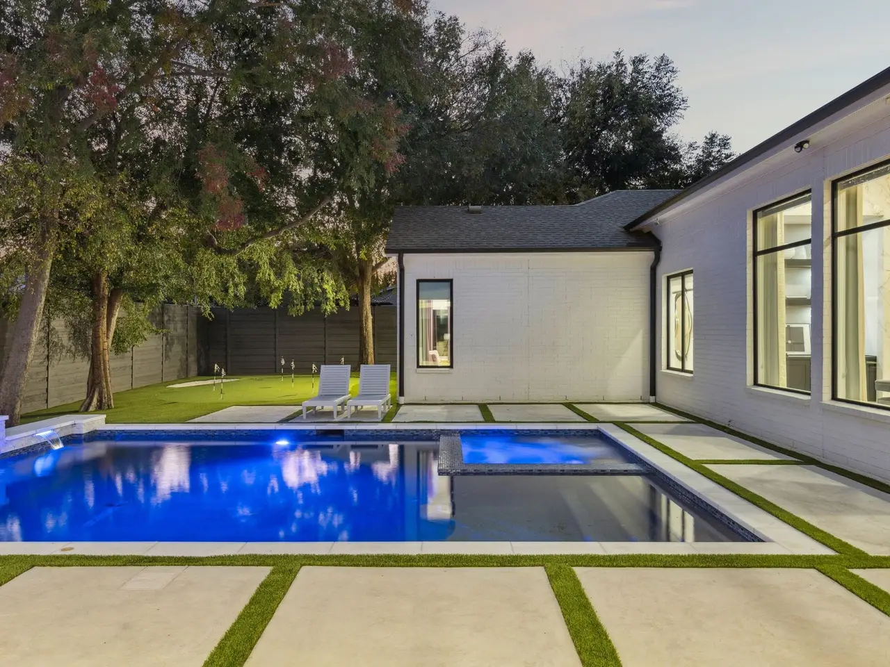 Located in the heart of the prestigious Preston Hollow neighborhood, this custom home, completed in 2021 by acclaimed builder James Canterbury, exemplifies modern design and luxurious functionality. The grand entry with a floating glass staircase introduces striking architectural detail and natural light throughout. The open-concept main level is ideal for entertaining, featuring a full wet bar, designer lighting, and a bonus media room. The chefs kitchen impresses with a Wolf double-oven range, oversized Sub-Zero refrigerator, and a stunning waterfall island perfect for gatherings and gourmet prep. Upstairs, a spacious game room and three ensuite bedrooms offer privacy, comfort, and generous built-in storage. Since completion, the owners have added numerous luxury upgrades, including an AquaSure water purifier, custom window shades and drapery, built-in cabinetry, beautifully book matched stone on the fireplace, and upgraded chandeliers. Outdoor enhancements elevate both style and functionality, full turf installation with a golf putting area, security cameras and motion lighting, illuminated address signage, added parking with concrete pads, and an EV charging port. The private backyard oasis features a sparkling pool and integrated spa, an inviting outdoor living area with fireplace and kitchen, and sleek concrete pads surrounded by lush turfperfect for both entertaining and relaxation. This exceptional residence offers effortless access to premier shopping, dining, and major highways, embodying the best of Dallas luxury living.