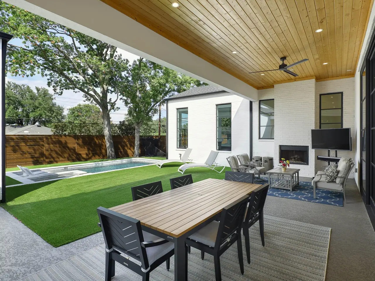 Welcome to this pristine newer construction home in the desirable Eudora Estates neighborhood, with custom details and bright, inviting spaces with a seamless floor plan and ideally located near Central Market, Northaven Gardens, and a few short blocks to the Northaven Trail. A dramatic oversized glass entry door sets the tone as you step inside, where an airy foyer and striking architectural staircase make a lasting impression. To the left, the elegant formal dining room offers a sophisticated space for gatherings, while straight ahead, the expansive great room serves as the true heart of the home. Anchored by a marble-surround gas fireplace and warm white oak flooring, the great room is flooded with natural light and opens seamlessly to the gourmet kitchen. The kitchen features dual dishwashers, a commercial-grade gas range, paneled breakfast area, and custom cabinetry. A spacious walk-in pantry and laundry room are tucked away behind the kitchen with direct access to the backyard and pool. The primary suite is a private sanctuary, offering a large bedroom retreat, spa-inspired bath with separate soaking tub and shower, and an oversized walk-in closet. A versatile second living area downstairs - complete with fireplace and wet bar - can serve as a lounge, library, or media space, while a front guest suite with private bath and walk-in closet ensures comfort for visitors. Upstairs, three additional bedroom suites and a generous game room provide ample space for family and friends. Outside, the private backyard is fully turfed for low-maintenance living and centers around a sparkling pool, covered patio, and outdoor living area perfect for year-round enjoyment. The oversized three-car garage includes two electric vehicle chargers and space for lifts, enhancing both convenience and storage. Move-in ready and beautifully appointed, this exceptional home offers contemporary luxury, a thoughtful floor plan, and every detail designed to welcome you home.