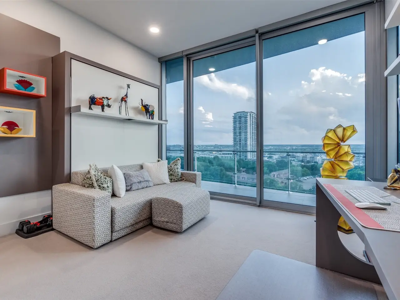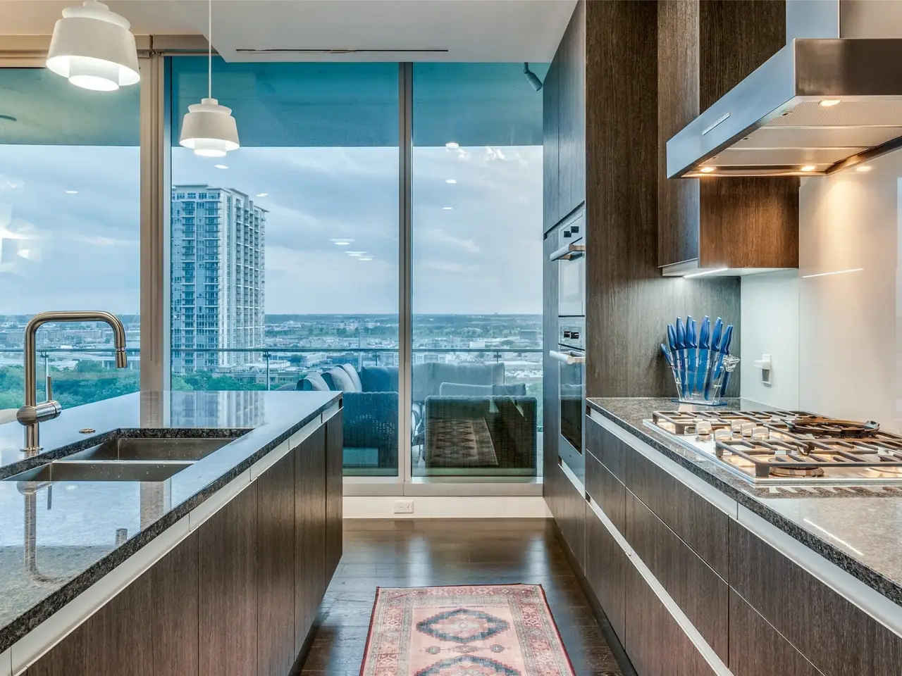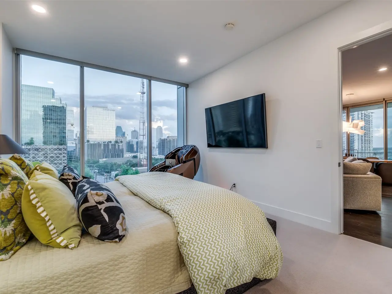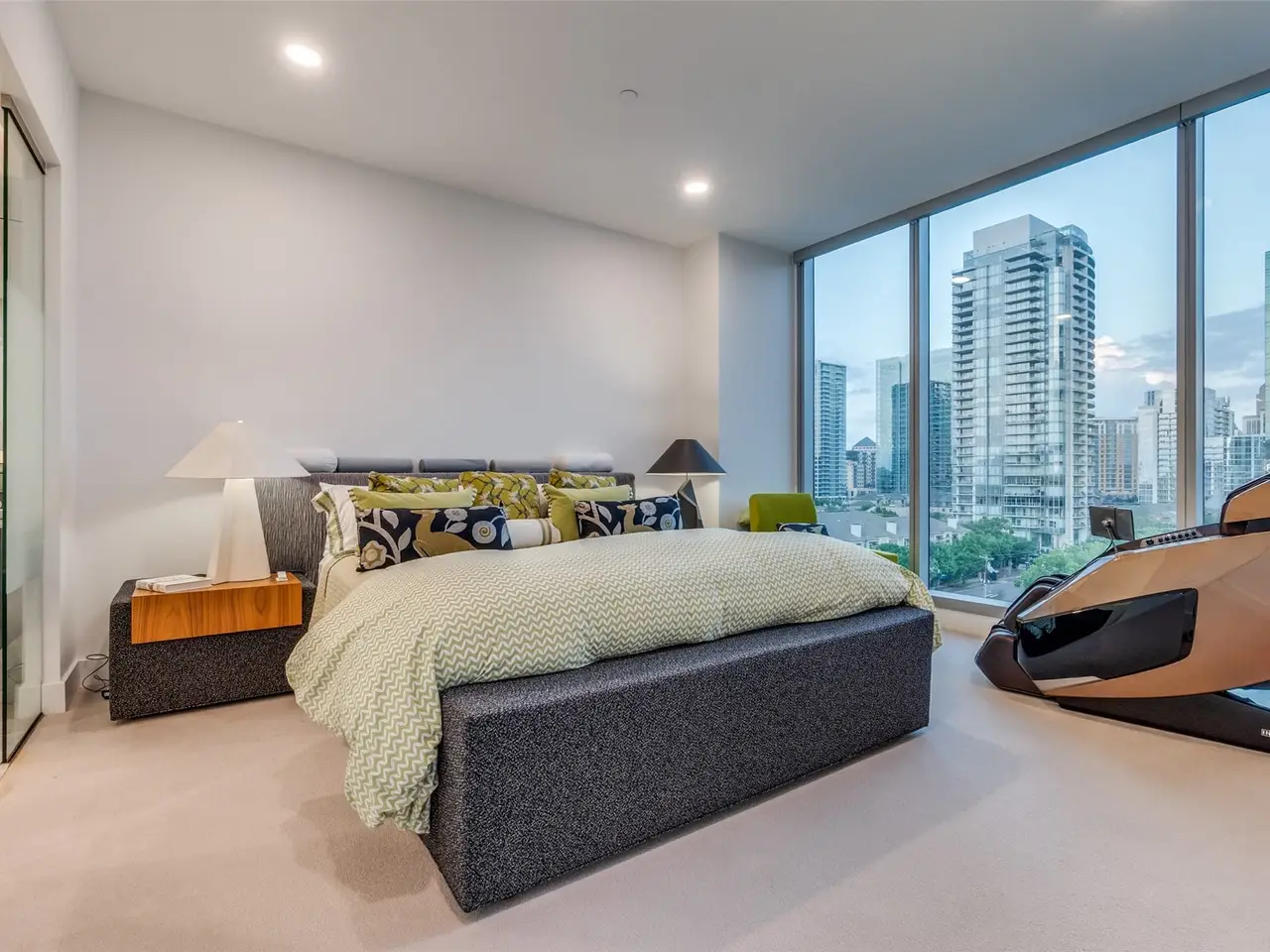 Experience elevated living in this stunning 3-bedroom, 3.1-bath residence offering 2,114 square feet of refined luxury. Residence 901 features floor-to-ceiling windows framing sweeping views of the city skyline, seamlessly blending indoor elegance with vibrant urban energy. This thoughtfully designed home boasts two spacious primary suites, each with spa-inspired ensuite baths featuring soaking tubs, dual vanities, walk-in showers, and custom closet systems by California Closets. An additional bedroom with its own ensuite bath provides comfort and privacy for guests. The open-concept living area is flooded with natural light, accentuating sleek contemporary finishes and high-end details throughout. The gourmet kitchen is a chefs dream with premium Miele appliances, custom cabinetry, and an oversized island ideal for both everyday dining and entertaining. Step outside to a wraparound terrace with a fireplace perfect for relaxing evenings or stylish gatherings with the city as your backdrop. Additional highlights include a private 2-car garage and access to Bleu Ciels world-class amenities: 24-hour concierge, valet service, a state-of-the-art fitness center, resort-style pool and spa with sauna, wine room, and a private yoga studio.