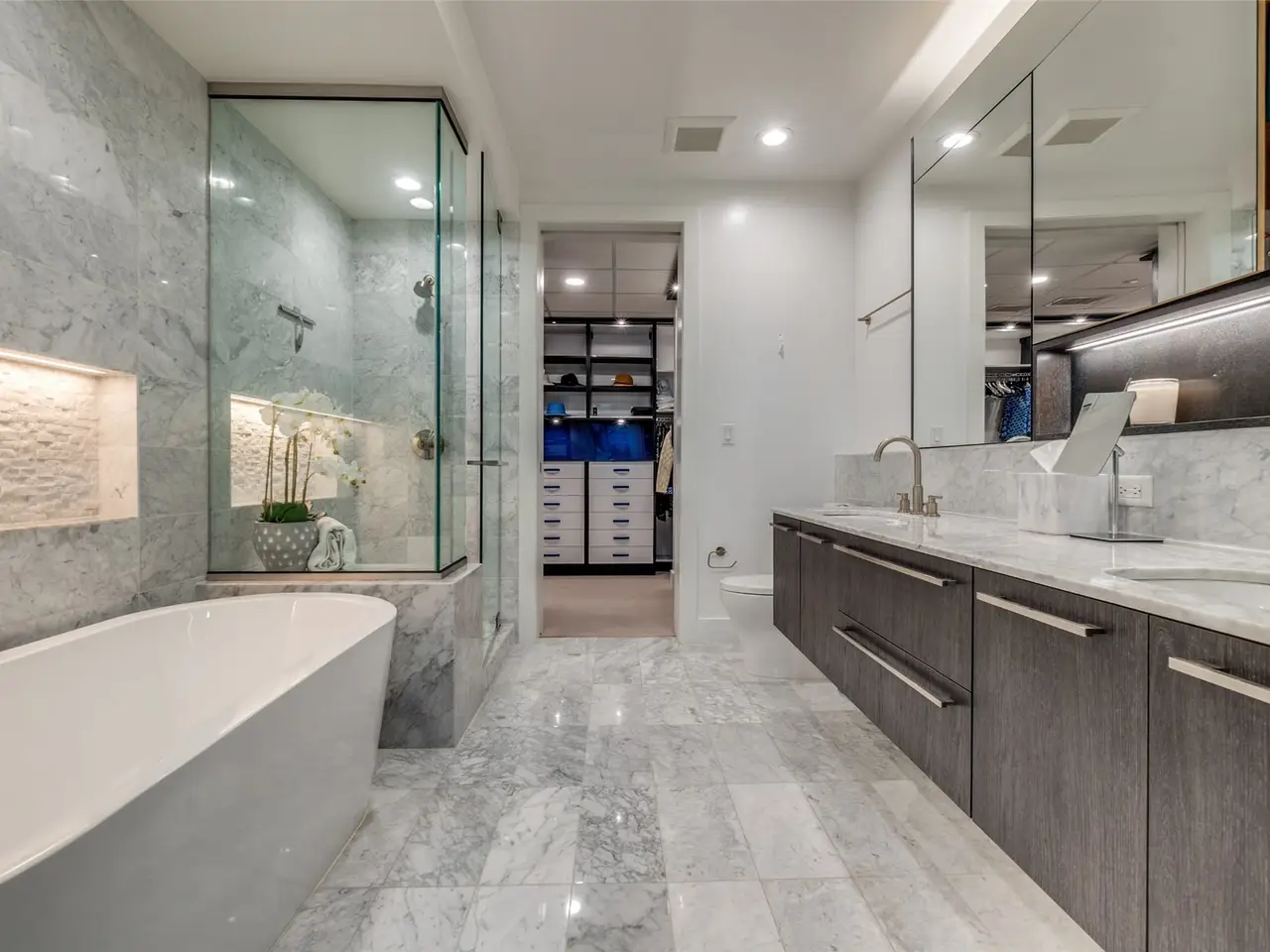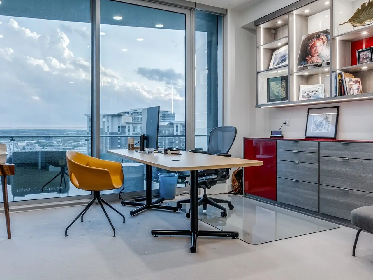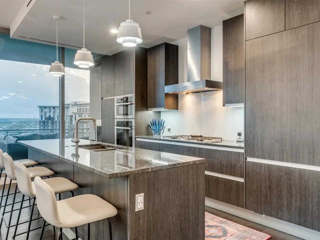 Experience elevated living in this stunning 3-bedroom, 3.1-bath residence offering 2,114 square feet of refined luxury. Residence 901 features floor-to-ceiling windows framing sweeping views of the city skyline, seamlessly blending indoor elegance with vibrant urban energy. This thoughtfully designed home boasts two spacious primary suites, each with spa-inspired ensuite baths featuring soaking tubs, dual vanities, walk-in showers, and custom closet systems by California Closets. An additional bedroom with its own ensuite bath provides comfort and privacy for guests. The open-concept living area is flooded with natural light, accentuating sleek contemporary finishes and high-end details throughout. The gourmet kitchen is a chefs dream with premium Miele appliances, custom cabinetry, and an oversized island ideal for both everyday dining and entertaining. Step outside to a wraparound terrace with a fireplace perfect for relaxing evenings or stylish gatherings with the city as your backdrop. Additional highlights include a private 2-car garage and access to Bleu Ciels world-class amenities: 24-hour concierge, valet service, a state-of-the-art fitness center, resort-style pool and spa with sauna, wine room, and a private yoga studio.