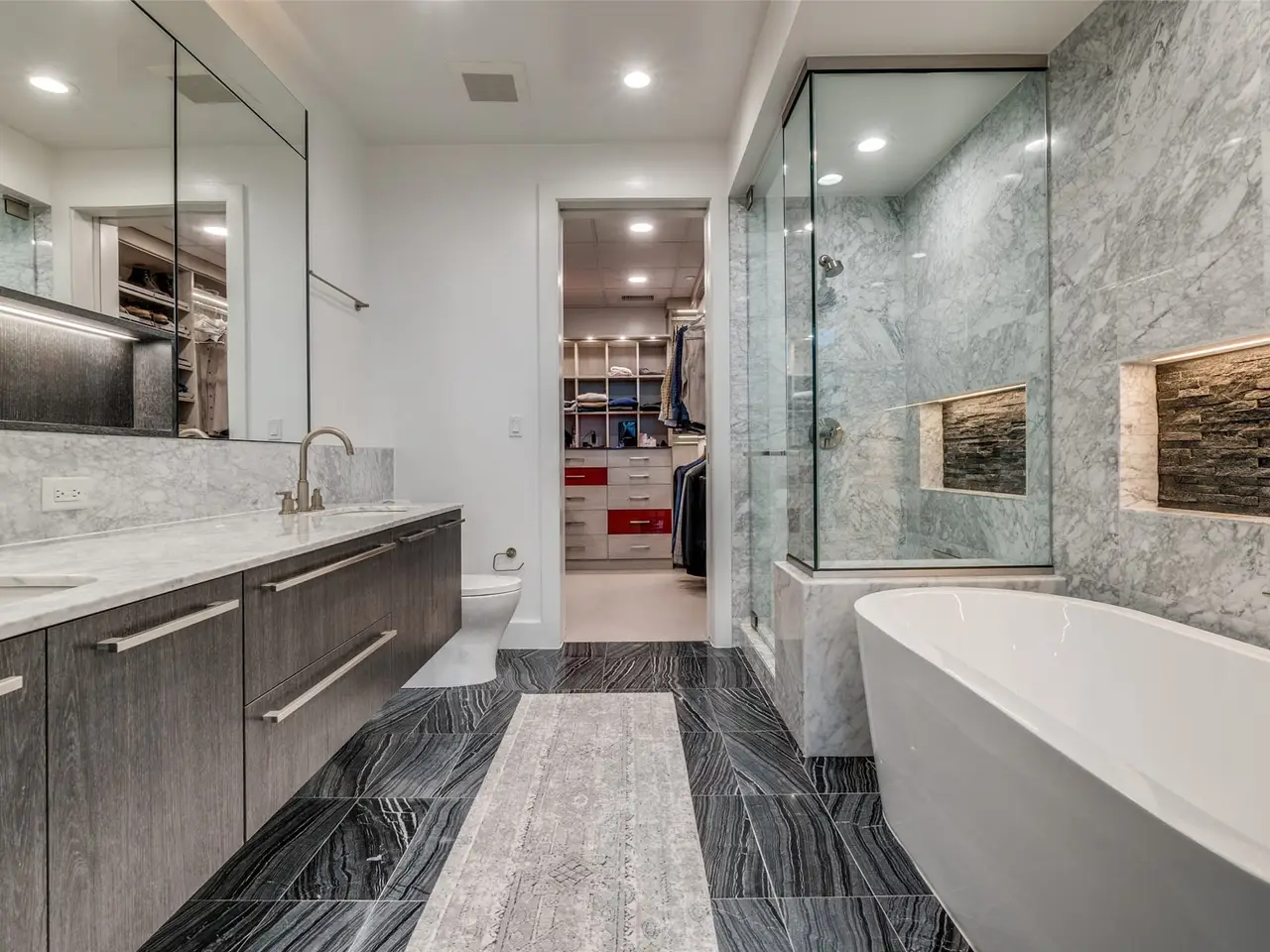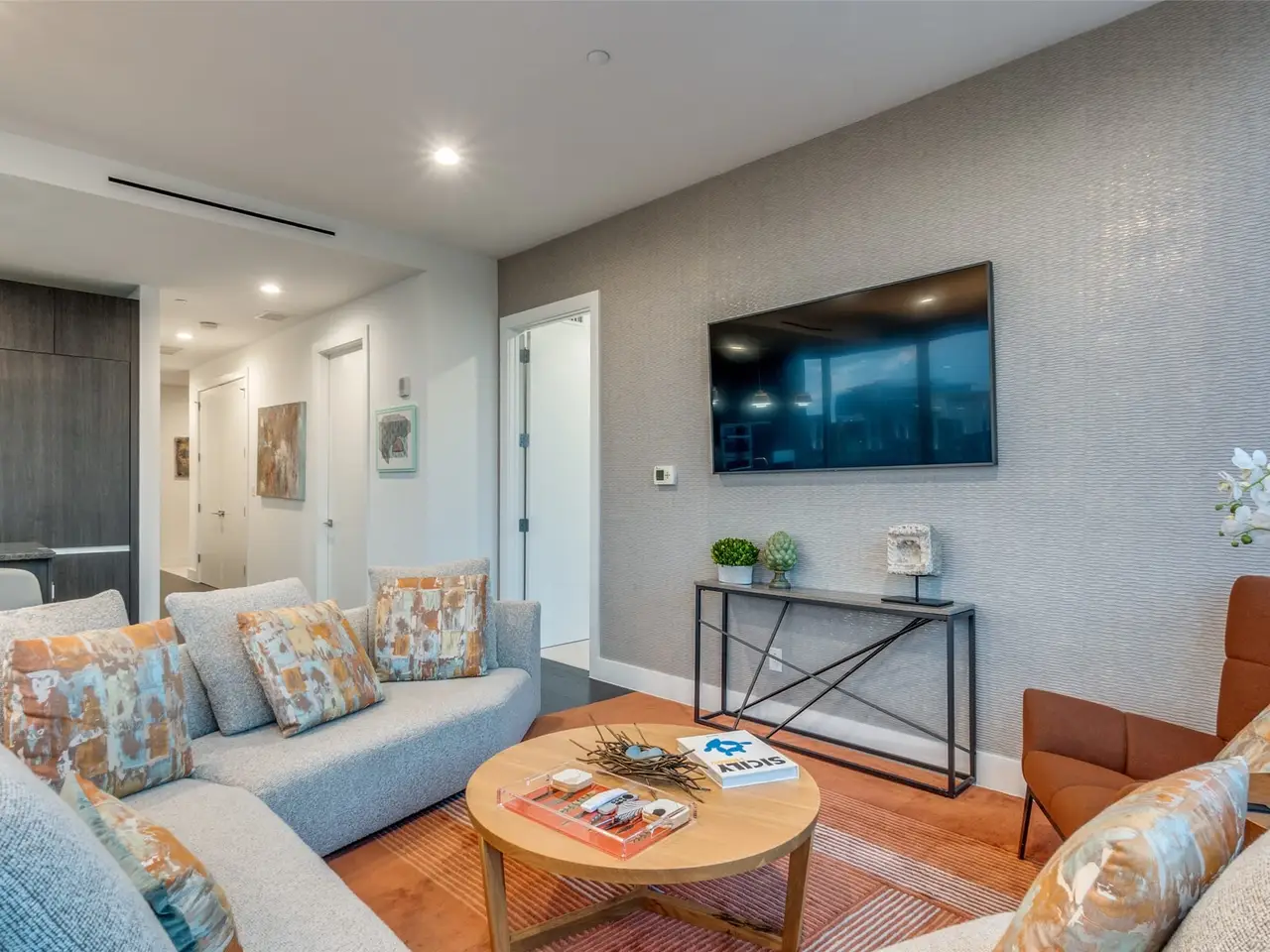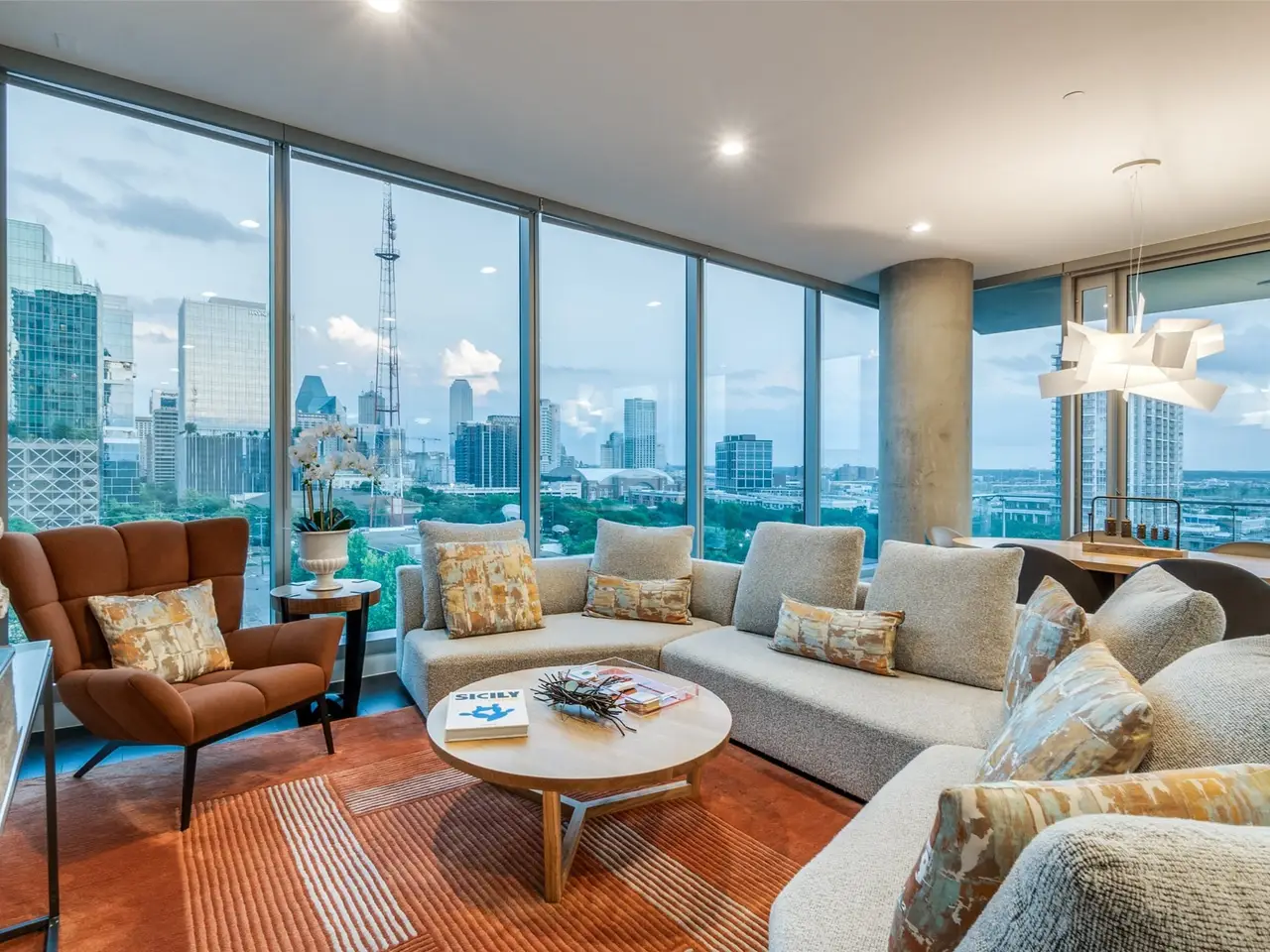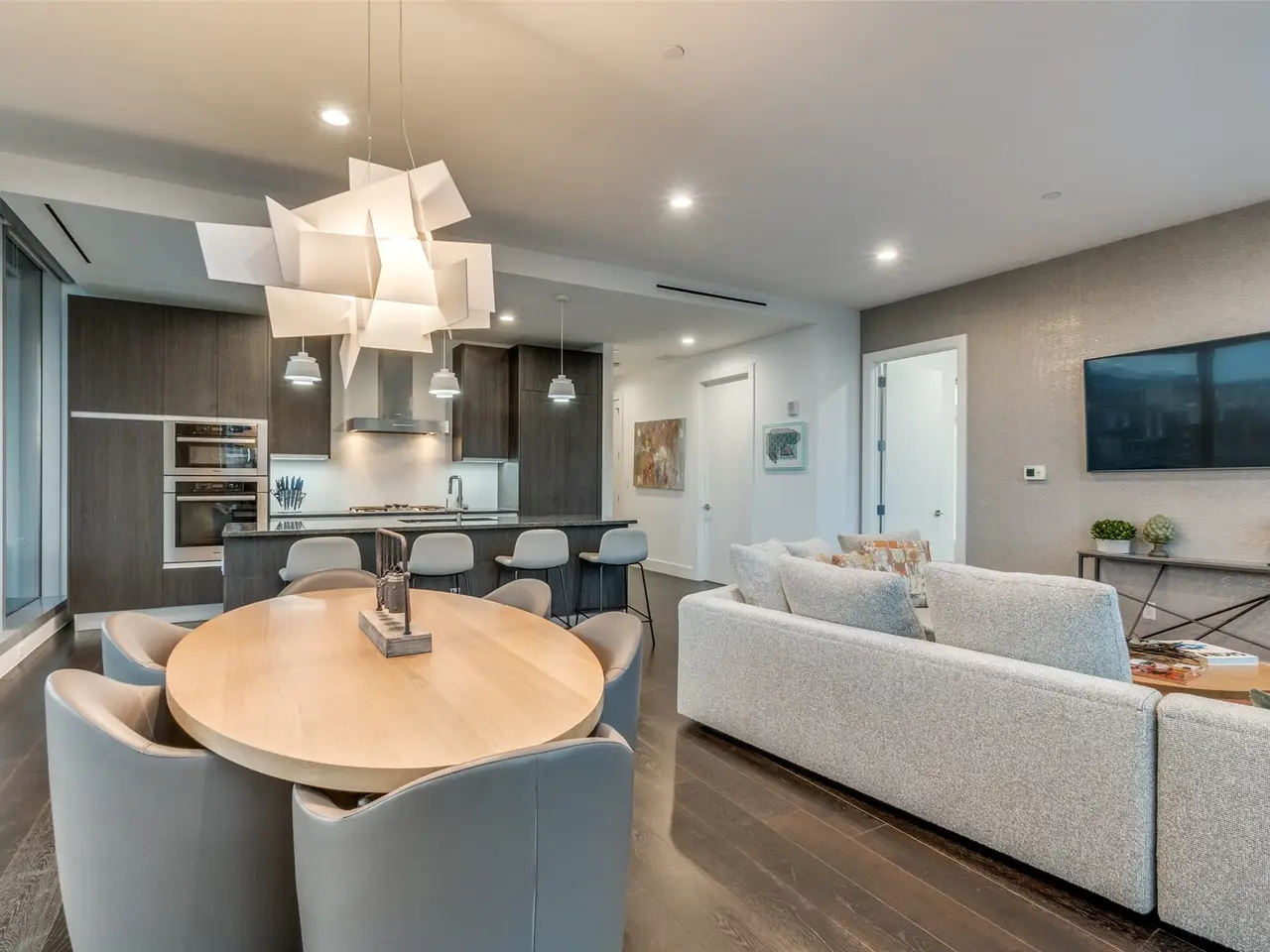 Experience elevated living in this stunning 3-bedroom, 3.1-bath residence offering 2,114 square feet of refined luxury. Residence 901 features floor-to-ceiling windows framing sweeping views of the city skyline, seamlessly blending indoor elegance with vibrant urban energy. This thoughtfully designed home boasts two spacious primary suites, each with spa-inspired ensuite baths featuring soaking tubs, dual vanities, walk-in showers, and custom closet systems by California Closets. An additional bedroom with its own ensuite bath provides comfort and privacy for guests. The open-concept living area is flooded with natural light, accentuating sleek contemporary finishes and high-end details throughout. The gourmet kitchen is a chefs dream with premium Miele appliances, custom cabinetry, and an oversized island ideal for both everyday dining and entertaining. Step outside to a wraparound terrace with a fireplace perfect for relaxing evenings or stylish gatherings with the city as your backdrop. Additional highlights include a private 2-car garage and access to Bleu Ciels world-class amenities: 24-hour concierge, valet service, a state-of-the-art fitness center, resort-style pool and spa with sauna, wine room, and a private yoga studio.