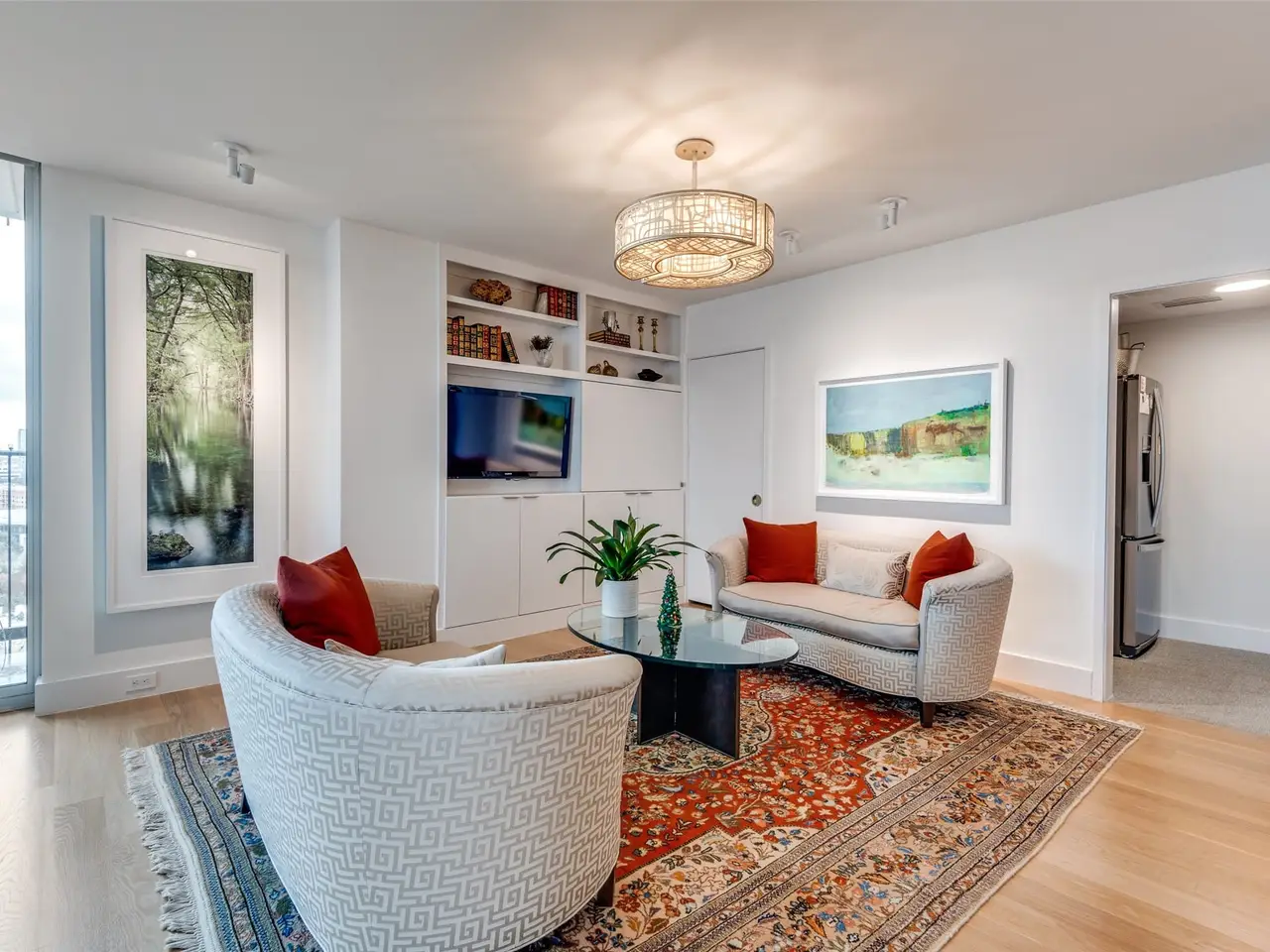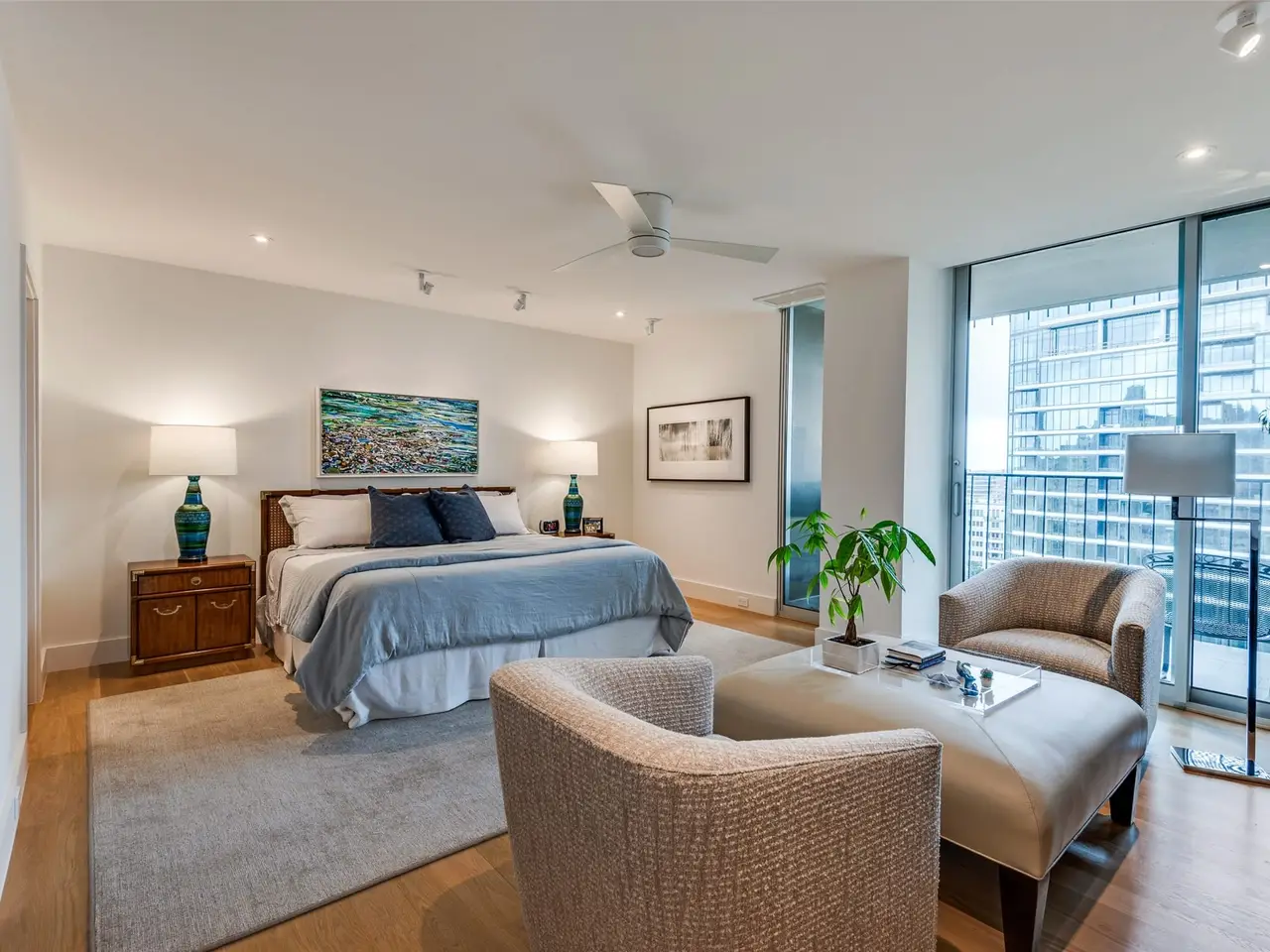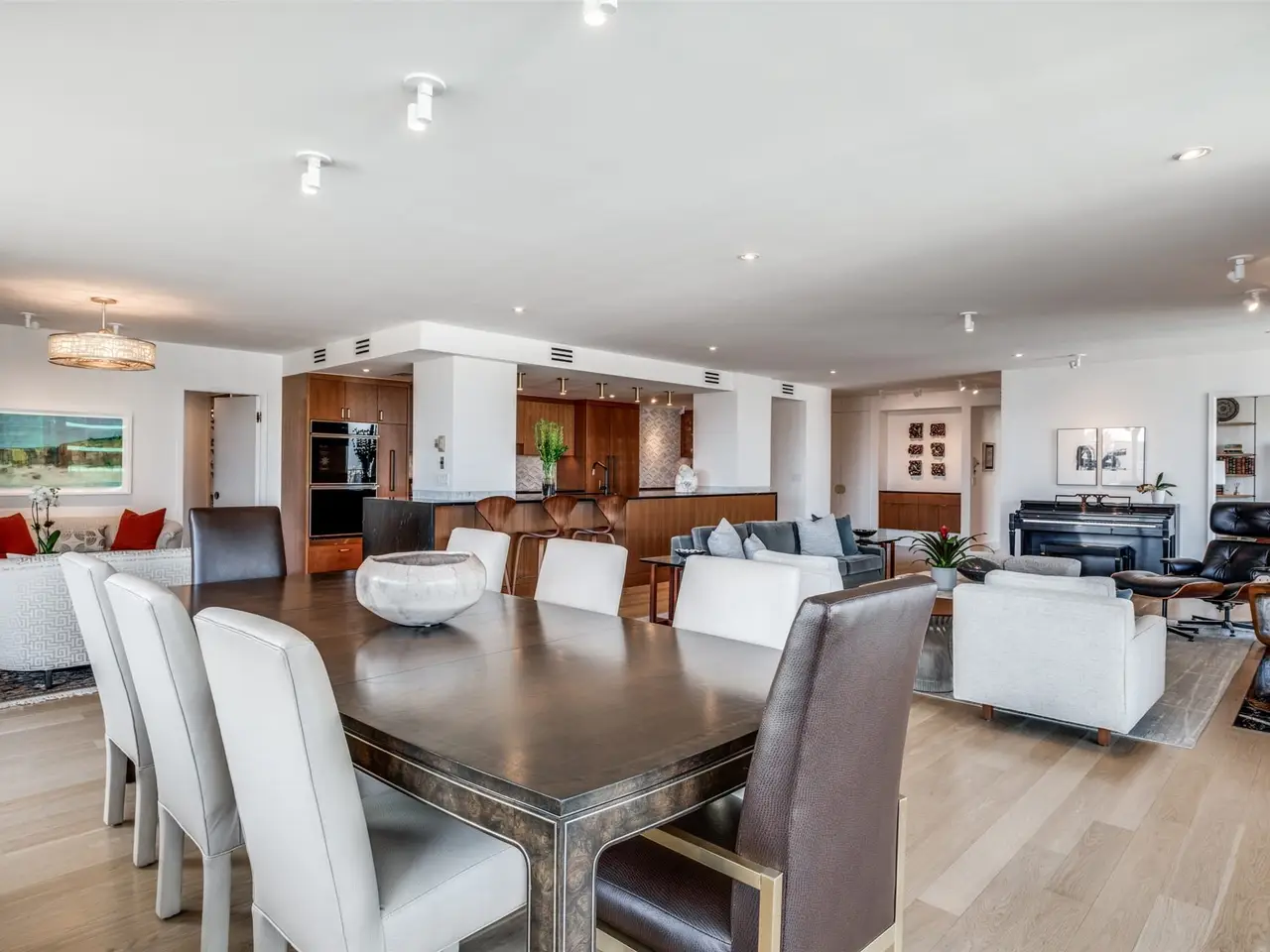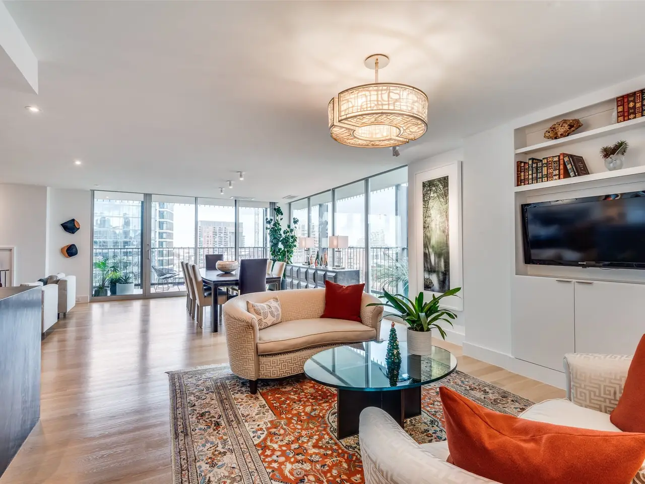 Discover the pinnacle of high-rise living with this reimagined corner penthouse in Park Towers, showcasing a complete renovation of timeless elegance and modern sophistication. Every detail of this expansive residence has been thoughtfully designed to blend luxury, comfort, and effortless style. The heart of the home is an impressive kitchen, where custom cabinetry, soapstone counters, and premium appliances create a refined culinary experience. Open to multiple living and dining areas, the layout invites seamless entertaining while maintaining intimate spaces for daily living. Walls of glass frame breathtaking panoramic views, while a sleek fireplace anchors the main living area with warmth and ambiance. The primary suite is a true retreat, featuring a spa-inspired bath, extraordinary closet space, and a private balcony for moments of quiet reflection. The guest suite offers generous proportions and an integrated office-study, while a versatile third bedroom doubles as an additional living area with pocket doors and a custom Murphy bed, perfect for flexibility and hosting. Expansive outdoor balconies provide the ultimate extension of the living space, with abundant room for dining, entertaining, or cultivating a private garden against the backdrop of the city skyline. Recent upgrades include new windows, sliding doors, plumbing, electrical, HVAC systems, and striking white oak hardwoods throughout. Intelligent storage solutions, such as a butler’s pantry, dedicated entertaining closet, and spacious utility room, enhance the functionality of the home without compromising style. Park Towers itself offers residents an unparalleled lifestyle with first-class service and security, community lounges, fitness center, pool, and direct access to the Katy Trail. With all utilities included in the HOA, this penthouse represents a rare opportunity to own a residence where design, convenience, and luxury converge in perfect harmony. Designed by Mitchell Garman Architects.
