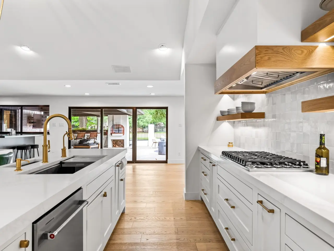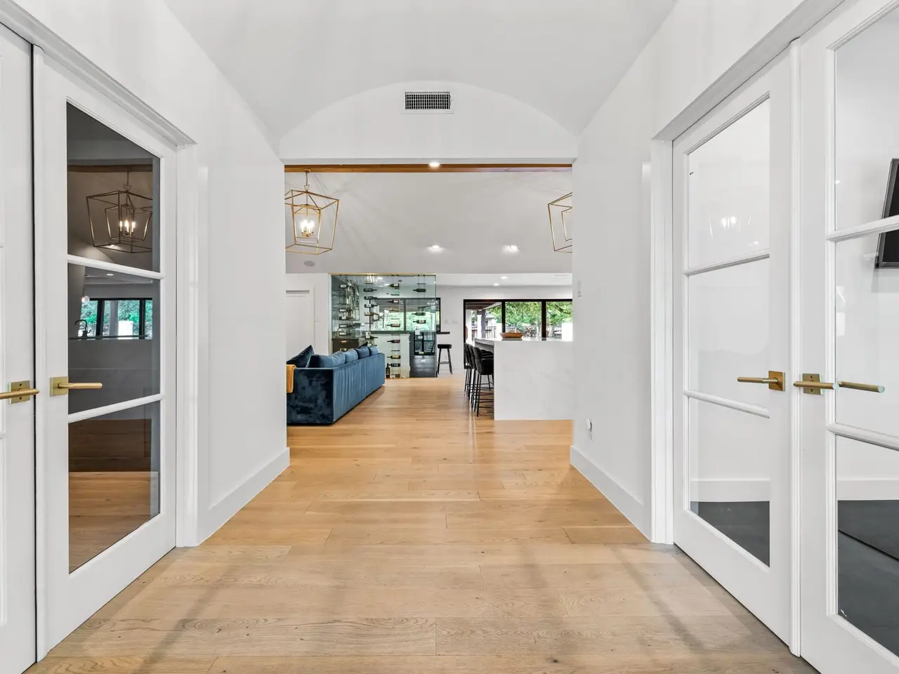 Stunning views on hole #3 of the prestigious Bent Tree Country Club course, this custom home was reimagined and gutted to the studs fusing modern luxury and functional design to offer unmatched elegance and flexibility in the heart of coveted Bent Tree. Designer finishes and a thoughtful floorplan cater to both everyday living and upscale entertaining. Soaring ceilings, large windows and slider doors flood the home with natural light. The oversized living room features a sleek entertainers bar with wine storage that overlooks the shimmering pool. The chef’s kitchen is a showstopper, featuring high-end appliances, an enormous walk-in pantry with appliance station, and double islands that offer extra seating and serving space. Retreat to the luxurious primary suite overlooking the pool and course, with its gorgeous stone fireplace and coffee station, or take the party outdoors to the expansive covered patio complete with a built-in pizza oven, full bar, and tranquil pool & spa that overlook the golf course fairway. A flexible third living area with a full bath and hidden murphy bed offers the potential for a second primary suite, while the oversized game room provides even more space to unwind or entertain. Additional large bedrooms with ensuite baths and sitting areas. Luxurious home office and additional exercise room can easily convert to additional bedrooms. Close proximity to the Tollway, high-end retail and restaurants, and top-tier private schools place this home in an ideal location for the best Dallas has to offer. This home blends timeless style with modern function - your private sanctuary on the greens awaits.