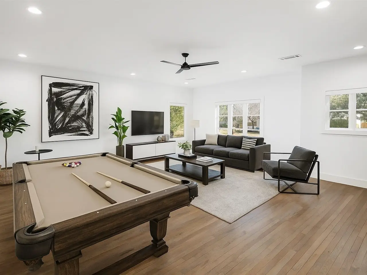 6933 Wabash Circle is sited on a gorgeous tree canopied block in a prime Lakewood location! This remodeled residence offers stunning interior design elements and a warm, timeless exterior. Comprised of 5 bedrooms, the home includes a tranquil primary suite on the first floor as well as a guest room. Upon entry a sleek foyer is flanked by a gracious dining room with a wall of windows and a cozy, inviting formal living room that could also serve as a study. The chef’s kitchen features Thermador appliances and stunning island that is open to a large living room. The second floor boasts 3 en-suite bedrooms and access to a spacious game room with wet bar and beverage center, a study lounge, and wine room. High-end designer finishes include smooth walls, tasteful wallpaper, tile, and decorative lighting selections. The backyard is an oasis complete with covered outdoor living area, fireplace, resort-style pool & spa, expansive turfed spaces, & tasteful landscaping. The attached 2 car garage has an electric vehicle charging station. Electric access gate at the rear driveway provides easy alley access and added privacy. Fabulous location within close proximity to Lakewood Elementary and White Rock Lake.
