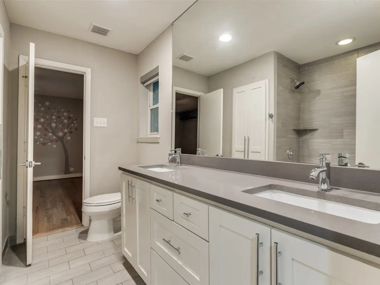 Mid-Century Modern charm meets flexible family living in the highly sought-after Windsor Park neighborhood of Preston Hollow. Nestled on a stunning, mature tree lot, this spacious 5-bedroom, 3.5-bath home offers iconic architectural style, clean lines, and a functional layout on one of North Dallas’s most picturesque streets. Built with the hallmarks of Mid-Century Modern design, the home features an open floor-plan. Inside, you’ll find multiple living and dining spaces, ideal for both entertaining and everyday life. The formal dining room is generously sized, while the family room with a classic brick fireplace offers warmth and comfort. A wood-beamed breakfast room connects to the open kitchen. The homes layout provides privacy and flexibility. On one side, two bedrooms share a full bath, creating the perfect guest suite or retreat. One bedroom includes direct access to the backyard. On the opposite wing, the primary suite and two additional bedrooms offer separation and space for the whole family. The primary bathroom is a standout, featuring a standalone soaking tub inside a spacious walk-in shower, delivering a luxurious, spa-like atmosphere. The secondary bedrooms are connected by a Jack-and-Jill bath, and there's a convenient half bath for guests. Additional features include a private office with French doors, perfect for working from home or a quiet creative space. Throughout the home, natural light and clean architectural lines highlight the thoughtful design and timeless appeal of the Mid-Century era. A large, tree-covered lot shaded by a canopy of mature oaks. Whether you envision a peaceful retreat, lively outdoor entertaining, the home offers endless potential in a serene environment. Located in Windsor Park, one of Preston Hollow's most established and sought-after neighborhoods, this home combines vintage character with modern livability.