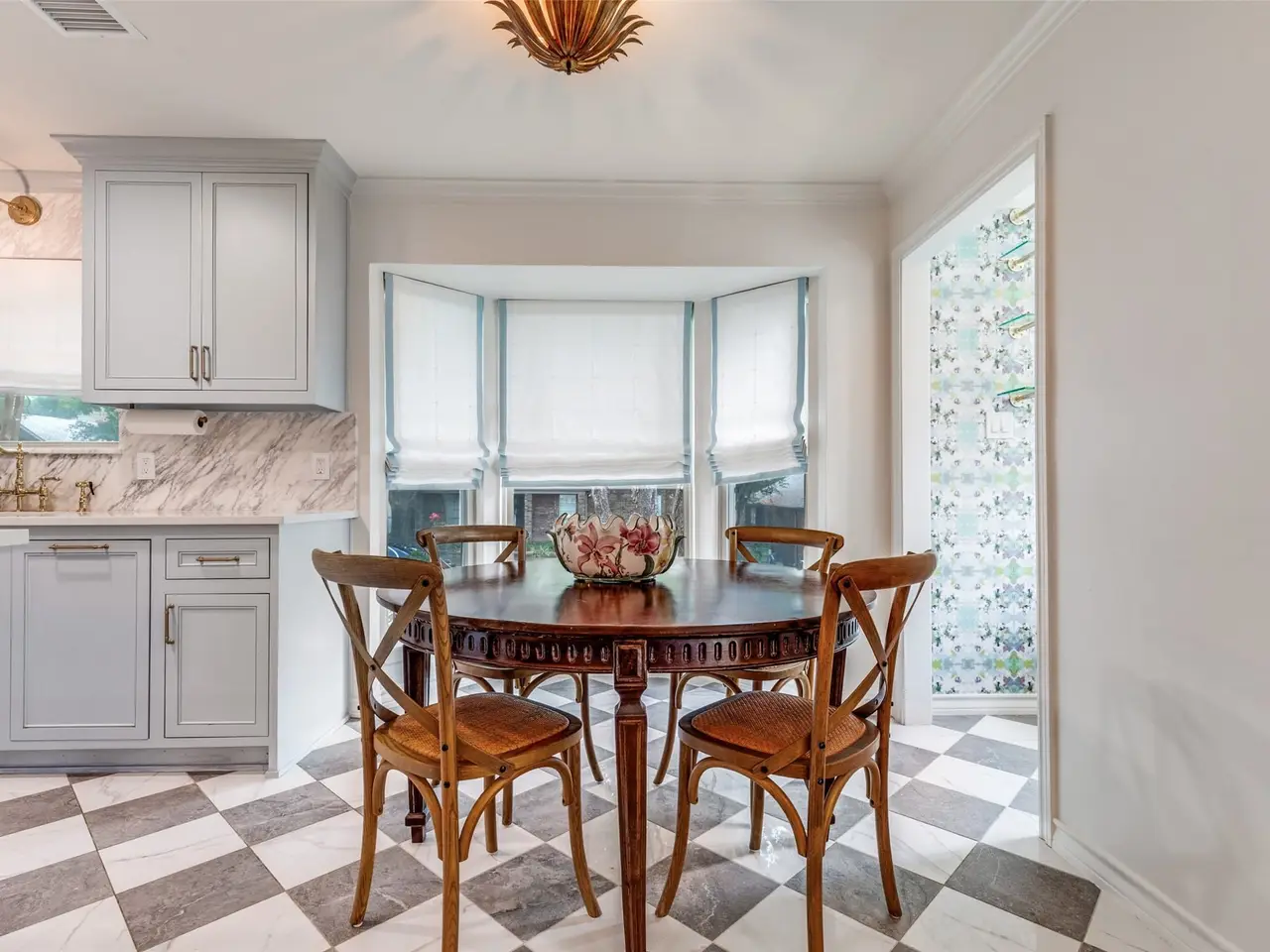 Welcome to this designer renovated Lake Highlands gem, a one of a kind home featured in design publications and curated by Emory McKim Design. Situated on a professionally landscaped and lighted quiet corner lot in the highly sought after, Moss Haven Elementary, this 4 bedroom, 2.5 bath property blends family functionality with elevated style and finishes. Offering an open floor plan and fully renovated in 2023, this special home boasts a custom kitchen with granite tops, Italian marble backsplash, Zline gas range, Bosch dishwasher, Monogram refrigerator, custom built cabinetry and window treatments. Open wet bar wrapped in iconic Laura Park wallpaper with icemaker and pass through window to custom Trex deck, grill, outdoor living area with pergola. Spacious first floor Primary suite with marble bath and custom tile and wallpaper, Formal Dining Room with avocado color walls and custom drapes, has pocket door to kitchen. Every space in this designer home is move in ready and thoughtfully designed. This home is the perfect blend of comfort, character and curb appeal.