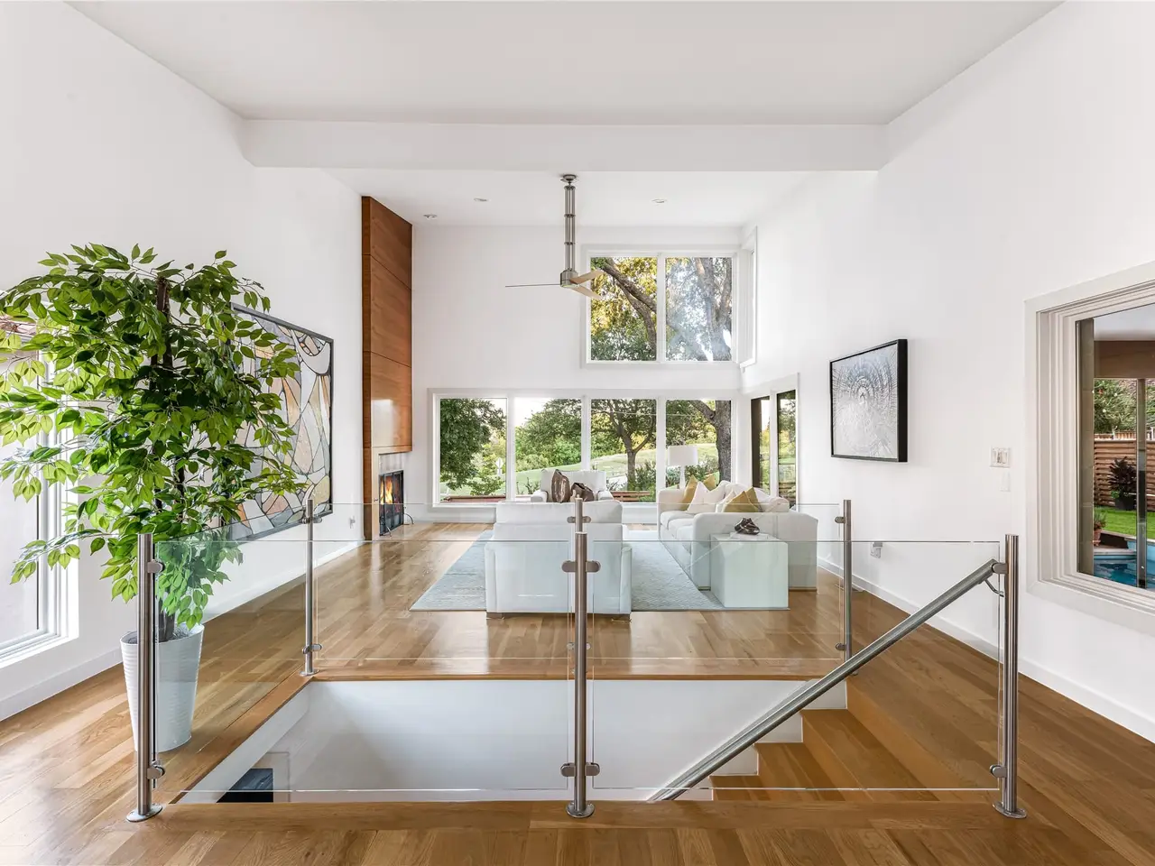 • Floating, glass-railed staircases adding understated drama