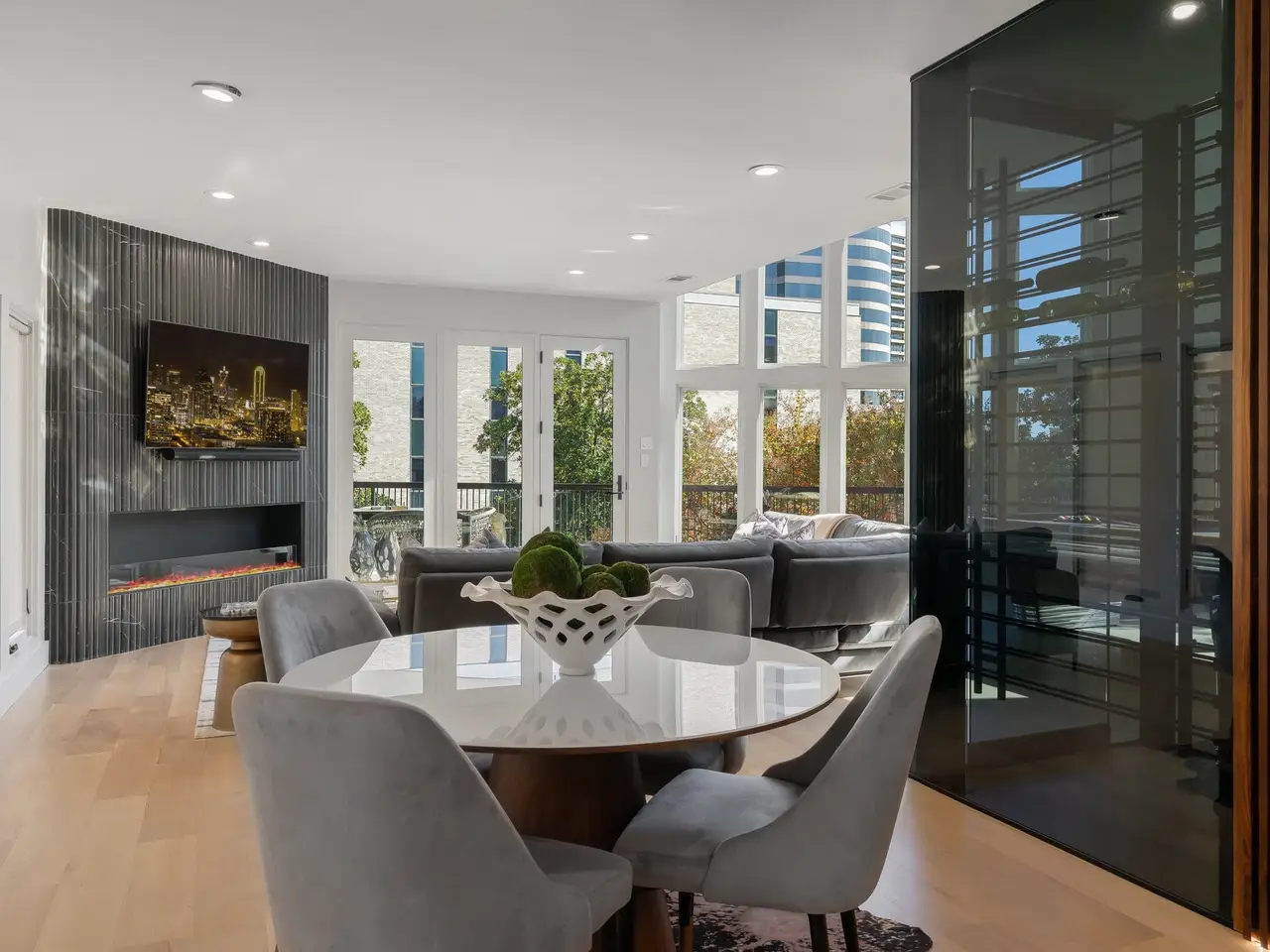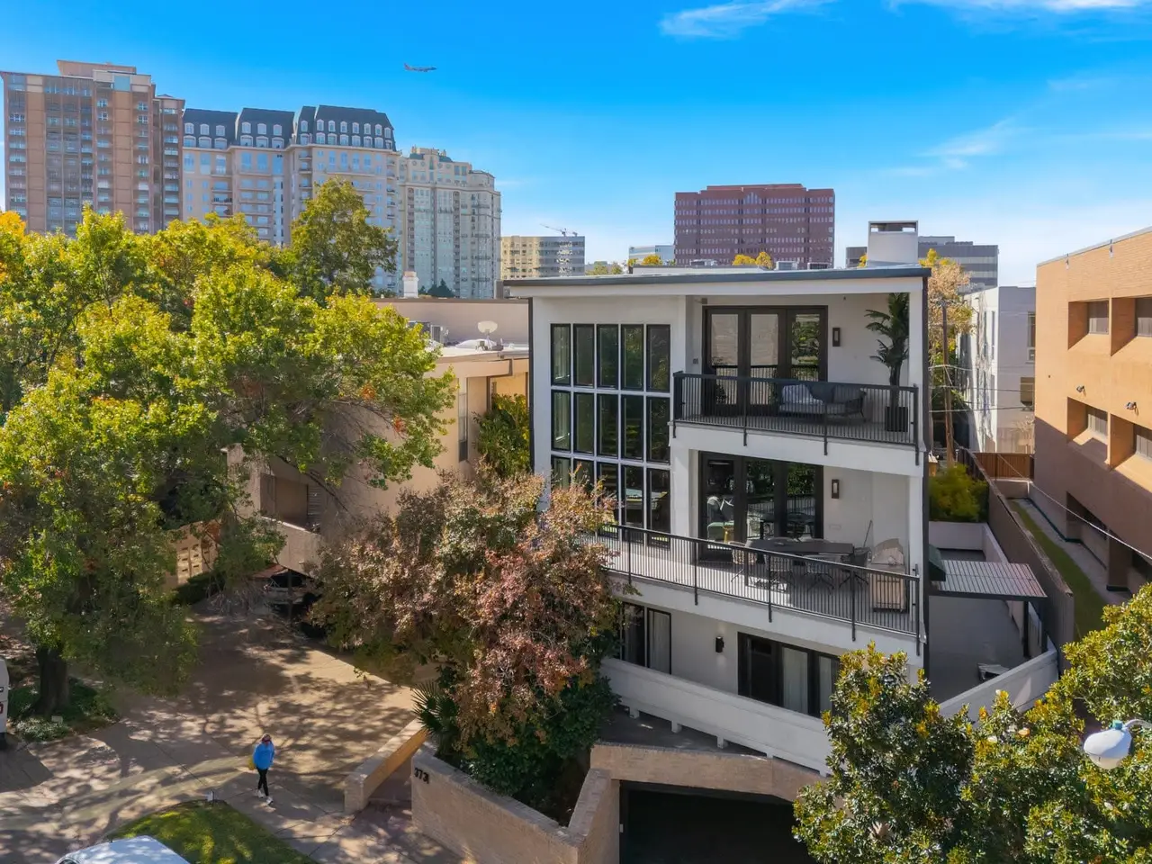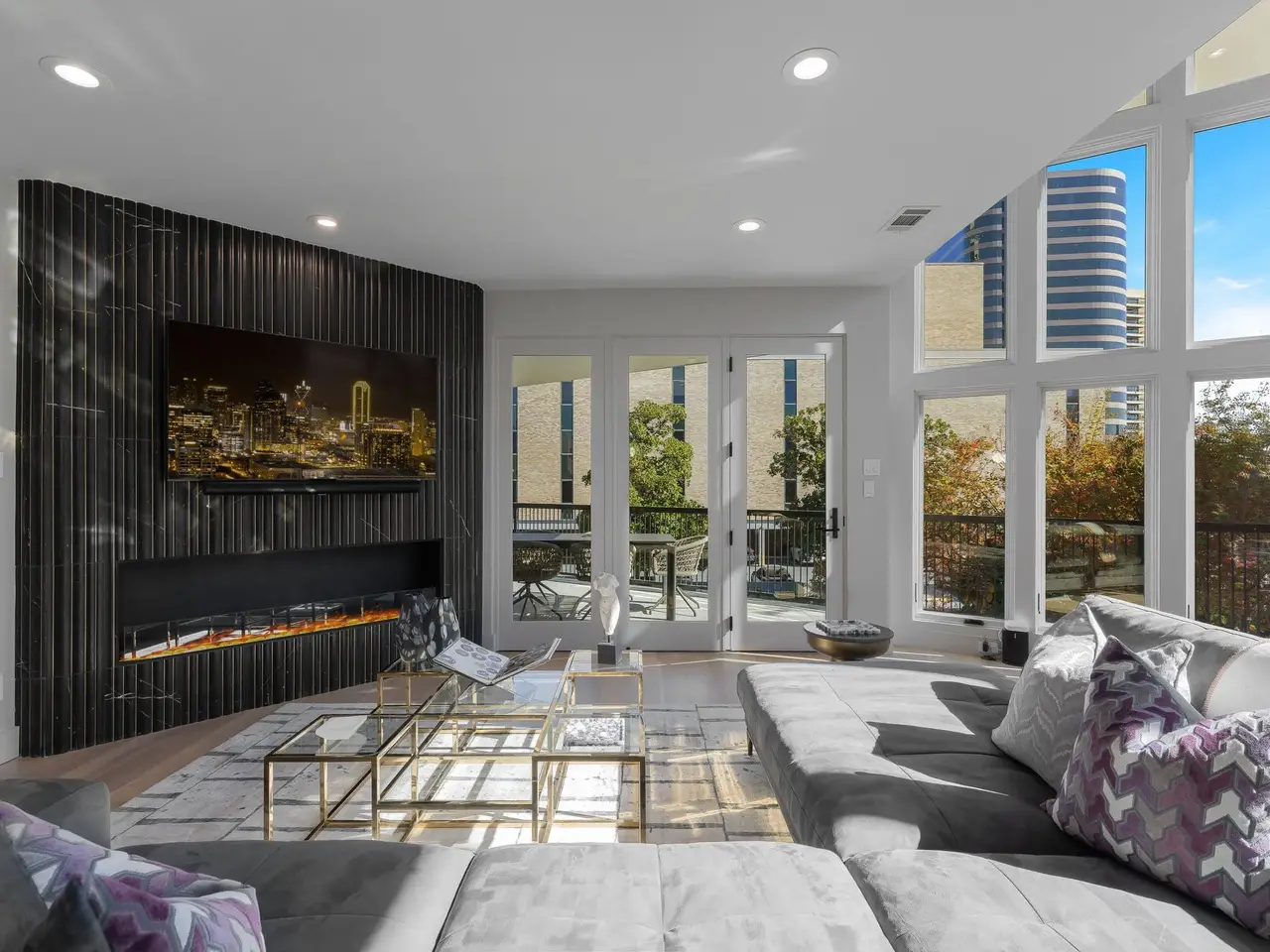 Discover a residence where sophisticated style meets dramatic architecture. This spectacularly updated home offers a truly unparalleled living experience, meticulously transformed with the finest modern finishes for 2025. As you enter, you are immediately drawn to the awe-inspiring two-story windows that flood the open-concept living space with natural light and create a stunning sense of grandeur. A spacious living & family room is anchored by a dramatic fireplace with custom marble surround. The homes heart is a chefs kitchen, a vision of contemporary elegance featuring a breathtaking marble waterfall island, glass wine closet and a full suite of top-of-the-line stainless steel appliances. Adjacent is an intimate, art-filled dining room for up to a dozen family and friends. Brand-new white oak hardwood flooring flows seamlessly throughout, unifying the space with warmth and luxury. A spacious, main-level office, tucked away for privacy, provides the perfect environment for productivity. The homes unique connection to the outdoors is showcased by not one, but two private terraces, offering elevated retreats for morning coffee or evening entertaining against a beautiful backdrop. The thoughtful split-bedroom floor plan ensures a tranquil primary suite, a true sanctuary for relaxation. Within short walking distances to restaurants, bars, grocery stores art galleries, Turtle Creek Park and The Katy this home blends serene living with effortless access to all your favorite places. This is a rare opportunity to own a completely re-imagined architectural gem.