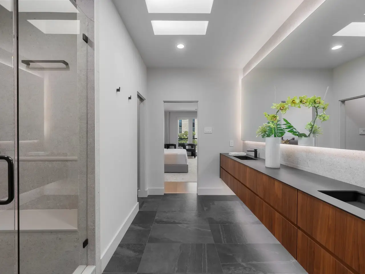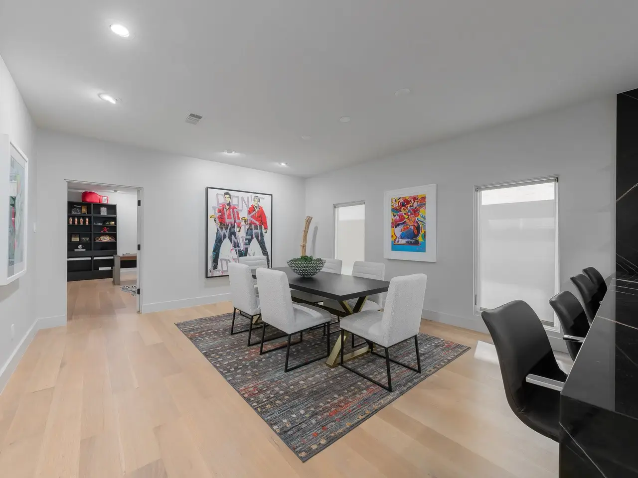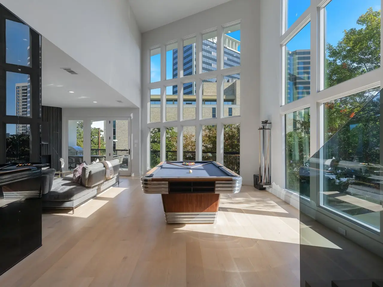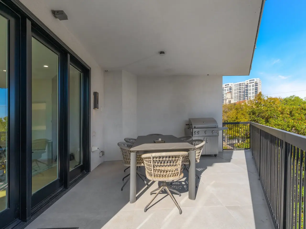 Discover a residence where sophisticated style meets dramatic architecture. This spectacularly updated home offers a truly unparalleled living experience, meticulously transformed with the finest modern finishes for 2025. As you enter, you are immediately drawn to the awe-inspiring two-story windows that flood the open-concept living space with natural light and create a stunning sense of grandeur. A spacious living & family room is anchored by a dramatic fireplace with custom marble surround. The homes heart is a chefs kitchen, a vision of contemporary elegance featuring a breathtaking marble waterfall island, glass wine closet and a full suite of top-of-the-line stainless steel appliances. Adjacent is an intimate, art-filled dining room for up to a dozen family and friends. Brand-new white oak hardwood flooring flows seamlessly throughout, unifying the space with warmth and luxury. A spacious, main-level office, tucked away for privacy, provides the perfect environment for productivity. The homes unique connection to the outdoors is showcased by not one, but two private terraces, offering elevated retreats for morning coffee or evening entertaining against a beautiful backdrop. The thoughtful split-bedroom floor plan ensures a tranquil primary suite, a true sanctuary for relaxation. Within short walking distances to restaurants, bars, grocery stores art galleries, Turtle Creek Park and The Katy this home blends serene living with effortless access to all your favorite places. This is a rare opportunity to own a completely re-imagined architectural gem.
