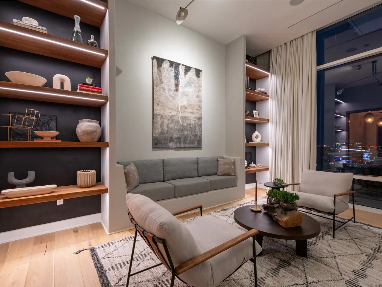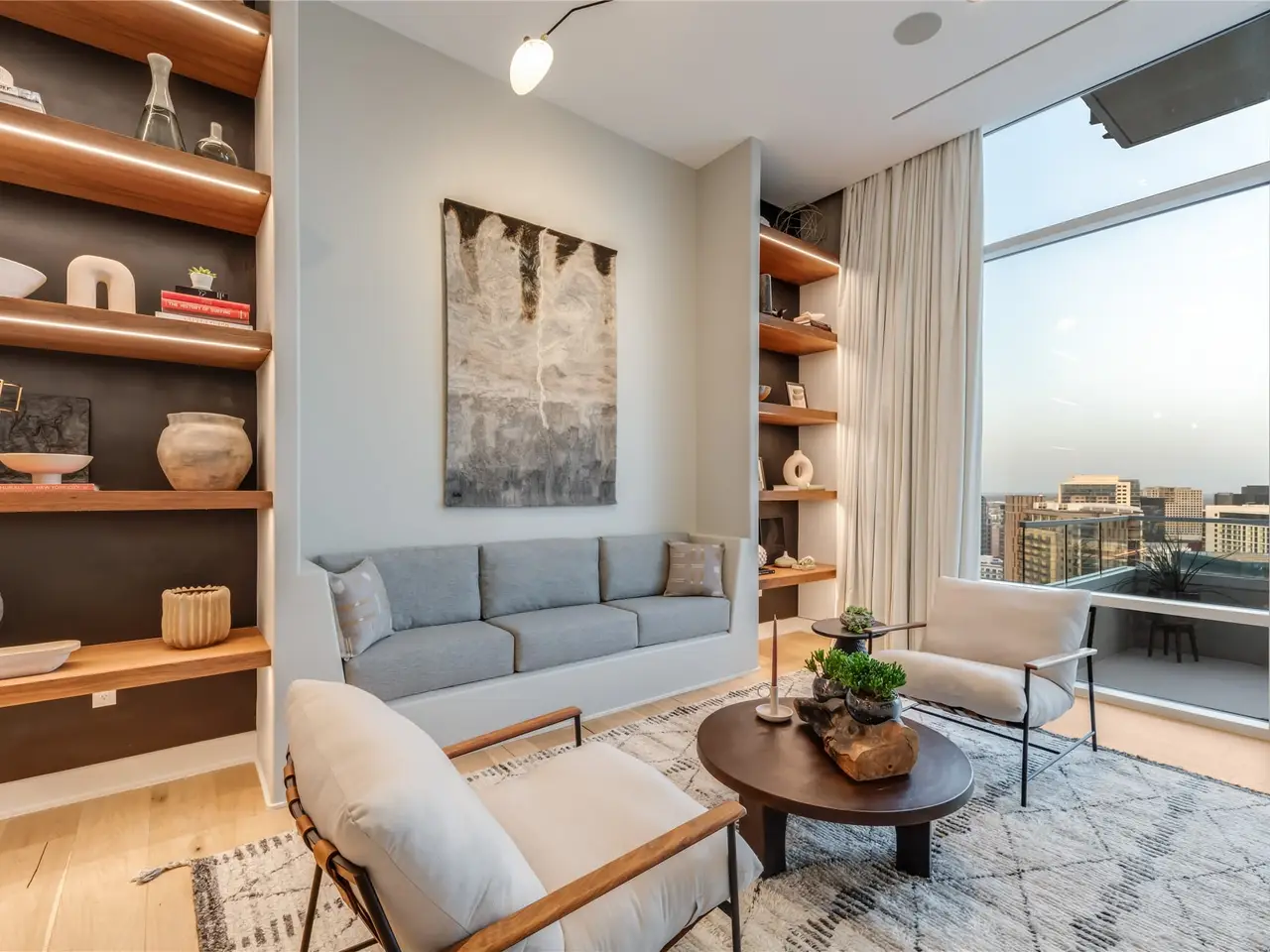 Experience a new definition of luxury in the sky, located on the 32nd floor, the tallest in all the W residences. Completely redone with brand new finishes this one-of-a-kind penthouse offers breathtaking views throughout with floor-to-ceiling windows complemented with both east and west patios. Featuring top-tier finishes, roman plaster textured walls, welcomed with Lutron lighting that casts a soft, welcoming glow perfect for setting the mood for entertaining guests. The expansive open concept of living and dining areas flow seamlessly into a stunning chefs kitchen, leading to a one-of-a-kind home bar with commercial features. Equipped with a Hoshizaki pebble ice maker, a Miele glassware dishwasher, a wine cooler, and a Toki highball machine found exclusively in top bars worldwide, chills whisky and soda to perfection, preventing dilution while delivering five times the carbonation of regular soda water. Architectural elements elevate the design, enhancing the dramatic city views throughout. The primary suite greets you with a cozy seating area and a see-through gas fireplace, creating both warmth and a sense of separation from the spacious bedroom. The adjoining bath features a luxurious double primary shower leading to a large walk-in closet. Designed for ultimate entertainment, the penthouse features five zones of Sonos speakers, including built-in subwoofers, for an immersive audio experience. In addition to hotel-style amenities including room service, this is a prime location, with a newly renovated lobby coming soon. This penthouse offers a sophisticated retreat in the heart of the city, combining convenience, style, and world-class amenities for those seeking a home in the sky.