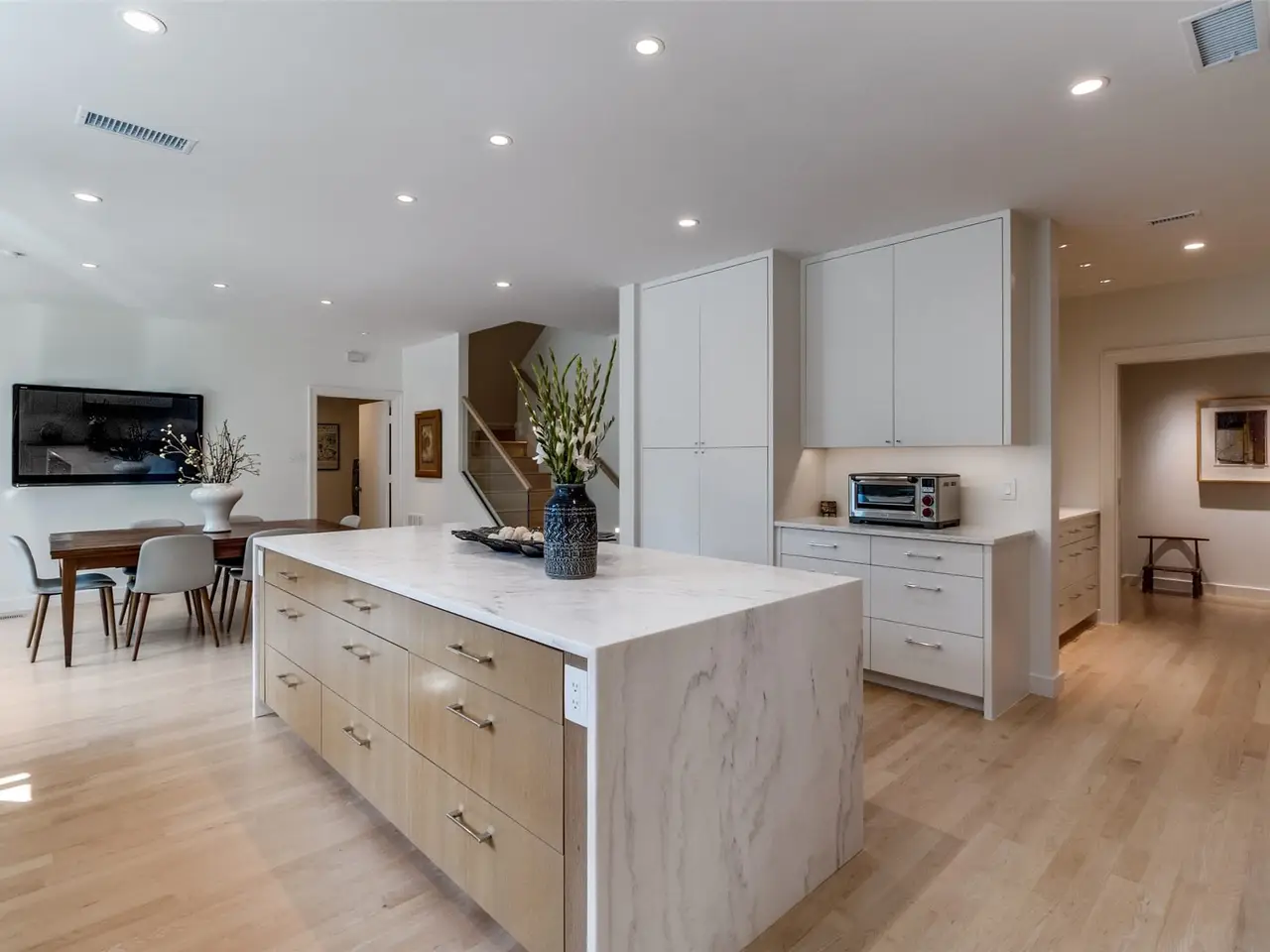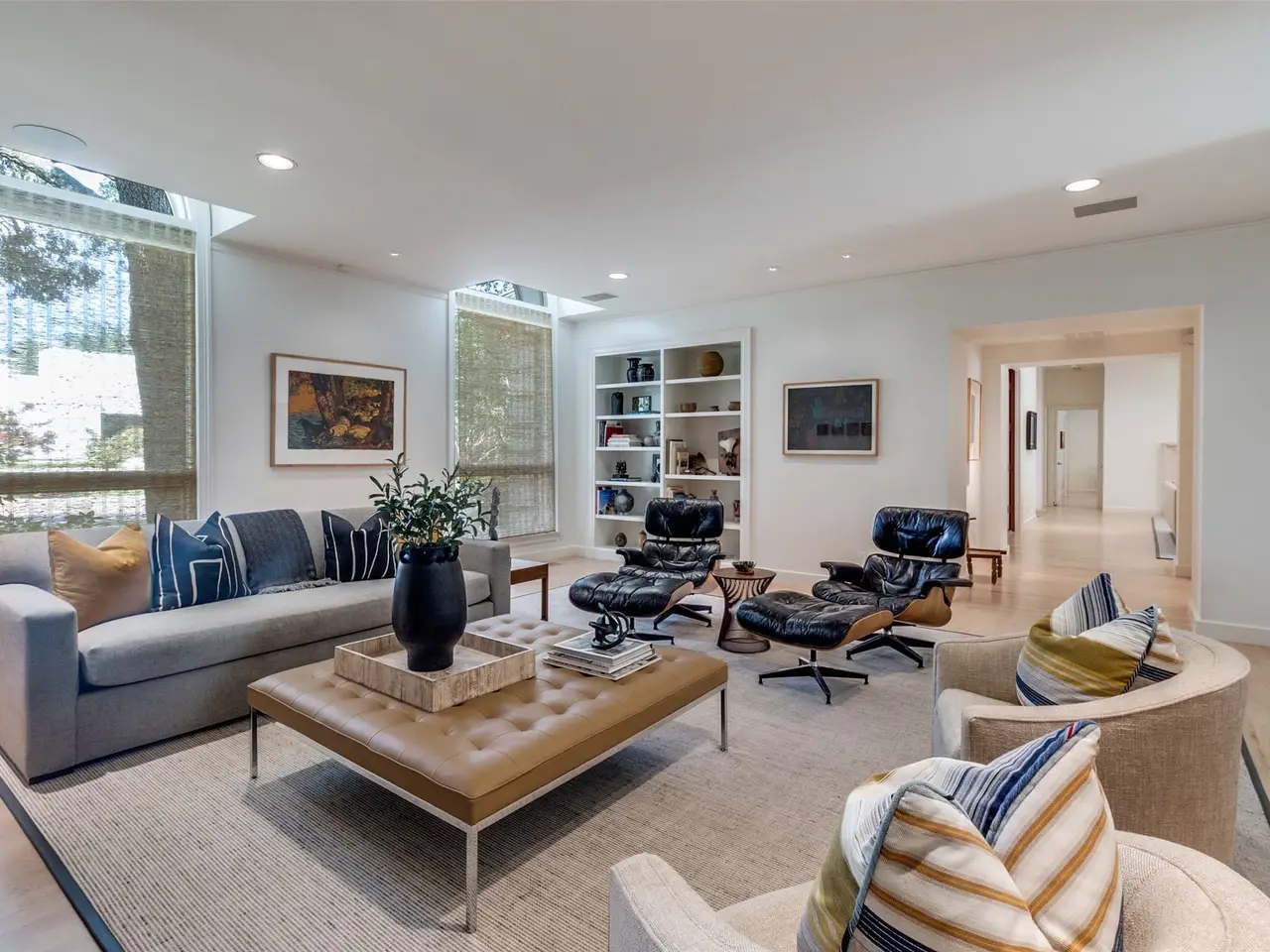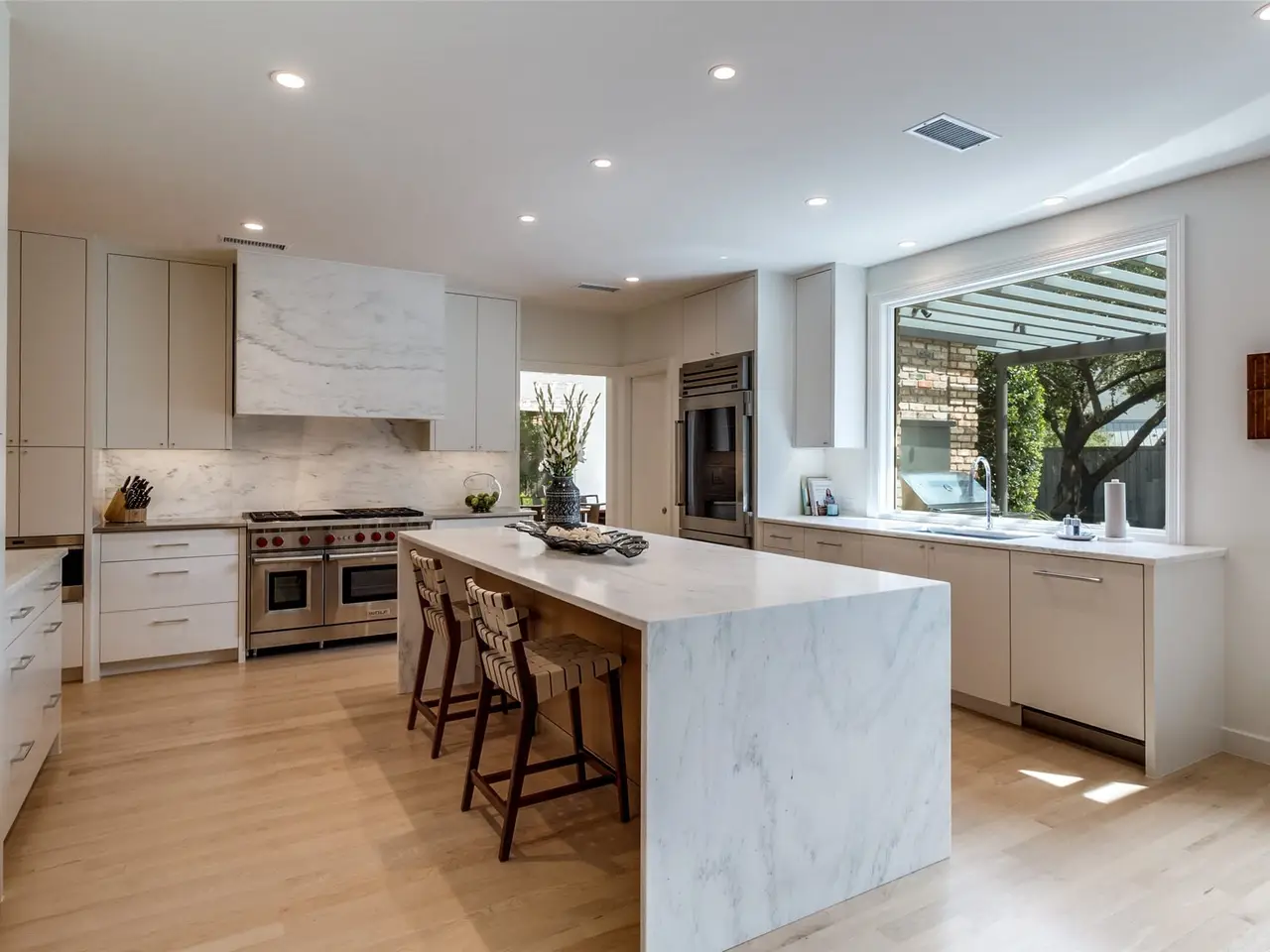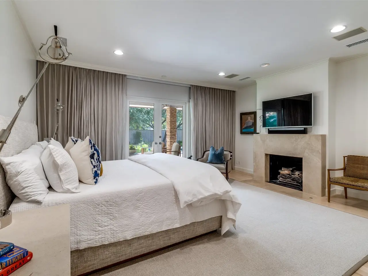 At the end of a quiet street, next to a charming city park sits 5606 Dittmar Place - a home that blends thoughtful design with luxurious living. Extensively remodeled in 2020-2021 (by Architectural Firm: Bernbaum Magadini) the interiors are now open, bright and finished with the highest quality materials. Step inside to a spacious living room with soaring ceilings and a cozy fireplace. The dining room, framed by dramatic floor-to ceiling windows, overlooks the beautifully landscaped backyard, complete with a pool, spa and generous grassy areas for play and entertaining. The primary suite is a true retreat, featuring its own fireplace, private patio, and spa-like bath with Danby Marble vanities, a soaking tub, separate shower, and 2 oversized walk-in closets. A chic powder room is conveniently located nearby for guests. The chef's kitchen has been completely reimagined with a marble-topped island, Subzero glass-door refrigerator & freezer, Wolf 6-burner range, and a bar equipped with a wine cooler and ice maker. Just beyond, a functional office with a full bath and the more casual den with a third fireplace offers versatile main-level living. Upstairs, you'll find a secondary office and lounge, a guest room with ensuite bath, and 2 additional bedrooms sharing a travertine-appointed bath. A flexible exercise or studio space completes the second floor. So much storage and a 3 car garage. Sophisticated, with clean-lines and move-in ready, this home offers an elegant lifestyle in one of the area’s most peaceful settings.