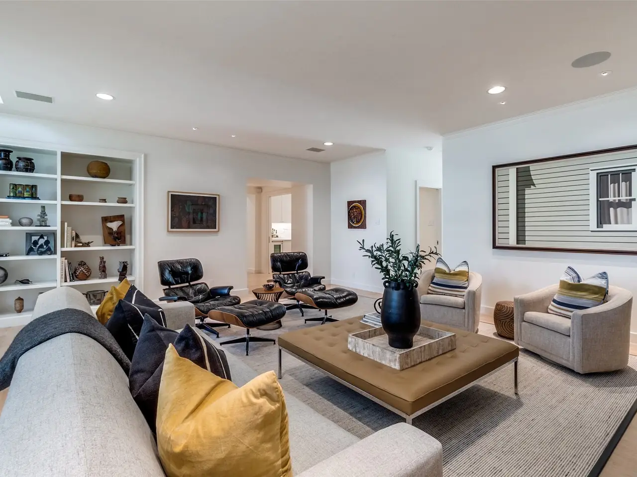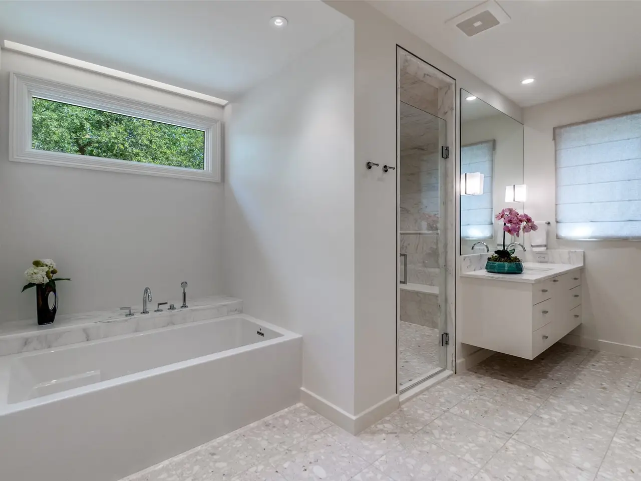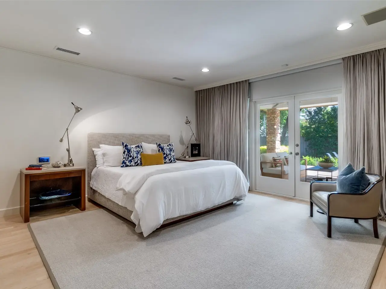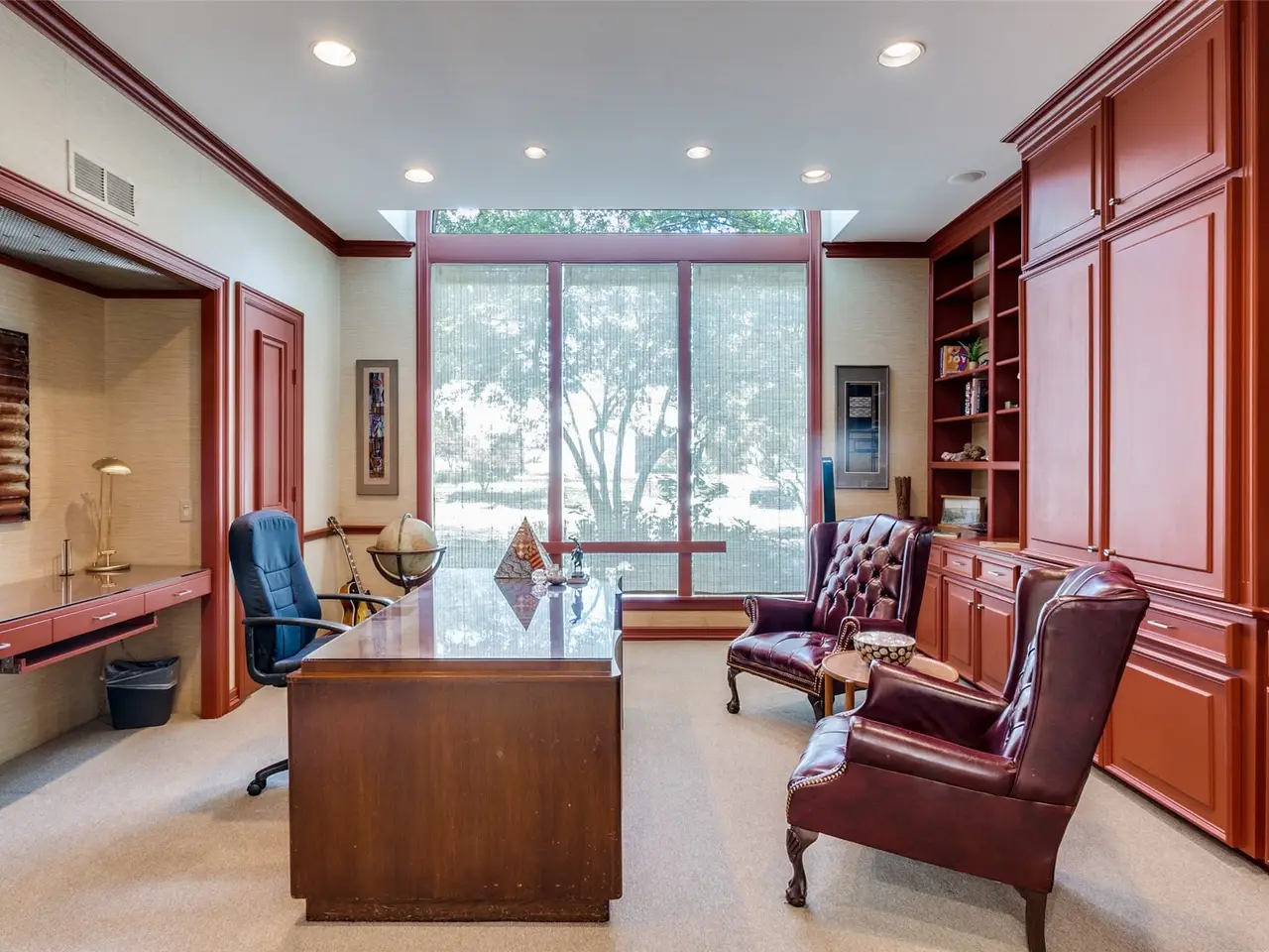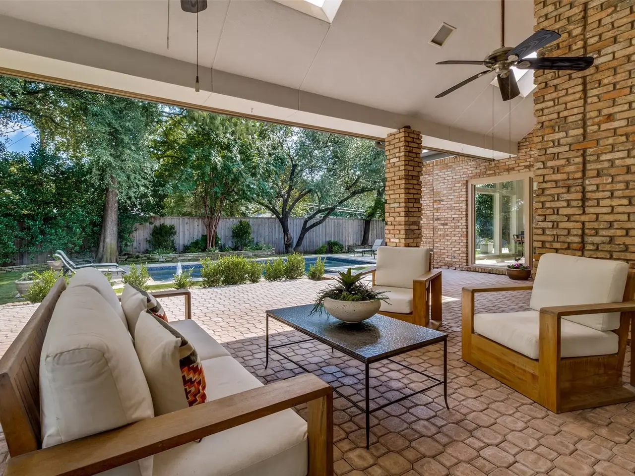 At the end of a quiet street, next to a charming city park sits 5606 Dittmar Place - a home that blends thoughtful design with luxurious living. Extensively remodeled in 2020-2021 (by Architectural Firm: Bernbaum Magadini) the interiors are now open, bright and finished with the highest quality materials. Step inside to a spacious living room with soaring ceilings and a cozy fireplace. The dining room, framed by dramatic floor-to ceiling windows, overlooks the beautifully landscaped backyard, complete with a pool, spa and generous grassy areas for play and entertaining. The primary suite is a true retreat, featuring its own fireplace, private patio, and spa-like bath with Danby Marble vanities, a soaking tub, separate shower, and 2 oversized walk-in closets. A chic powder room is conveniently located nearby for guests. The chef's kitchen has been completely reimagined with a marble-topped island, Subzero glass-door refrigerator & freezer, Wolf 6-burner range, and a bar equipped with a wine cooler and ice maker. Just beyond, a functional office with a full bath and the more casual den with a third fireplace offers versatile main-level living. Upstairs, you'll find a secondary office and lounge, a guest room with ensuite bath, and 2 additional bedrooms sharing a travertine-appointed bath. A flexible exercise or studio space completes the second floor. So much storage and a 3 car garage. Sophisticated, with clean-lines and move-in ready, this home offers an elegant lifestyle in one of the area’s most peaceful settings.