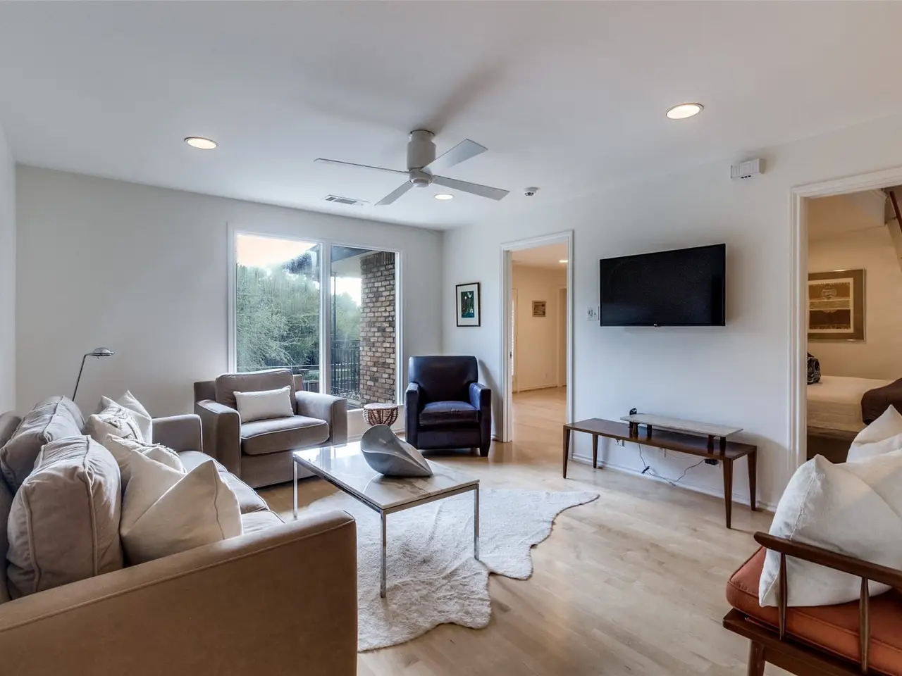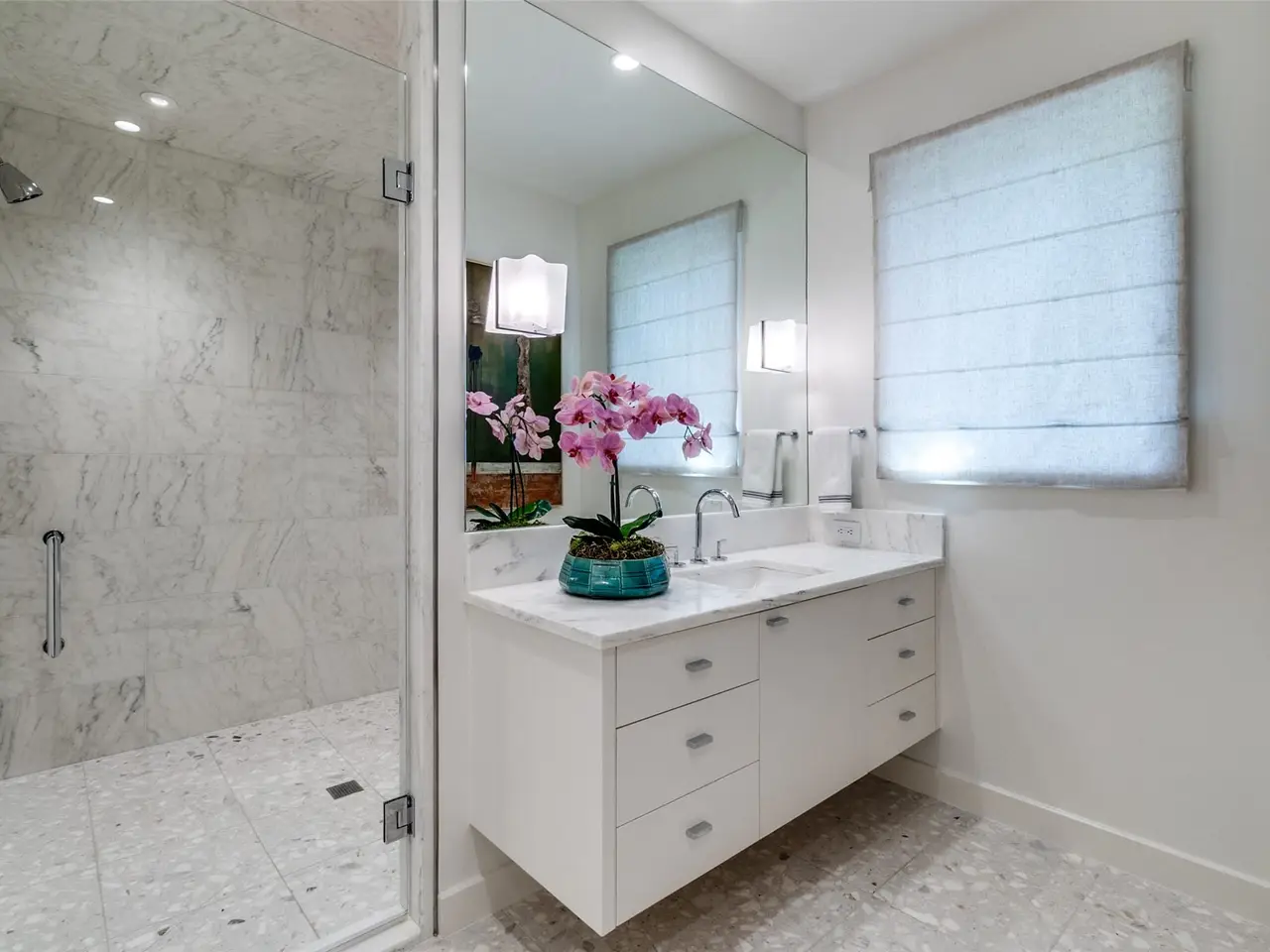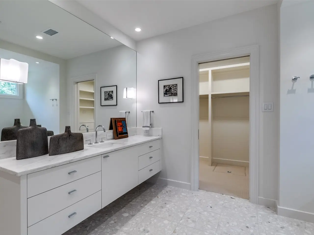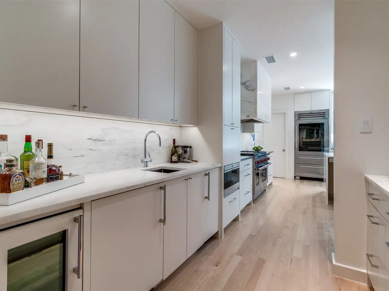 At the end of a quiet street, next to a charming city park sits 5606 Dittmar Place - a home that blends thoughtful design with luxurious living. Extensively remodeled in 2020-2021 (by Architectural Firm: Bernbaum Magadini) the interiors are now open, bright and finished with the highest quality materials. Step inside to a spacious living room with soaring ceilings and a cozy fireplace. The dining room, framed by dramatic floor-to ceiling windows, overlooks the beautifully landscaped backyard, complete with a pool, spa and generous grassy areas for play and entertaining. The primary suite is a true retreat, featuring its own fireplace, private patio, and spa-like bath with Danby Marble vanities, a soaking tub, separate shower, and 2 oversized walk-in closets. A chic powder room is conveniently located nearby for guests. The chef's kitchen has been completely reimagined with a marble-topped island, Subzero glass-door refrigerator & freezer, Wolf 6-burner range, and a bar equipped with a wine cooler and ice maker. Just beyond, a functional office with a full bath and the more casual den with a third fireplace offers versatile main-level living. Upstairs, you'll find a secondary office and lounge, a guest room with ensuite bath, and 2 additional bedrooms sharing a travertine-appointed bath. A flexible exercise or studio space completes the second floor. So much storage and a 3 car garage. Sophisticated, with clean-lines and move-in ready, this home offers an elegant lifestyle in one of the area’s most peaceful settings.