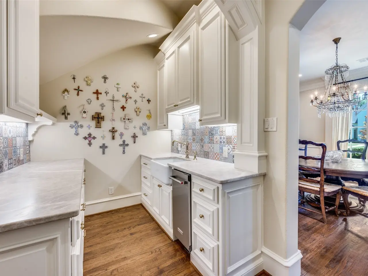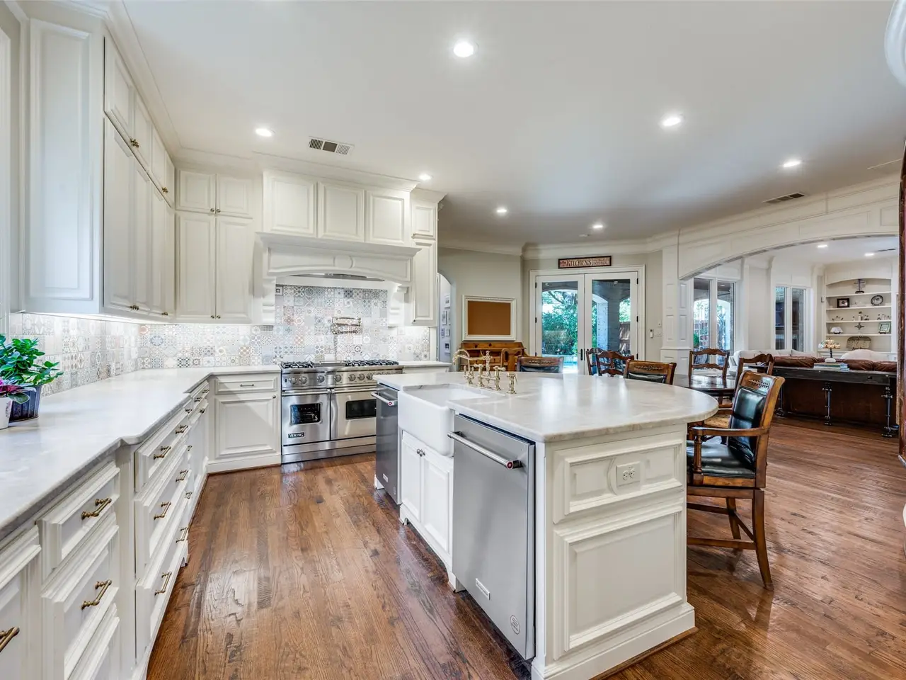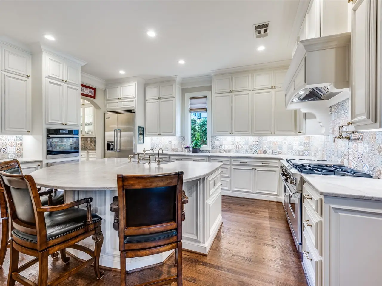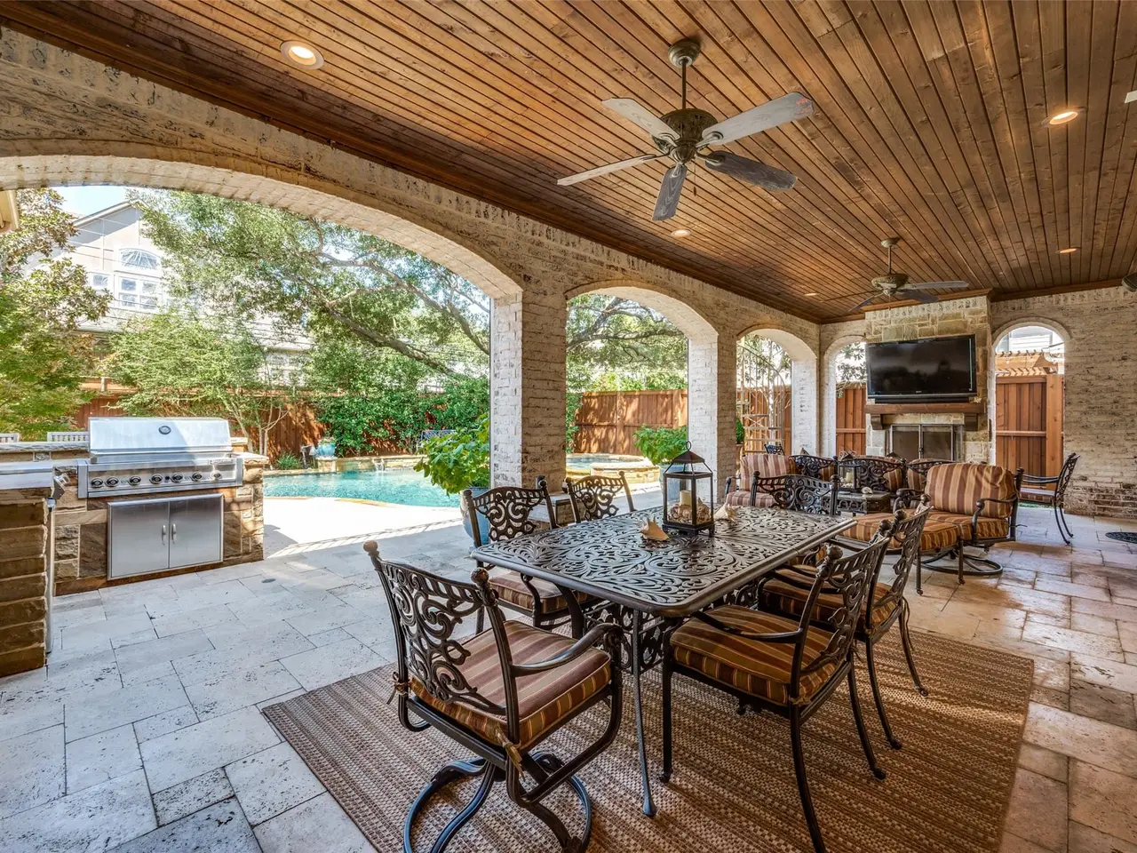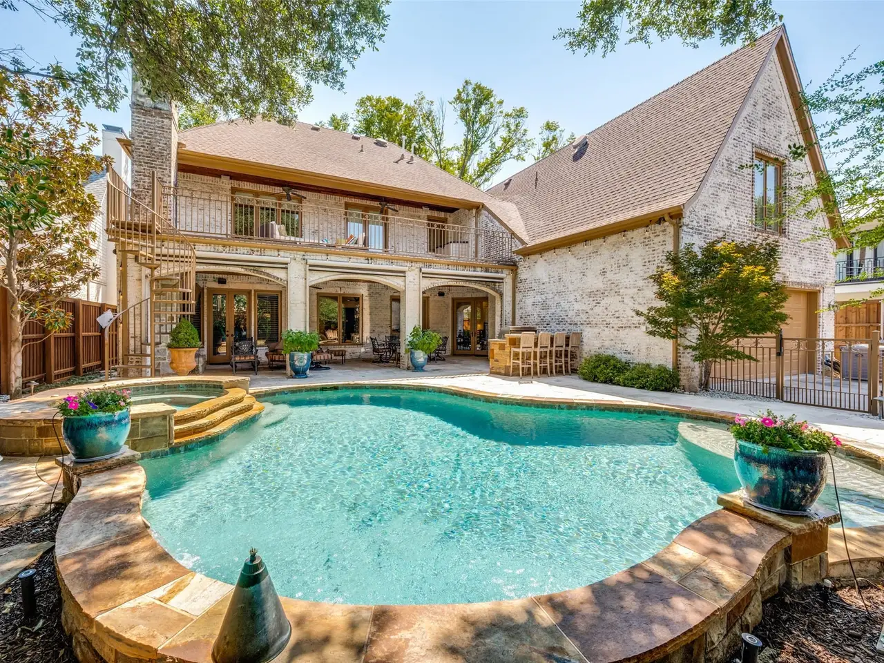 Discover timeless elegance and modern comfort in this 5,834 sq. ft. home set on a generous 70 x 158 ft. lot within the highly sought-after Highland Park ISD. With 4 bedrooms, 4 full baths, 3 half baths, 3 living areas, and a spacious study, this residence combines thoughtful design with exceptional updates throughout. At the heart of the home is a stunningly remodeled kitchen with Taj Mahal quartzite countertops, an oversized island, built-in Viking refrigerator, Viking gas range, Miele combination steam oven, and dual dishwashers. A butlers pantry and scullery provide additional prep and cleanup areas, making hosting effortless. The kitchen opens to the family room, where expansive doors lead to a covered porch with remote-controlled screens overlooking the sparkling saltwater pool and spa. Outdoor living is elevated with a built-in grill, refrigerator, and fireplace, plus generous dining and lounge areas that create the ultimate gathering space. The downstairs bedroom, currently used as an exercise room, also works beautifully as a private guest suite. Upstairs, the primary suite offers a true retreat with a spa-inspired bath, custom his-and-her closets, and a large balcony overlooking the pool - perfect for morning coffee or anytime entertaining space. Two additional bedrooms with en suite baths, a playroom with an oversized walk-in closet, a well-appointed laundry room, bonus office space, and a half bath complete the second floor. Every detail has been carefully considered, from abundant storage to an extensive list of recent upgrades. With undeniable curb appeal, a functional floor plan, and luxury amenities, this home delivers an unmatched lifestyle in one of Dallas’s most desirable neighborhoods.