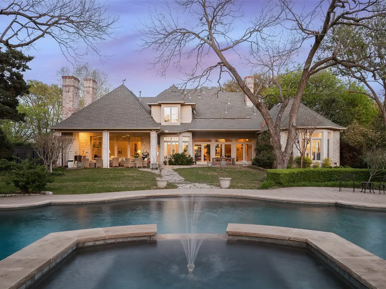 Nestled in one of Dallas' coveted hidden enclaves of Preston Hollow, this timeless French Transitional estate is where elegance meets serenity on a nearly full acre of exquisitely landscaped grounds. Tucked behind mature trees and set amid lush lawns, a sparkling pool and expansive green space are perfect for play, pets, your dream cabana, or guest house. Built and cherished by a single family since 1999, this four bedroom sanctuary is more than a home and waiting for someone to make it their own. A grand entry sets the tone, flanked by formal spaces and flowing seamlessly into a gourmet kitchen made for celebration. Step outside and let the home extend its armsretractable screens open to an outdoor living area that lives like a second great room, perfect for quiet mornings or evening entertaining. Both a formal library and a second office or nursery grace the expansive first level. Multiple staircases rise to spacious secondary suites and game room, while the downstairs primary suite is a haven all its ownfeaturing a spa-like bath, tranquil views, and a hidden safe room for peace of mind. From the stately circular drive to the three-car garage with extra storage, every inch of this home whispers refinement and quiet luxury. Your Preston Hollow retreat awaits.
