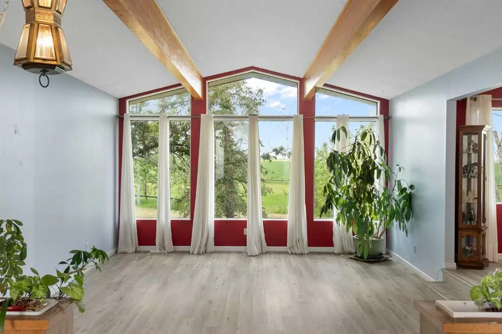 Set on over 66 acres with two convenient entrances and frontage along three roads—Highway 9, Township Road 252, and 252A—this exceptional property is just 10 minutes from Calgary city limits and 15 minutes from the future De Havilland Field. The land features a well-maintained 2,200 sq ft bungalow that has been lovingly cared for by the same family for the past 46 years. With a total of five generously sized bedrooms—four on the main floor including the primary suite with walk-in closet and private ensuite—the home offers a spacious and functional layout. The remaining main-floor bedrooms share a 4-piece bathroom, and the newer luxury vinyl plank flooring throughout the level adds a fresh, modern feel. Outdoors, the property is ideally equipped for equestrian or hobby farm use, with a 3-stall barn and run-in shelter—both with electricity and water—as well as a fenced paddock and riding area. Two additional outbuildings offer flexible use for storage or housing small livestock or poultry. The land is supported by three wells with flow rates between 2.5 and 3 GPM. Township Road 252 is on a school bus route, so snow removal to Highway 9 is prioritized—making year-round access convenient, even in winter. Currently, approximately 55 acres are leased to a local farmer, and a surface lease for a gas well provides additional, steady income. With development booming east of Calgary, the area offers incredible future potential—surrounded by multiple golf courses, future De Havilland Field, and quick routes to city amenities. Zoned A-GEN in Rocky View County, this is an ideal opportunity for those seeking rural living, investment potential, or long-term development possibilities. The insurance claim for siding and roofing has been processed, and seller has contracted someone to make the repairs in August, 2025. There is steel siding for the horse shelter that has been cut to size being stored in the barn, just needs to be installed. An insurance claim is currently in process for roof and siding repairs from hail damage, ensuring peace of mind for the next owner.