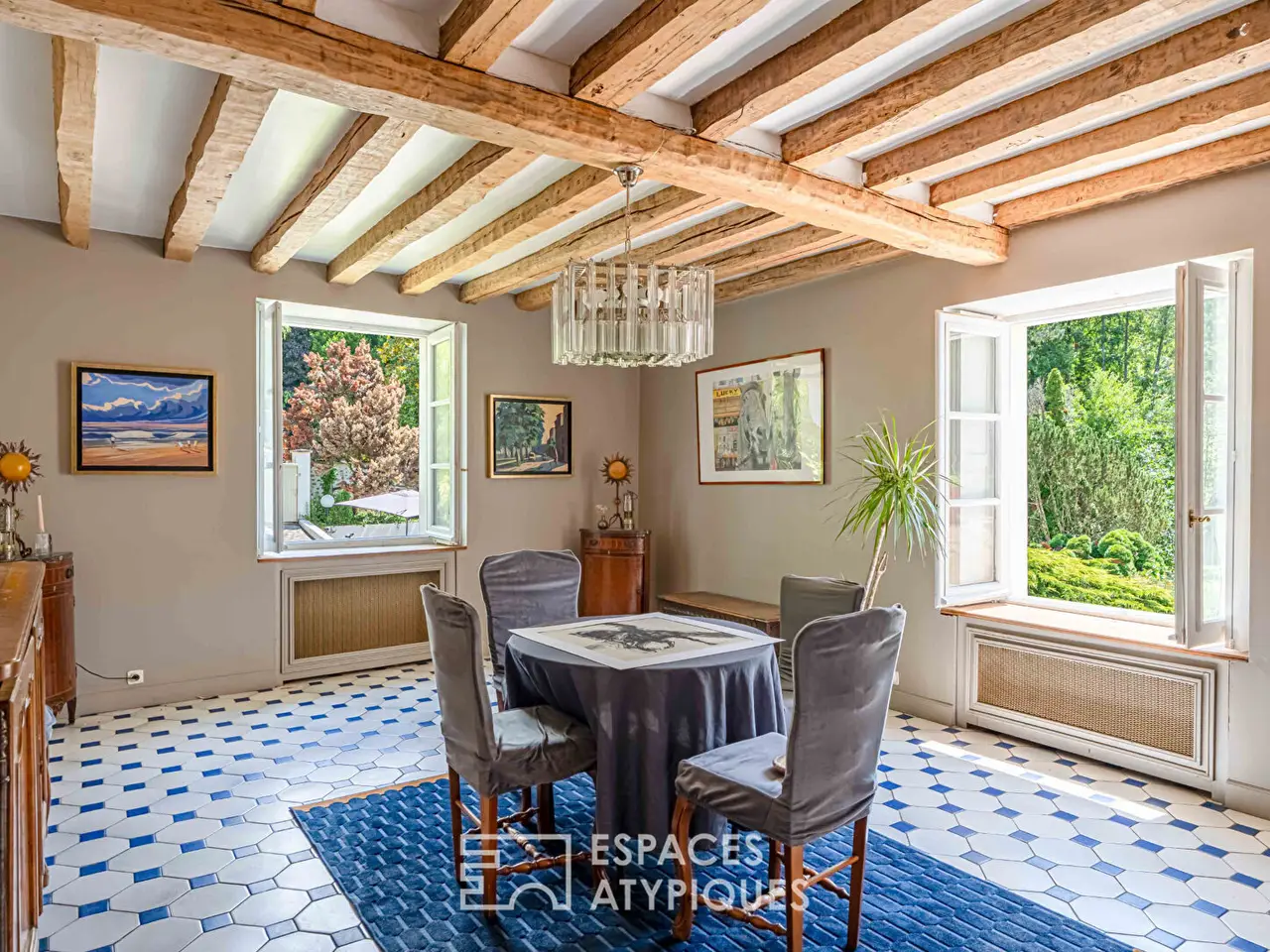 A stone's throw from the Chateau de Dampierre-en-Yvelines, this prestigious estate, originally a former mill, offers nearly 650 sqm of living space in the heart of a 3,950 sqm landscaped park with a swimming pool. It consists of an elegant 497 sqm mansion and a 149 sqm barn, creating a unique setting where art, nature, and culture meet. The house, built on three levels, reveals upon entry a vast living room with generous volumes, enhanced by the charm of the beams and exposed stonework. Eight unique bedrooms are located there, offering remarkable capacity for family life or receptions. Adjoining it, a renovated barn houses a main room that can accommodate up to 130 guests in cocktail configuration, complemented by a fully equipped catering area, a mezzanine with a bedroom and bathroom. This space can become a private living space as well as an event setting. The whole, enhanced by its green environment and timeless elegance, constitutes a rare setting at the gates of Paris, in the Chevreuse Valley, combining heritage, preserved nature and accessibility to the capital. ENERGY CLASS: D / CLIMATE CLASS: D Estimated annual energy expenditure for standard use: between EUR4,900 and EUR6,690 Reference year: 2021 (subscription included). REF. 12120 Additional information * 12 rooms * 8 bedrooms * 4 bathrooms * 1 bathroom * Outdoor space : 3950 SQM * Property tax : 4 943 € Energy Performance Certificate Primary energy consumption d : 170 kWh/m2.year High performance housing