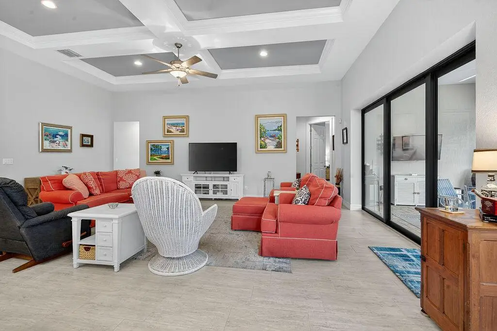Welcome to Copperleaf - One of Palm City's Most Sought-After Communities!This beautifully maintained coastal themed Pulte Pinnacle model offers the perfect blend of luxury, comfort, and functionality--all on one spacious level. Nestled on a pie-shaped oversized lot, this 3-bedroom, 3-bath home (including 2 ensuite baths) features a split floorplan with a dedicated home office adorned with custom barn doors, ideal for work or quiet retreat.The heart of the home is the open-concept, upgraded kitchen, boasting taller cabinets, an expanded center island, and ample space for entertaining. Impact windows throughout offer peace of mind, while allowing natural light to pour in.Step outside to your private, screened pool area with crosswind heat pump. The serene preserve view creates a true sense of privacy and tranquility. Copperleaf residents enjoy resort-style amenities including a clubhouse, fitness center, tennis courts, resort pool, playgrounds, and moreall with low HOA fees Don't miss your opportunity to own this stunning home in one of Martin County's premier gated communities!