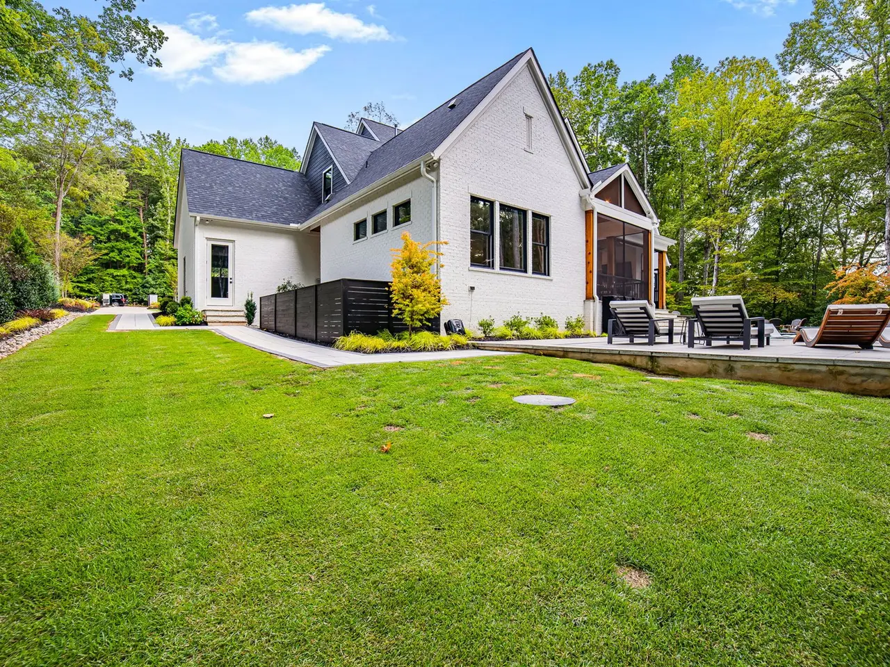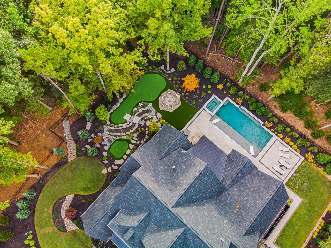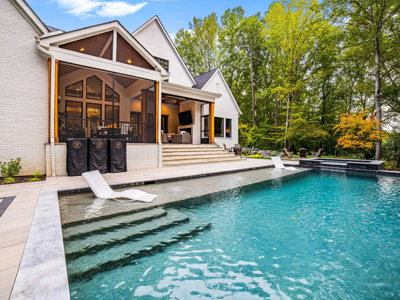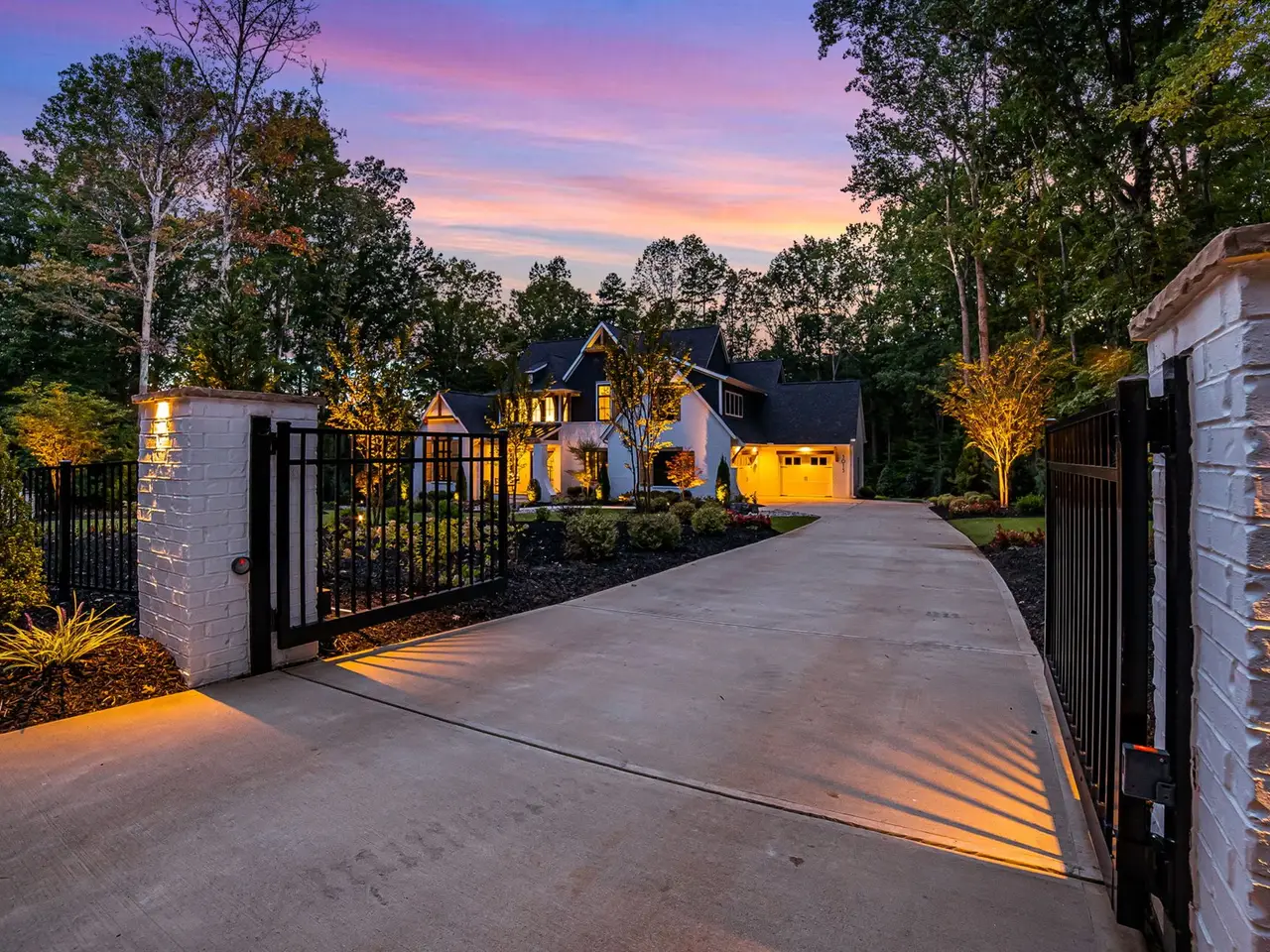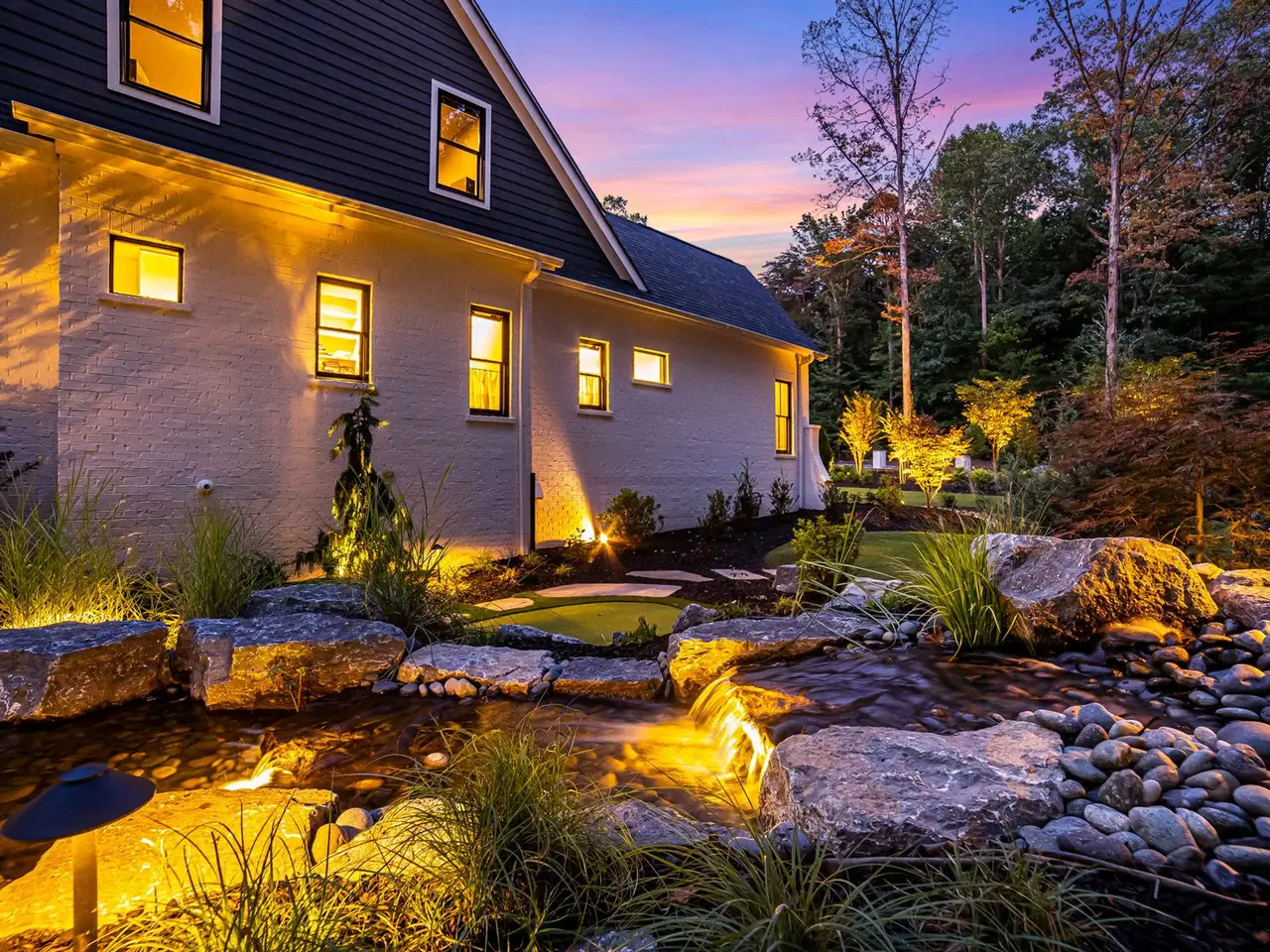 Experience unmatched privacy and modern luxury in this fully custom 2023 estate, perfectly situated on over 3.4 acres in Maple Grove, a boutique six-lot subdivision. From the moment you arrive, the gated entry with brick columns and sweeping front lawn framed by manicured landscaping create a commanding first impression.The home's thoughtful design blends sophistication and comfort with soaring vaulted and beamed ceilings, custom millwork, and designer lighting throughout. The chef's kitchen showcases natural Vancouver Quartzite with a double-edge island, 6-burner range with griddle and hearth oven, pot filler, hidden walk-in pantry and outlets, complemented by a separate scullery with a full second kitchen, Italian handmade backsplash tile, and abundant storage. Pocket doors add privacy to multiple spaces including the library/media room and guest suites.Retreat to the serene primary suite with spa-inspired bath, custom closets, and marble finishes. Additional highlights include glazed Italian porcelain tile baths, custom built-ins, herringbone wood floors, and three Monogram wine/beverage fridges across the bar, library/media room, and outdoor kitchen. Outdoor living takes center stage with a resort-style pool and spa, expansive veranda with retractable screen, fire pit, and an inspired backyard retreat featuring a flowing river stream, tiered putting green, and dramatic landscape lighting. Extensive drainage improvements further enhance the property's functionality and value. Backing to Fisher Farm Park and the Davidson Greenway, this private estate combines natural beauty, luxury finishes, and exceptional craftsmanship in one extraordinary package!
