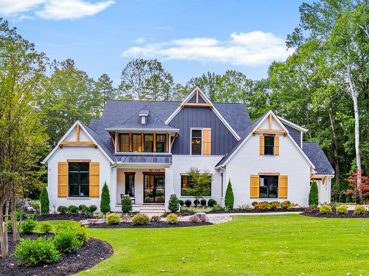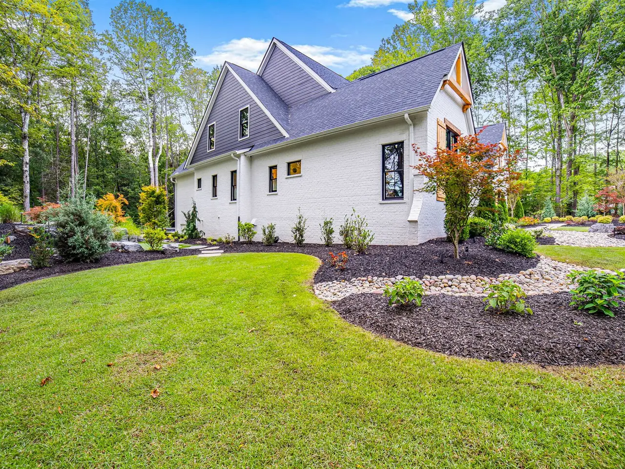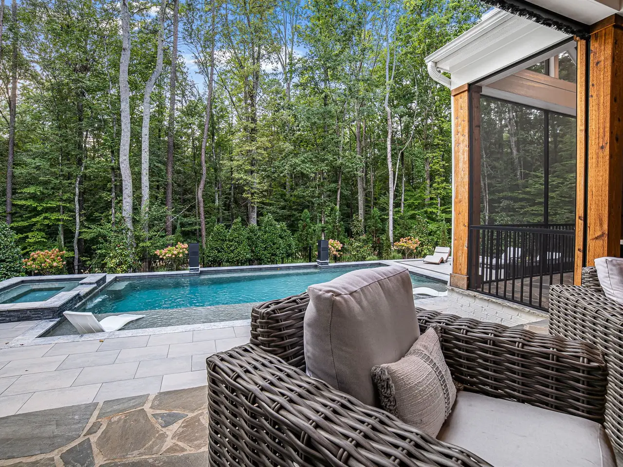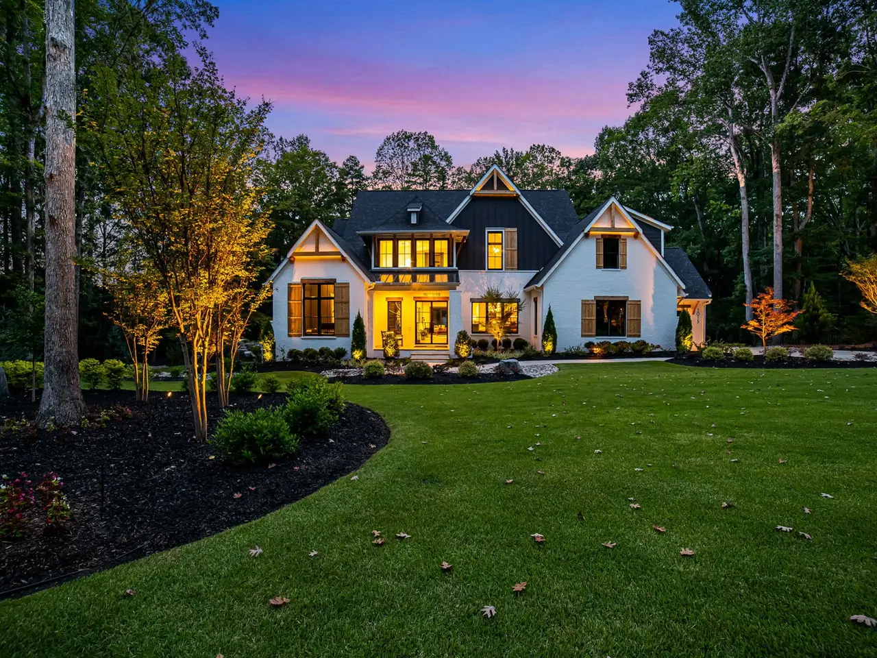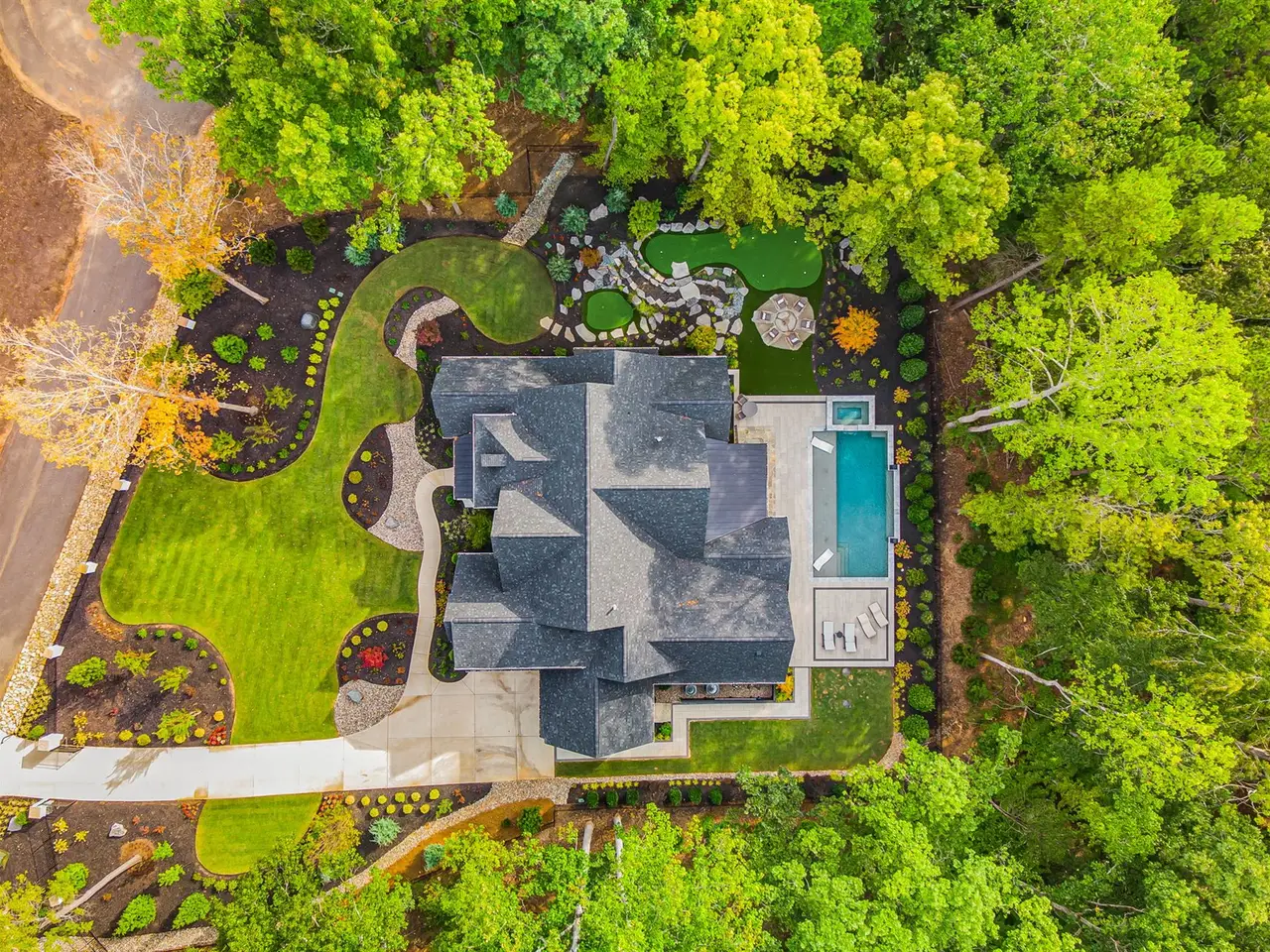 Experience unmatched privacy and modern luxury in this fully custom 2023 estate, perfectly situated on over 3.4 acres in Maple Grove, a boutique six-lot subdivision. From the moment you arrive, the gated entry with brick columns and sweeping front lawn framed by manicured landscaping create a commanding first impression.The home's thoughtful design blends sophistication and comfort with soaring vaulted and beamed ceilings, custom millwork, and designer lighting throughout. The chef's kitchen showcases natural Vancouver Quartzite with a double-edge island, 6-burner range with griddle and hearth oven, pot filler, hidden walk-in pantry and outlets, complemented by a separate scullery with a full second kitchen, Italian handmade backsplash tile, and abundant storage. Pocket doors add privacy to multiple spaces including the library/media room and guest suites.Retreat to the serene primary suite with spa-inspired bath, custom closets, and marble finishes. Additional highlights include glazed Italian porcelain tile baths, custom built-ins, herringbone wood floors, and three Monogram wine/beverage fridges across the bar, library/media room, and outdoor kitchen. Outdoor living takes center stage with a resort-style pool and spa, expansive veranda with retractable screen, fire pit, and an inspired backyard retreat featuring a flowing river stream, tiered putting green, and dramatic landscape lighting. Extensive drainage improvements further enhance the property's functionality and value. Backing to Fisher Farm Park and the Davidson Greenway, this private estate combines natural beauty, luxury finishes, and exceptional craftsmanship in one extraordinary package!