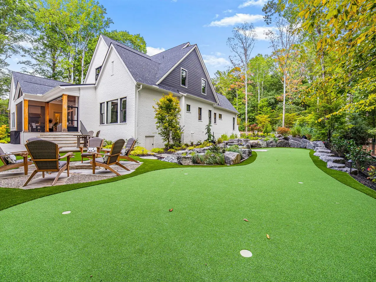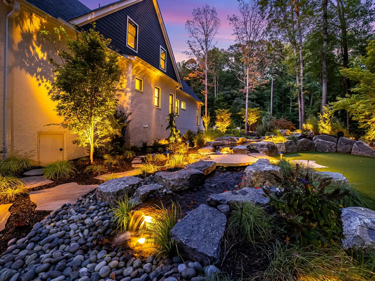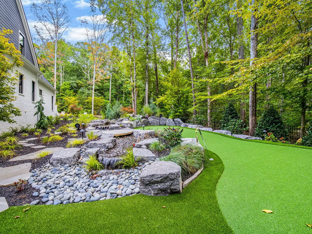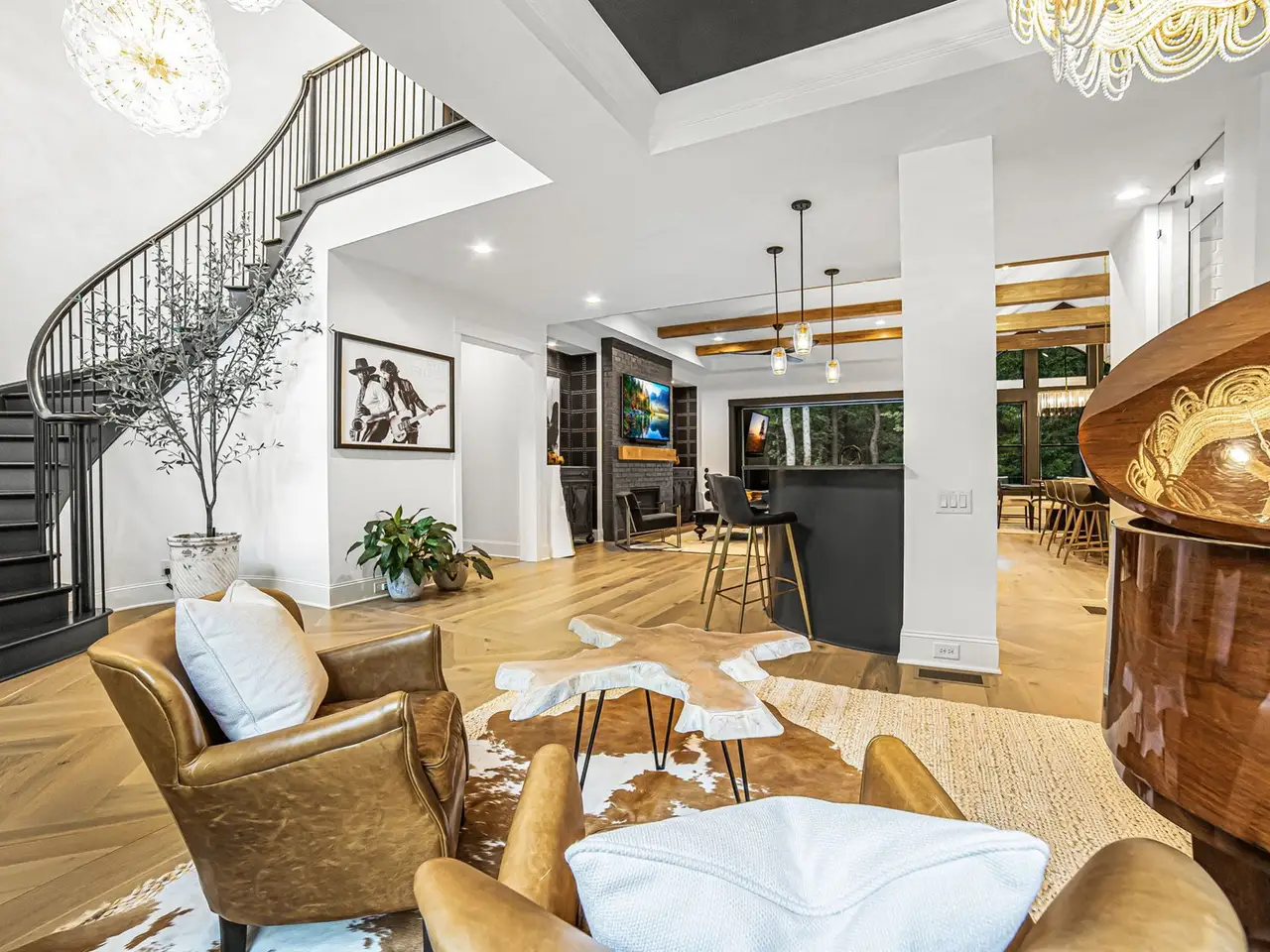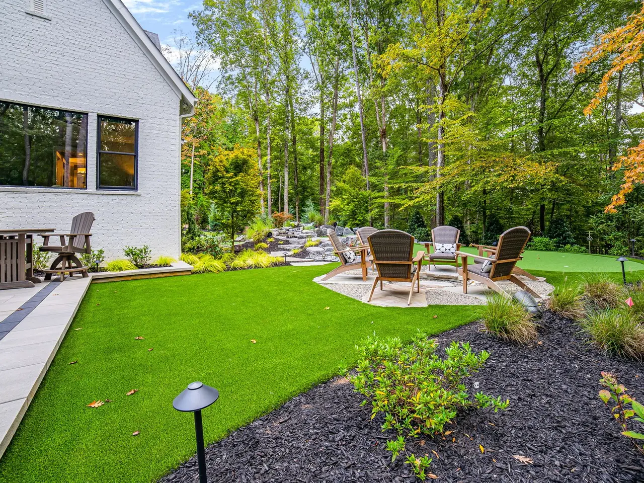 Experience unmatched privacy and modern luxury in this fully custom 2023 estate, perfectly situated on over 3.4 acres in Maple Grove, a boutique six-lot subdivision. From the moment you arrive, the gated entry with brick columns and sweeping front lawn framed by manicured landscaping create a commanding first impression.The home's thoughtful design blends sophistication and comfort with soaring vaulted and beamed ceilings, custom millwork, and designer lighting throughout. The chef's kitchen showcases natural Vancouver Quartzite with a double-edge island, 6-burner range with griddle and hearth oven, pot filler, hidden walk-in pantry and outlets, complemented by a separate scullery with a full second kitchen, Italian handmade backsplash tile, and abundant storage. Pocket doors add privacy to multiple spaces including the library/media room and guest suites.Retreat to the serene primary suite with spa-inspired bath, custom closets, and marble finishes. Additional highlights include glazed Italian porcelain tile baths, custom built-ins, herringbone wood floors, and three Monogram wine/beverage fridges across the bar, library/media room, and outdoor kitchen. Outdoor living takes center stage with a resort-style pool and spa, expansive veranda with retractable screen, fire pit, and an inspired backyard retreat featuring a flowing river stream, tiered putting green, and dramatic landscape lighting. Extensive drainage improvements further enhance the property's functionality and value. Backing to Fisher Farm Park and the Davidson Greenway, this private estate combines natural beauty, luxury finishes, and exceptional craftsmanship in one extraordinary package!