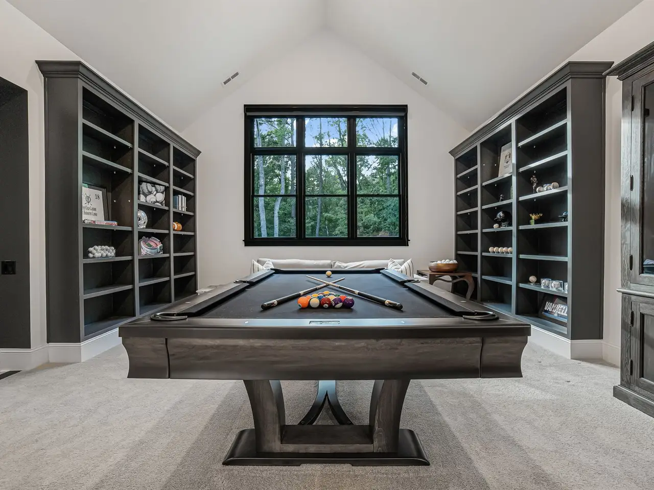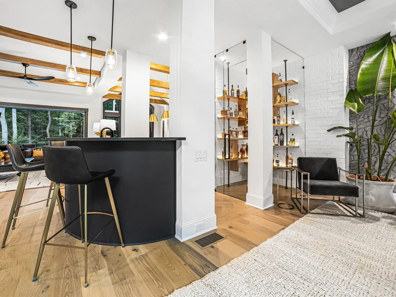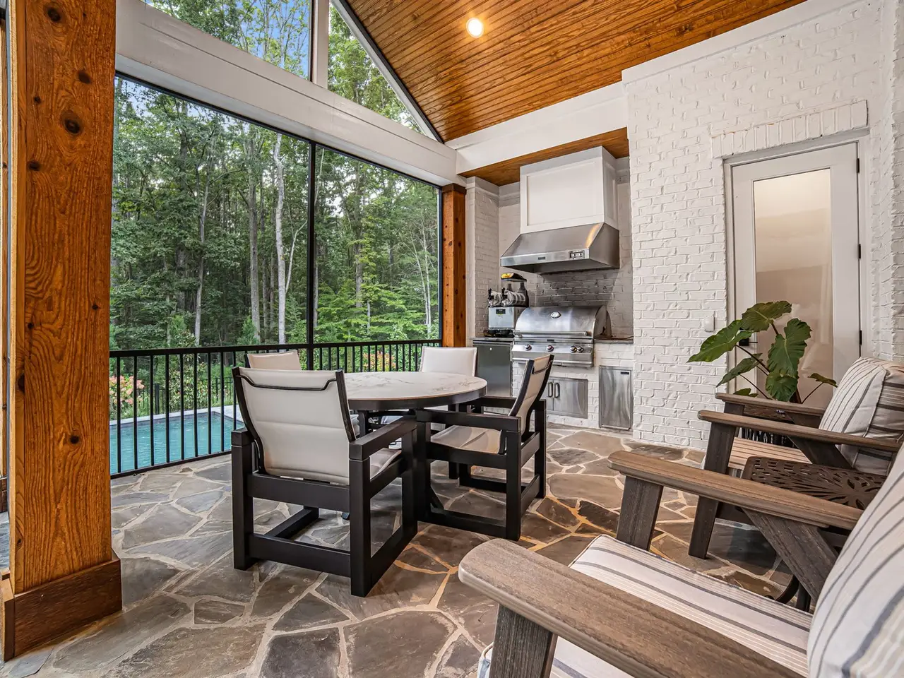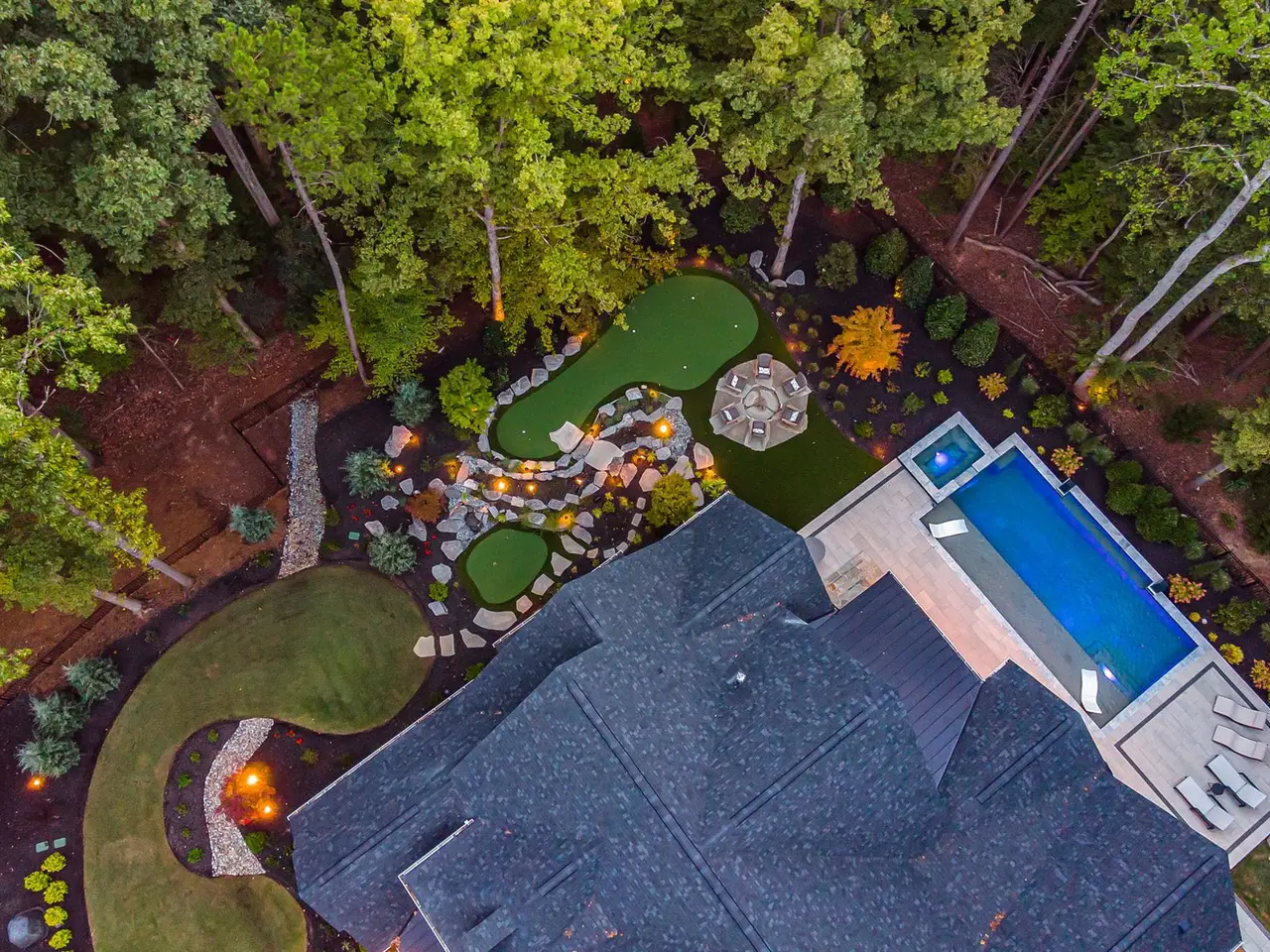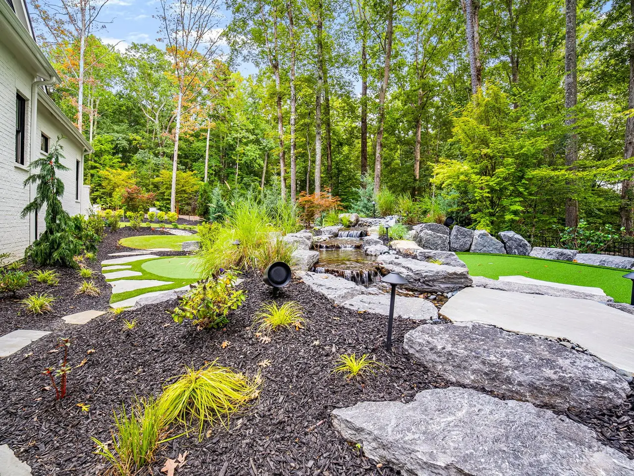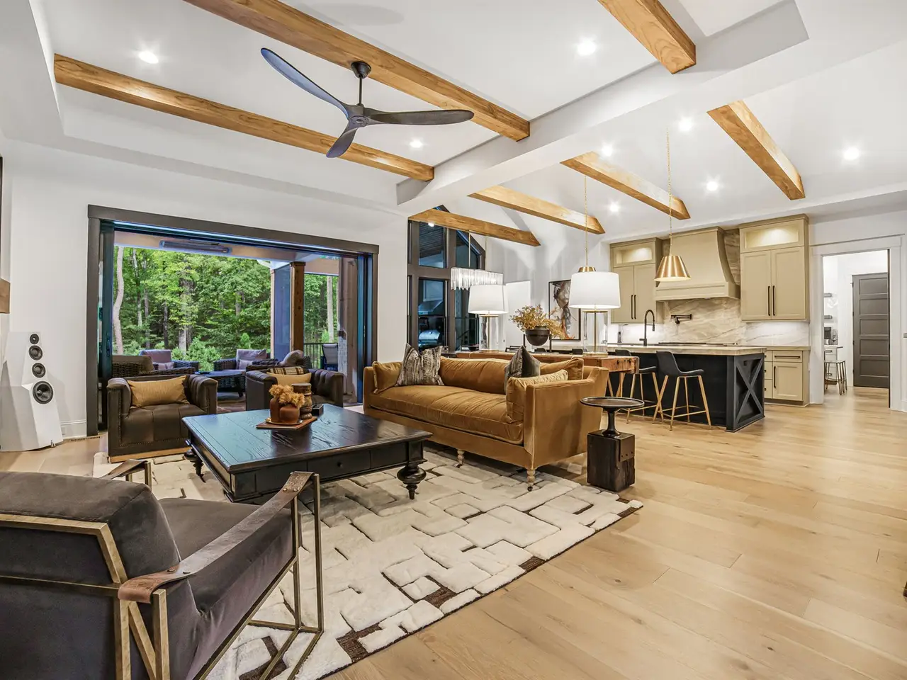Experience unmatched privacy and modern luxury in this fully custom 2023 estate, perfectly situated on over 3.4 acres in Maple Grove, a boutique six-lot subdivision. From the moment you arrive, the gated entry with brick columns and sweeping front lawn framed by manicured landscaping create a commanding first impression.The home's thoughtful design blends sophistication and comfort with soaring vaulted and beamed ceilings, custom millwork, and designer lighting throughout. The chef's kitchen showcases natural Vancouver Quartzite with a double-edge island, 6-burner range with griddle and hearth oven, pot filler, hidden walk-in pantry and outlets, complemented by a separate scullery with a full second kitchen, Italian handmade backsplash tile, and abundant storage. Pocket doors add privacy to multiple spaces including the library/media room and guest suites.Retreat to the serene primary suite with spa-inspired bath, custom closets, and marble finishes. Additional highlights include glazed Italian porcelain tile baths, custom built-ins, herringbone wood floors, and three Monogram wine/beverage fridges across the bar, library/media room, and outdoor kitchen. Outdoor living takes center stage with a resort-style pool and spa, expansive veranda with retractable screen, fire pit, and an inspired backyard retreat featuring a flowing river stream, tiered putting green, and dramatic landscape lighting. Extensive drainage improvements further enhance the property's functionality and value. Backing to Fisher Farm Park and the Davidson Greenway, this private estate combines natural beauty, luxury finishes, and exceptional craftsmanship in one extraordinary package!