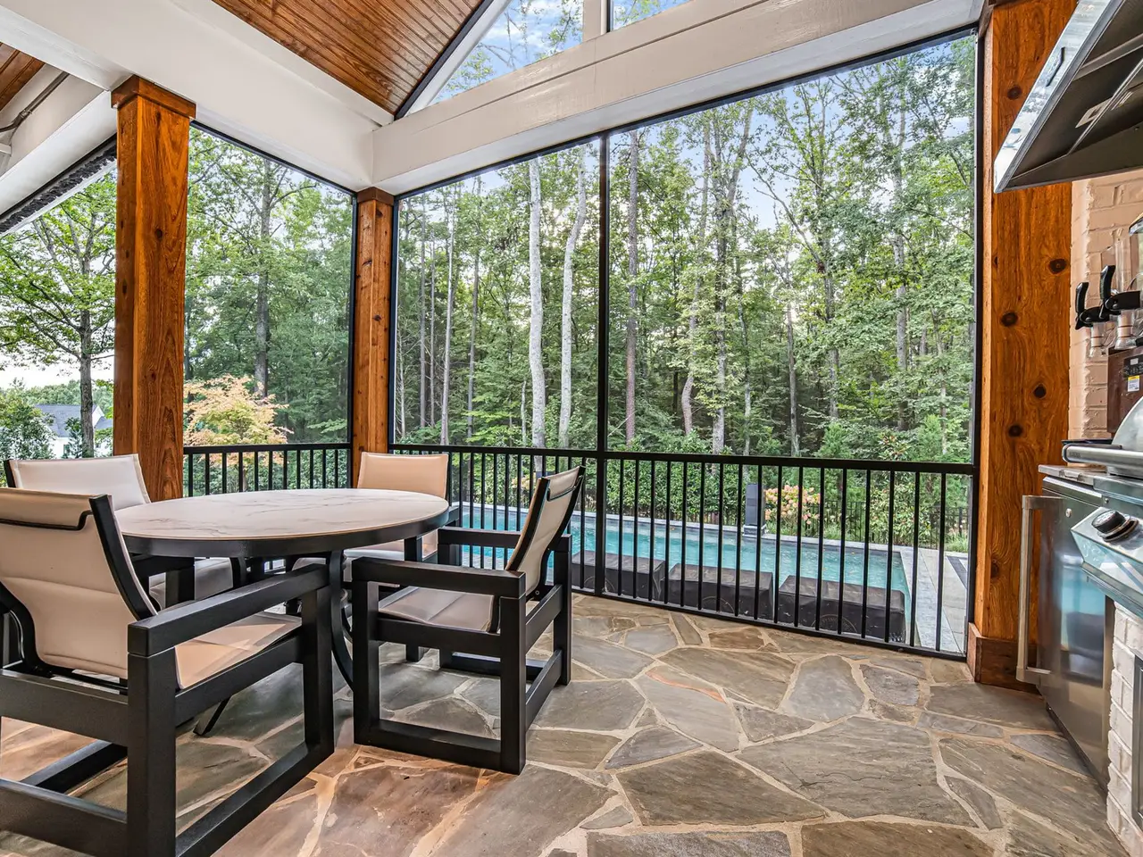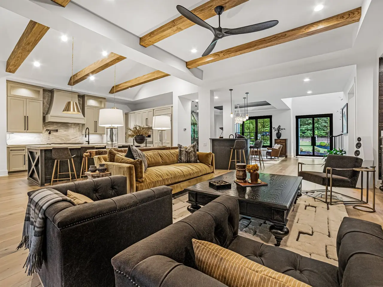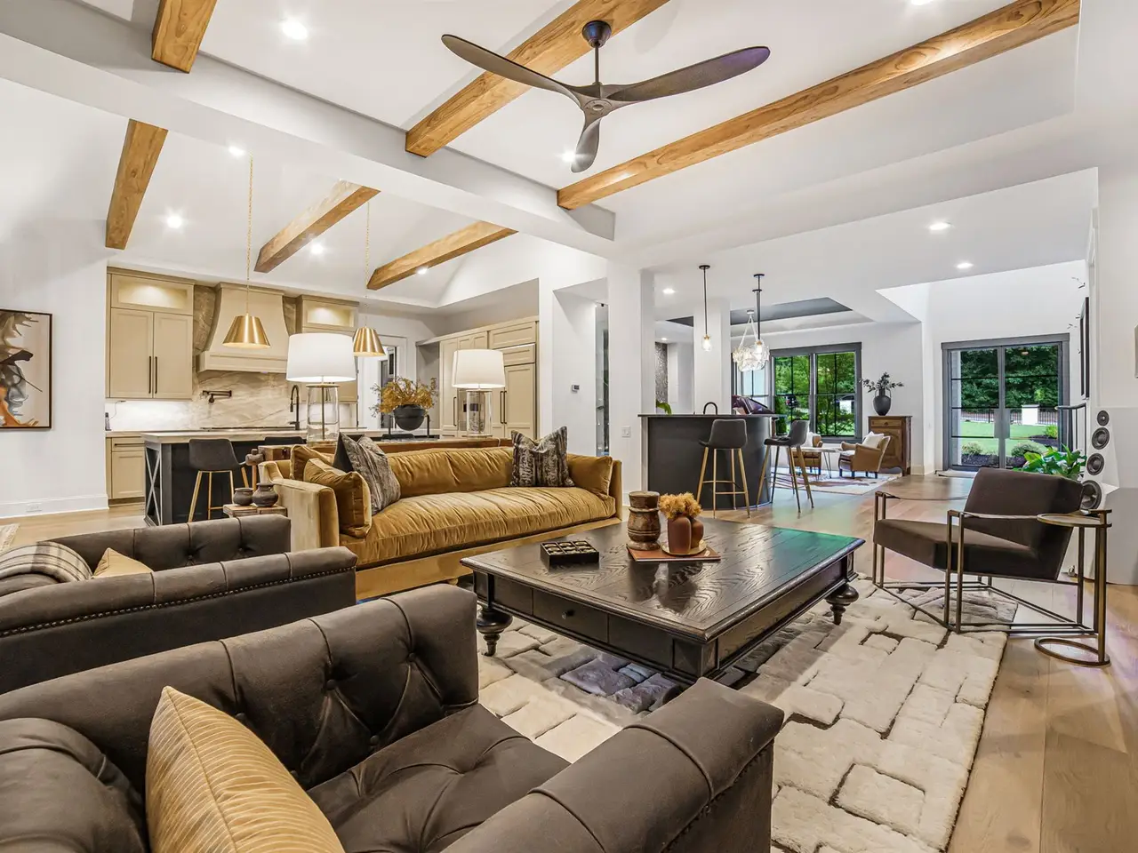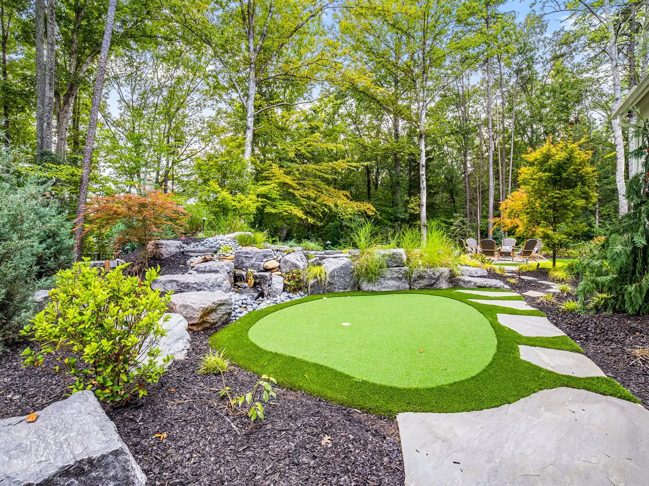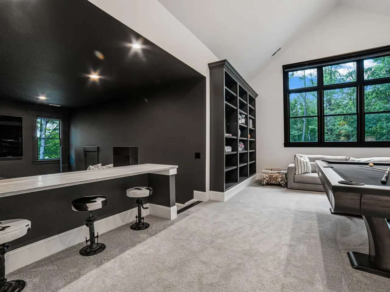 Experience unmatched privacy and modern luxury in this fully custom 2023 estate, perfectly situated on over 3.4 acres in Maple Grove, a boutique six-lot subdivision. From the moment you arrive, the gated entry with brick columns and sweeping front lawn framed by manicured landscaping create a commanding first impression.The home's thoughtful design blends sophistication and comfort with soaring vaulted and beamed ceilings, custom millwork, and designer lighting throughout. The chef's kitchen showcases natural Vancouver Quartzite with a double-edge island, 6-burner range with griddle and hearth oven, pot filler, hidden walk-in pantry and outlets, complemented by a separate scullery with a full second kitchen, Italian handmade backsplash tile, and abundant storage. Pocket doors add privacy to multiple spaces including the library/media room and guest suites.Retreat to the serene primary suite with spa-inspired bath, custom closets, and marble finishes. Additional highlights include glazed Italian porcelain tile baths, custom built-ins, herringbone wood floors, and three Monogram wine/beverage fridges across the bar, library/media room, and outdoor kitchen. Outdoor living takes center stage with a resort-style pool and spa, expansive veranda with retractable screen, fire pit, and an inspired backyard retreat featuring a flowing river stream, tiered putting green, and dramatic landscape lighting. Extensive drainage improvements further enhance the property's functionality and value. Backing to Fisher Farm Park and the Davidson Greenway, this private estate combines natural beauty, luxury finishes, and exceptional craftsmanship in one extraordinary package!