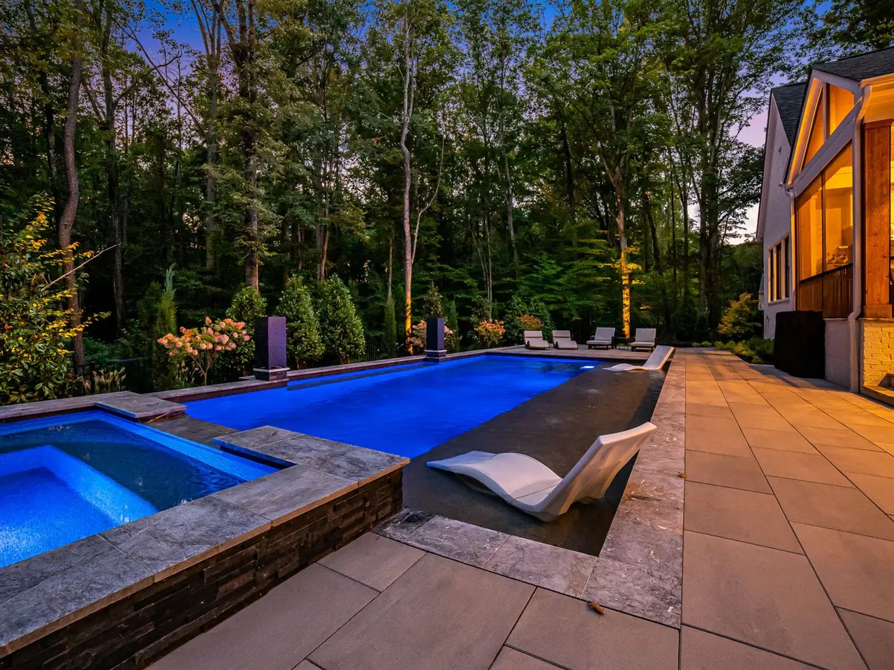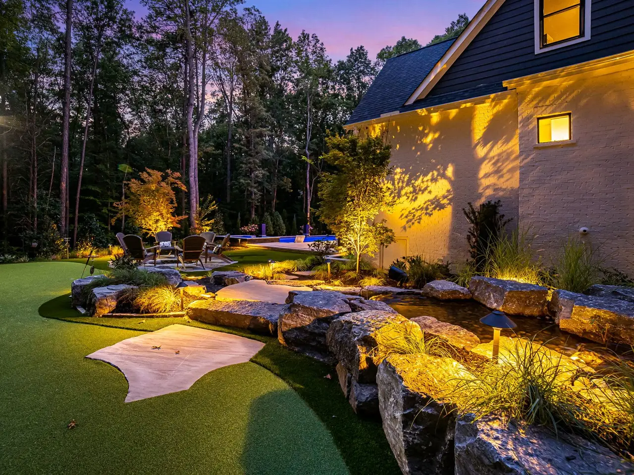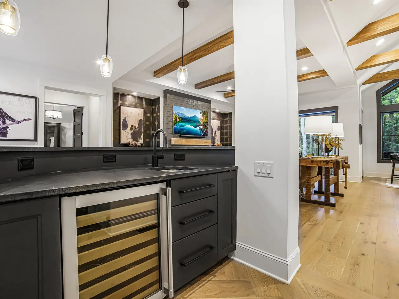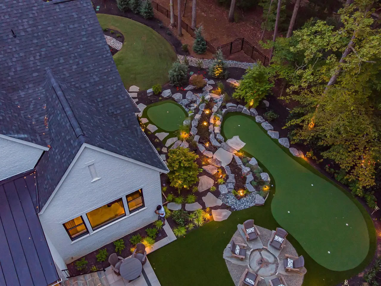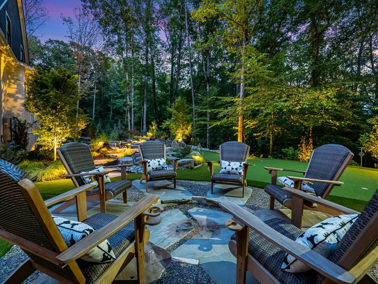 Experience unmatched privacy and modern luxury in this fully custom 2023 estate, perfectly situated on over 3.4 acres in Maple Grove, a boutique six-lot subdivision. From the moment you arrive, the gated entry with brick columns and sweeping front lawn framed by manicured landscaping create a commanding first impression.The home's thoughtful design blends sophistication and comfort with soaring vaulted and beamed ceilings, custom millwork, and designer lighting throughout. The chef's kitchen showcases natural Vancouver Quartzite with a double-edge island, 6-burner range with griddle and hearth oven, pot filler, hidden walk-in pantry and outlets, complemented by a separate scullery with a full second kitchen, Italian handmade backsplash tile, and abundant storage. Pocket doors add privacy to multiple spaces including the library/media room and guest suites.Retreat to the serene primary suite with spa-inspired bath, custom closets, and marble finishes. Additional highlights include glazed Italian porcelain tile baths, custom built-ins, herringbone wood floors, and three Monogram wine/beverage fridges across the bar, library/media room, and outdoor kitchen. Outdoor living takes center stage with a resort-style pool and spa, expansive veranda with retractable screen, fire pit, and an inspired backyard retreat featuring a flowing river stream, tiered putting green, and dramatic landscape lighting. Extensive drainage improvements further enhance the property's functionality and value. Backing to Fisher Farm Park and the Davidson Greenway, this private estate combines natural beauty, luxury finishes, and exceptional craftsmanship in one extraordinary package!