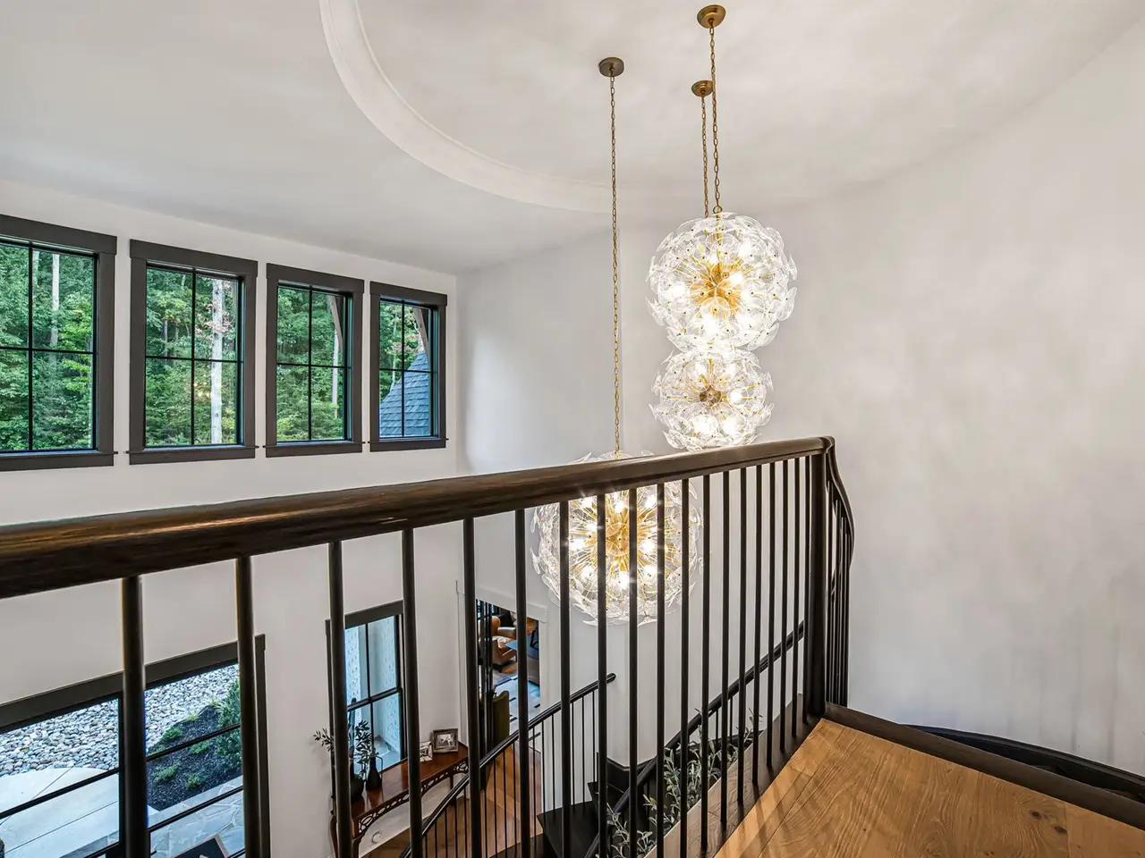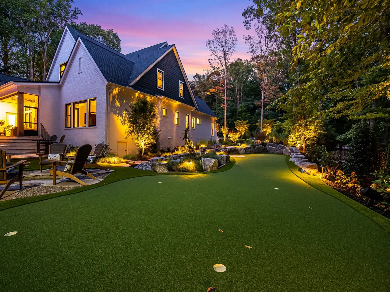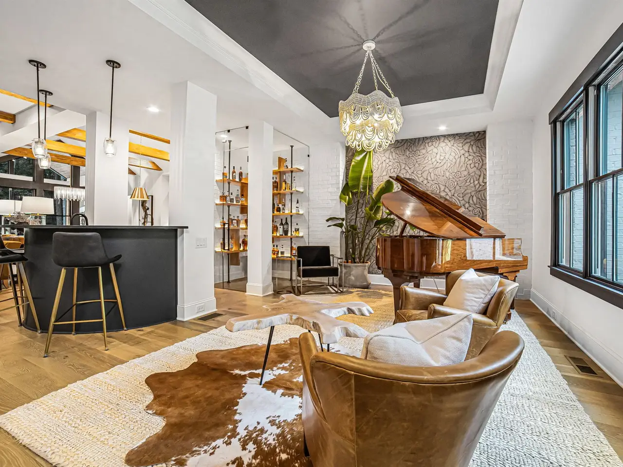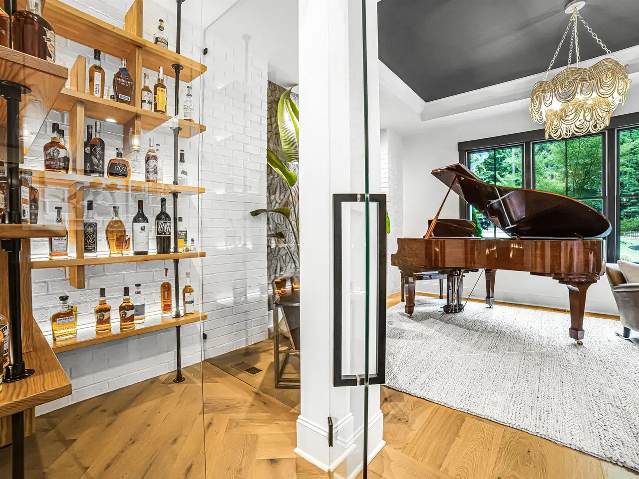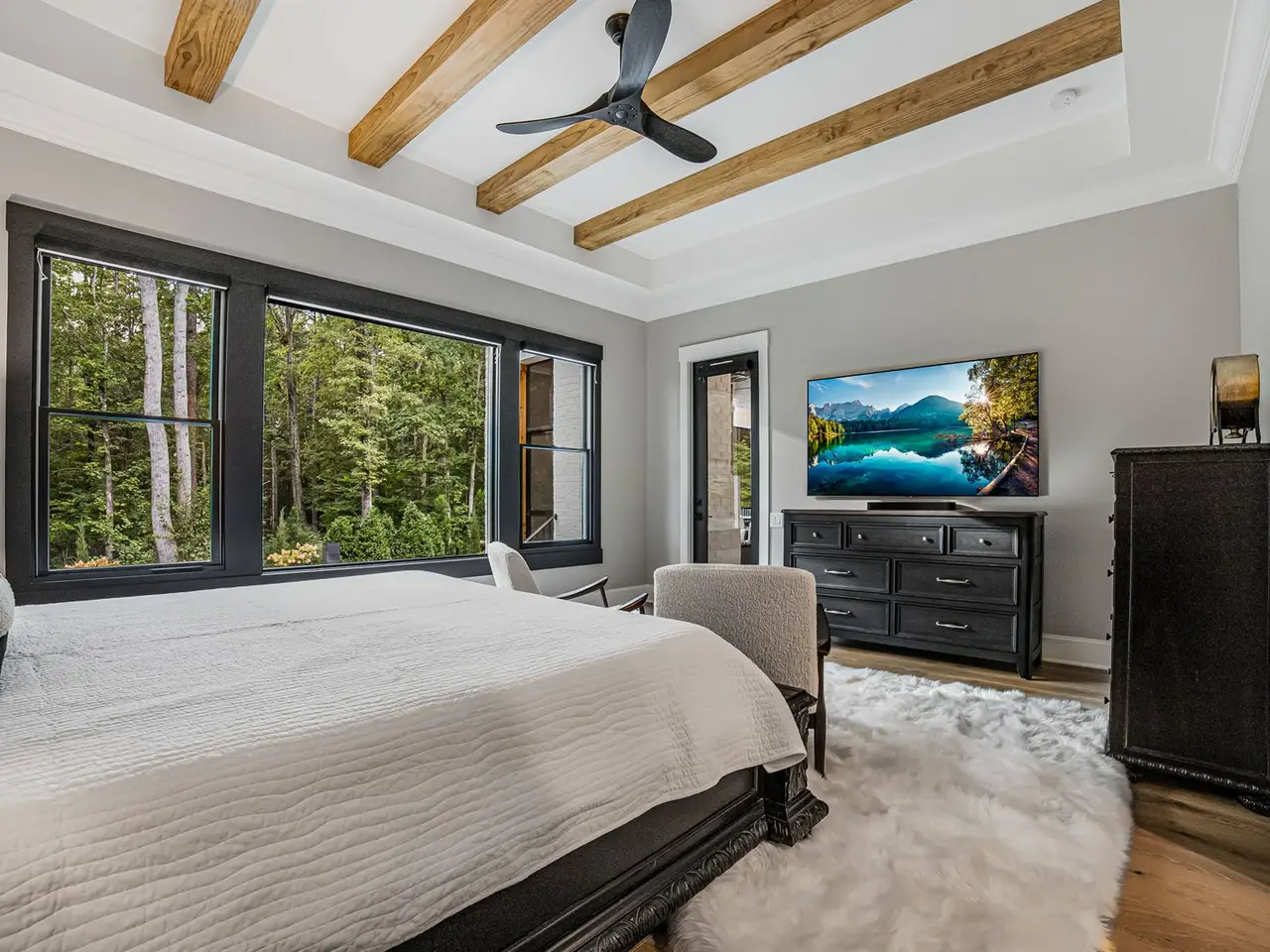 Experience unmatched privacy and modern luxury in this fully custom 2023 estate, perfectly situated on over 3.4 acres in Maple Grove, a boutique six-lot subdivision. From the moment you arrive, the gated entry with brick columns and sweeping front lawn framed by manicured landscaping create a commanding first impression.The home's thoughtful design blends sophistication and comfort with soaring vaulted and beamed ceilings, custom millwork, and designer lighting throughout. The chef's kitchen showcases natural Vancouver Quartzite with a double-edge island, 6-burner range with griddle and hearth oven, pot filler, hidden walk-in pantry and outlets, complemented by a separate scullery with a full second kitchen, Italian handmade backsplash tile, and abundant storage. Pocket doors add privacy to multiple spaces including the library/media room and guest suites.Retreat to the serene primary suite with spa-inspired bath, custom closets, and marble finishes. Additional highlights include glazed Italian porcelain tile baths, custom built-ins, herringbone wood floors, and three Monogram wine/beverage fridges across the bar, library/media room, and outdoor kitchen. Outdoor living takes center stage with a resort-style pool and spa, expansive veranda with retractable screen, fire pit, and an inspired backyard retreat featuring a flowing river stream, tiered putting green, and dramatic landscape lighting. Extensive drainage improvements further enhance the property's functionality and value. Backing to Fisher Farm Park and the Davidson Greenway, this private estate combines natural beauty, luxury finishes, and exceptional craftsmanship in one extraordinary package!