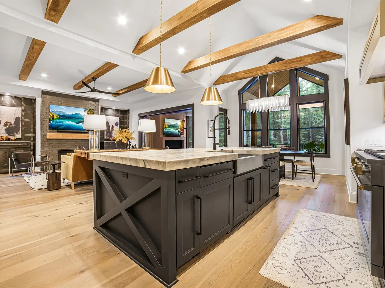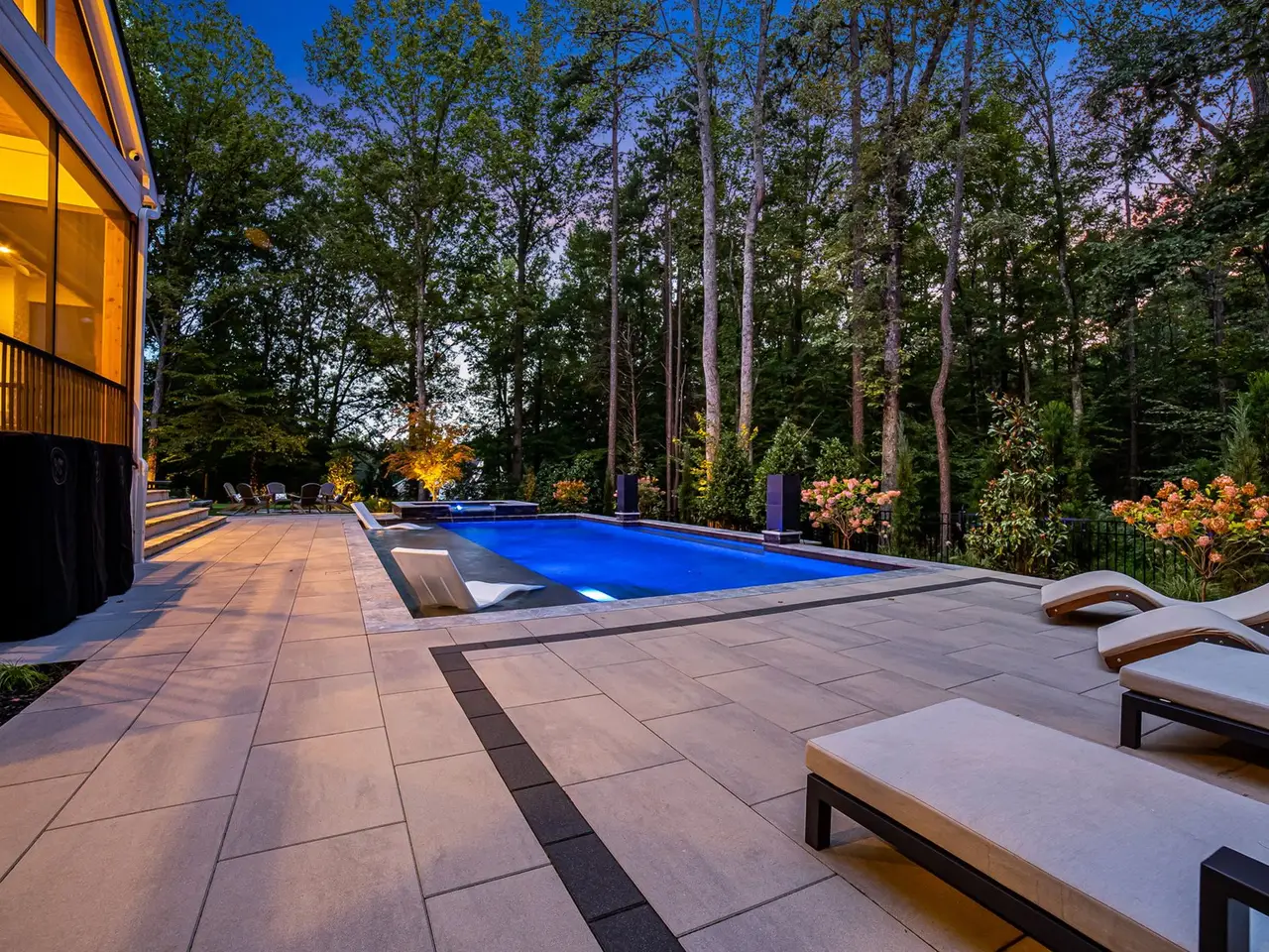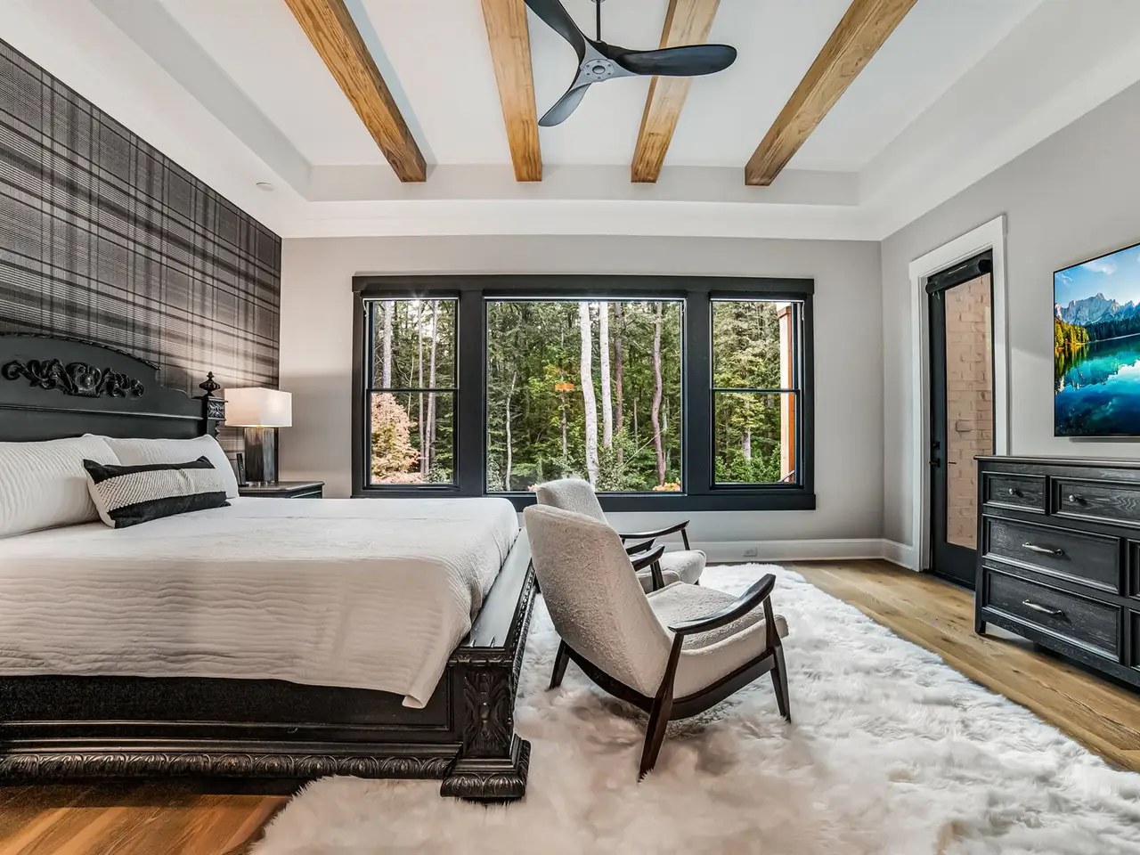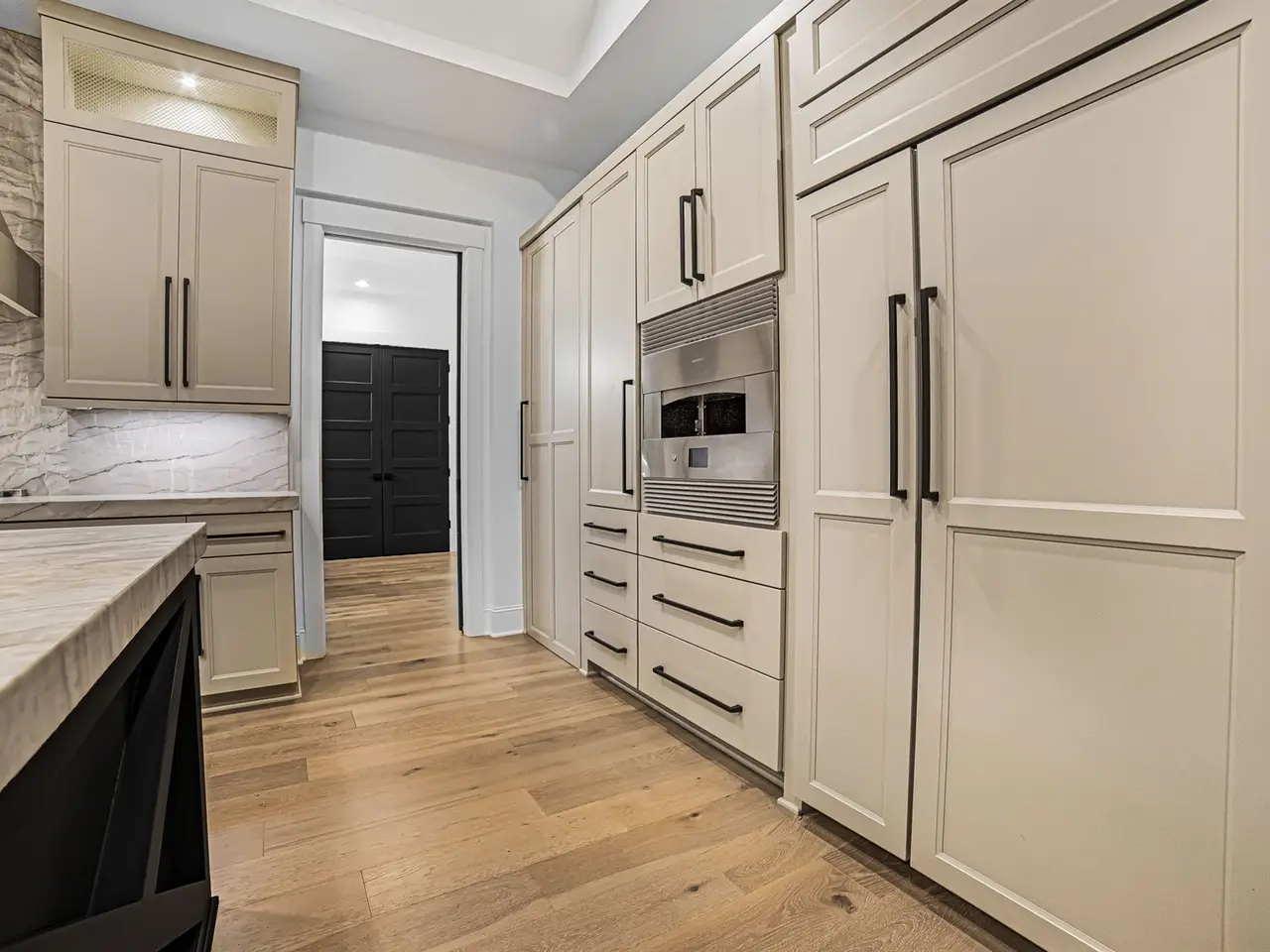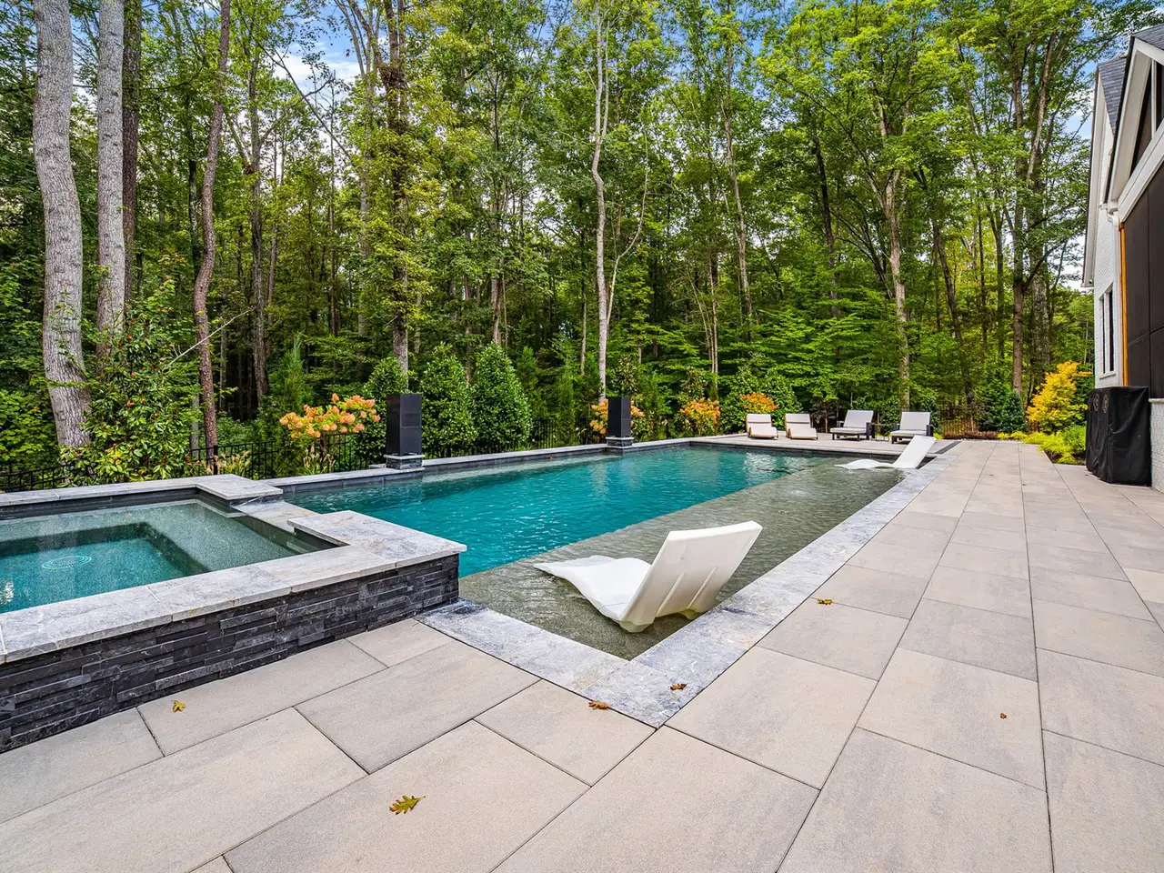 Experience unmatched privacy and modern luxury in this fully custom 2023 estate, perfectly situated on over 3.4 acres in Maple Grove, a boutique six-lot subdivision. From the moment you arrive, the gated entry with brick columns and sweeping front lawn framed by manicured landscaping create a commanding first impression.The home's thoughtful design blends sophistication and comfort with soaring vaulted and beamed ceilings, custom millwork, and designer lighting throughout. The chef's kitchen showcases natural Vancouver Quartzite with a double-edge island, 6-burner range with griddle and hearth oven, pot filler, hidden walk-in pantry and outlets, complemented by a separate scullery with a full second kitchen, Italian handmade backsplash tile, and abundant storage. Pocket doors add privacy to multiple spaces including the library/media room and guest suites.Retreat to the serene primary suite with spa-inspired bath, custom closets, and marble finishes. Additional highlights include glazed Italian porcelain tile baths, custom built-ins, herringbone wood floors, and three Monogram wine/beverage fridges across the bar, library/media room, and outdoor kitchen. Outdoor living takes center stage with a resort-style pool and spa, expansive veranda with retractable screen, fire pit, and an inspired backyard retreat featuring a flowing river stream, tiered putting green, and dramatic landscape lighting. Extensive drainage improvements further enhance the property's functionality and value. Backing to Fisher Farm Park and the Davidson Greenway, this private estate combines natural beauty, luxury finishes, and exceptional craftsmanship in one extraordinary package!