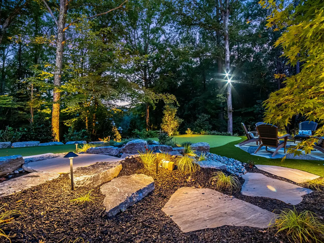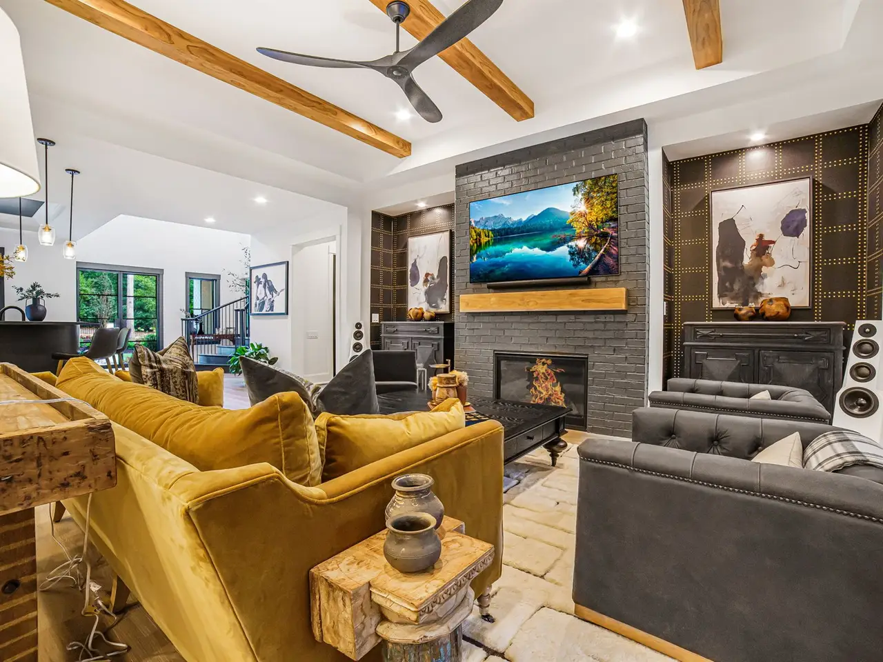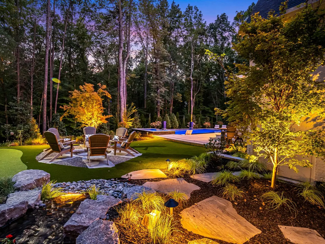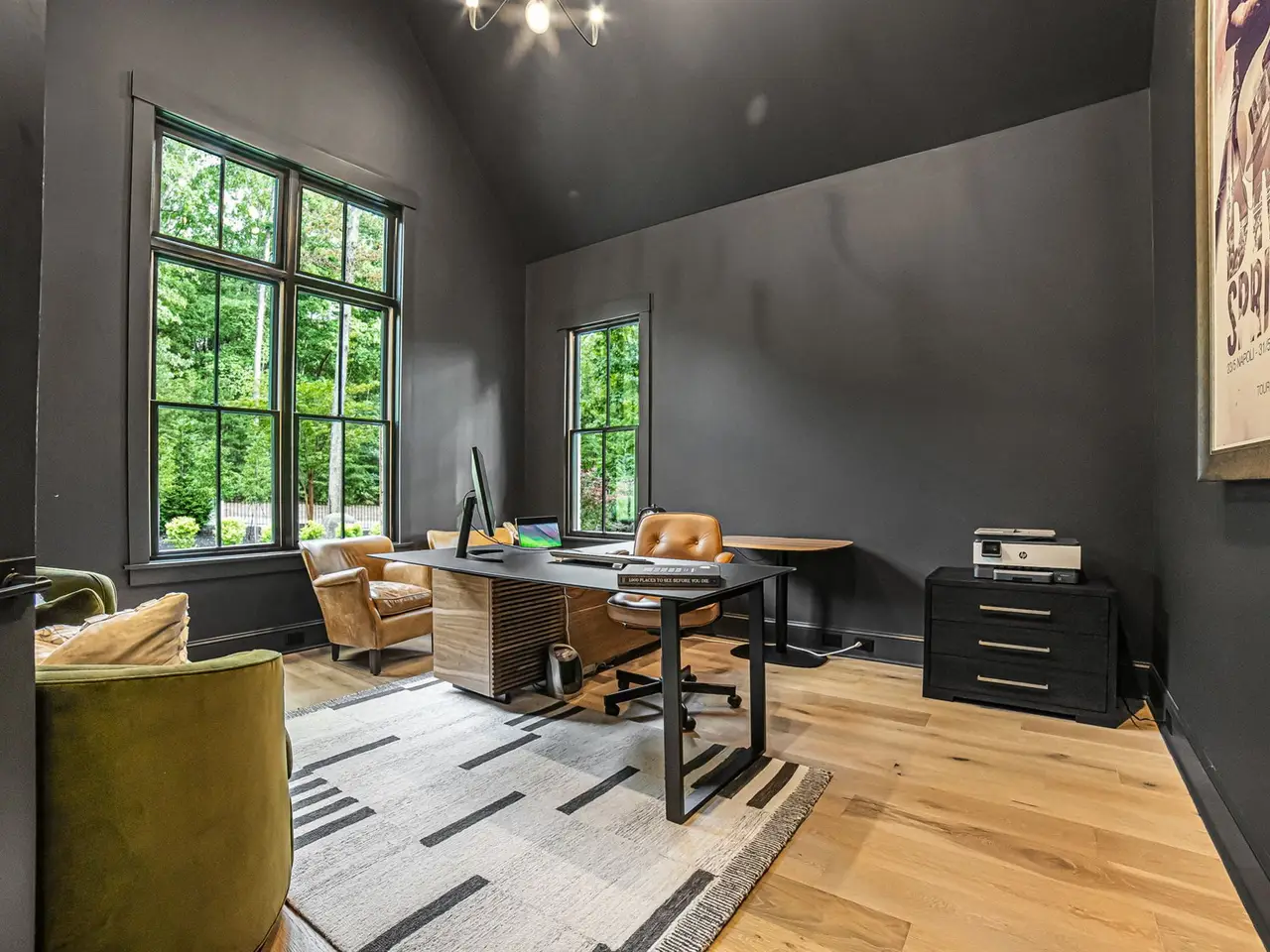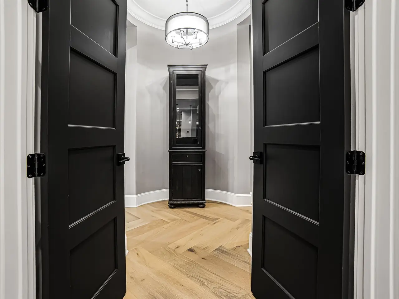 Experience unmatched privacy and modern luxury in this fully custom 2023 estate, perfectly situated on over 3.4 acres in Maple Grove, a boutique six-lot subdivision. From the moment you arrive, the gated entry with brick columns and sweeping front lawn framed by manicured landscaping create a commanding first impression.The home's thoughtful design blends sophistication and comfort with soaring vaulted and beamed ceilings, custom millwork, and designer lighting throughout. The chef's kitchen showcases natural Vancouver Quartzite with a double-edge island, 6-burner range with griddle and hearth oven, pot filler, hidden walk-in pantry and outlets, complemented by a separate scullery with a full second kitchen, Italian handmade backsplash tile, and abundant storage. Pocket doors add privacy to multiple spaces including the library/media room and guest suites.Retreat to the serene primary suite with spa-inspired bath, custom closets, and marble finishes. Additional highlights include glazed Italian porcelain tile baths, custom built-ins, herringbone wood floors, and three Monogram wine/beverage fridges across the bar, library/media room, and outdoor kitchen. Outdoor living takes center stage with a resort-style pool and spa, expansive veranda with retractable screen, fire pit, and an inspired backyard retreat featuring a flowing river stream, tiered putting green, and dramatic landscape lighting. Extensive drainage improvements further enhance the property's functionality and value. Backing to Fisher Farm Park and the Davidson Greenway, this private estate combines natural beauty, luxury finishes, and exceptional craftsmanship in one extraordinary package!