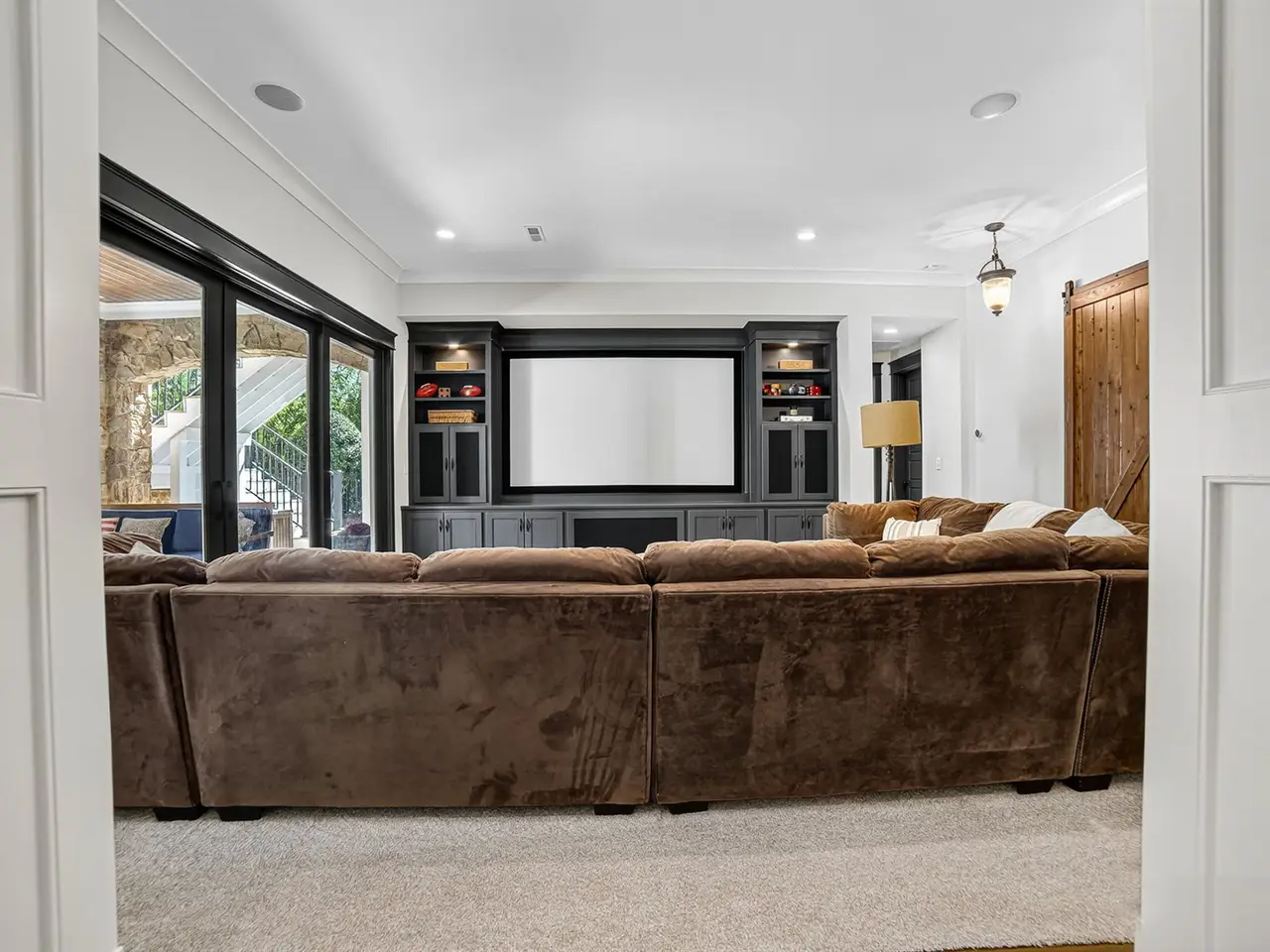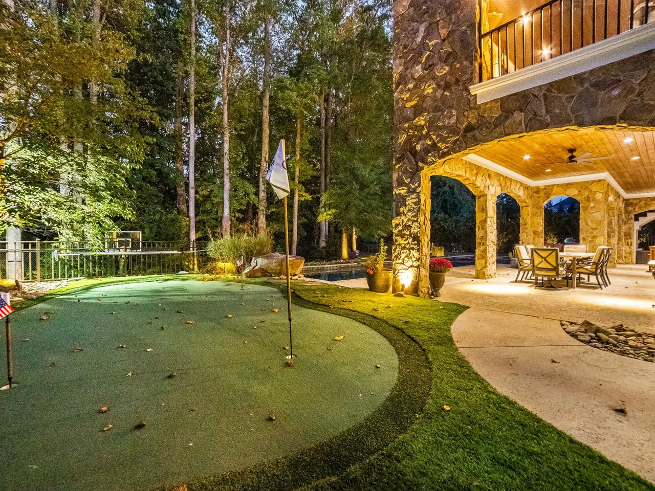 Resort-Style Luxury Estate Backing to Protected Greenspace Discover a rare blend of timeless craftsmanship and modern luxury in this cedar shake and stone estate. Designed for both everyday living and unforgettable entertaining, the home offers a true resort lifestyle. Outdoors, enjoy multiple living spaces screened porch, balcony, patios, and a spectacular pool with diving rock, spa hot tub, and dedicated pool bath. Entertain with a full outdoor kitchen, gas-start fireplace, fire pit, half-court basketball, turf putting green, and grassy play yard.Inside, soaring ceilings, elegant moldings, hardwoods, and smart-home features set the stage. The chef's kitchen shines with dual islands, Thermador appliances, walk-in pantry, and breakfast nook. The coffered-ceiling living room, keeping room, and screened porch make gatherings seamless.The main-level owner's suite is a retreat with vaulted ceilings, fireplace, porch access, and spa-inspired bath featuring heated marble floors, freestanding tub, oversized shower, and custom closets. Upstairs offers a study loft, three bedrooms with ensuite/shared baths, and unique bonus spaces.The finished lower level boasts a wine cellar, custom bar, 120-inch home theater, office, exercise room, and guest suite with pool access.This extraordinary estate delivers luxury, recreation, and nature right at home.