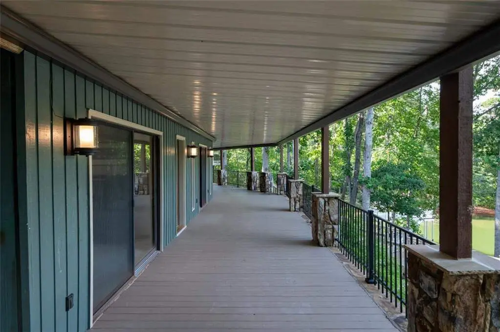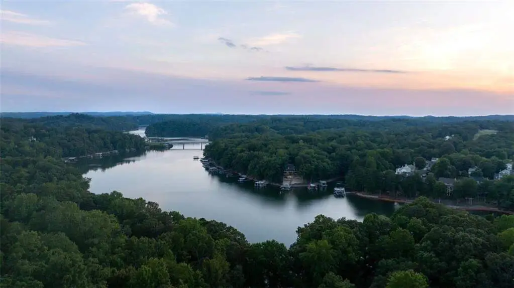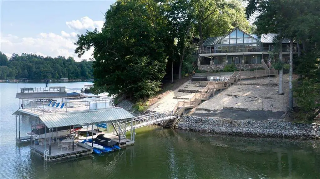 Imagine waking up to panoramic 180 views of Lake Lanier, where the sunrise paints the sky and the water stretches endlessly beyond your back door. Perfectly positioned on a private point lot, this rare property delivers the best of resort-style living without restrictions or dues. Just a short stroll from the award-winning Chestatee Golf Course and Restaurant, it's where lake life and luxury living truly meet. Few homes on Lake Lanier can match what this one offers! Year round deep water, breathtaking sunrise vistas, and The Army Corps of Engineers line that runs all the way into the lake, unlocking endless opportunities for your dream backyard oasis. Picture an infinity edge pool spilling toward the shoreline, a terraced garden, or an outdoor entertaining space like no other. Here, imagination becomes reality. Follow the professionally landscaped, stepped path to your private 32x32 double-slip dock with a party deck, complete with an 8,000-lb boat lift and new jet ski ports. Whether you're hosting friends or going for a quiet paddle at sunrise, every day is a lake day. Designed with both relaxation and entertaining in mind, the home offers two expansive Trex decks, a new hot tub with automatic cover, and an oversized flagstone patio ideal for fireside evenings under the stars. The entire back of the house is framed in sliding glass doors, creating a seamless flow between indoor comfort and outdoor living. Inside, light filled spaces open to sweeping lake views from nearly every room. The main level primary suite is a warm, inviting retreat with wide plank pine floors, while the chef's kitchen features a gas range, double ovens, and granite countertops. Upstairs, a spacious loft adds flexibility for a bunk room, office, or epic game room. On the terrace level, you'll find three bedrooms, including a private suite with its own fireplace, plus an additional living room and an incredibly designed bathroom that elevates guest comfort. This level was created with gathering in mind.