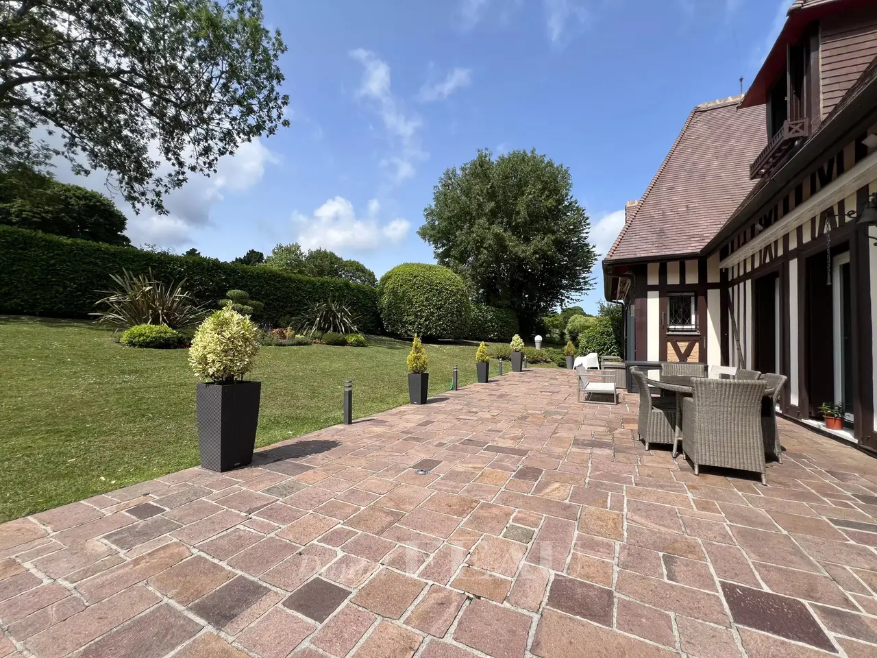 This superb property bathed in sunshine throughout the day is located in Deauville’s peaceful and keenly sought-after residential New Golf neighbourhood. Set in a magnificent 2800 sqm landscaped garden benefiting from direct access to the golf course, it offers about 390 sqm of floor space and 265 sqm of living space as defined by the Carrez Law including a near 100 sqm living/reception room with a fireplace accessing a fully south-facing terrace, a separate kitchen, a utility room, and five bedrooms each with a bath or shower room. With three garages. Information regarding the environment is available on http://www.georisques.gouv.fr In accordance with the Tracfin Law, proof of identity shall be required for visits.