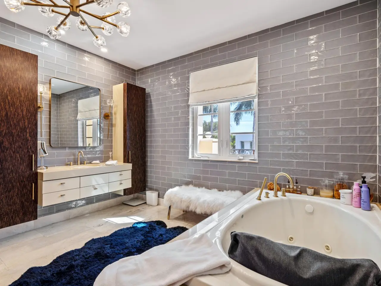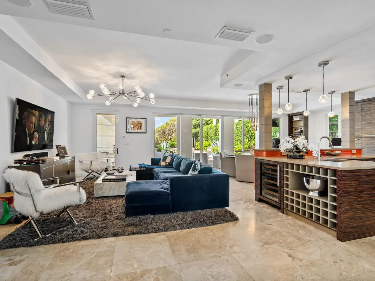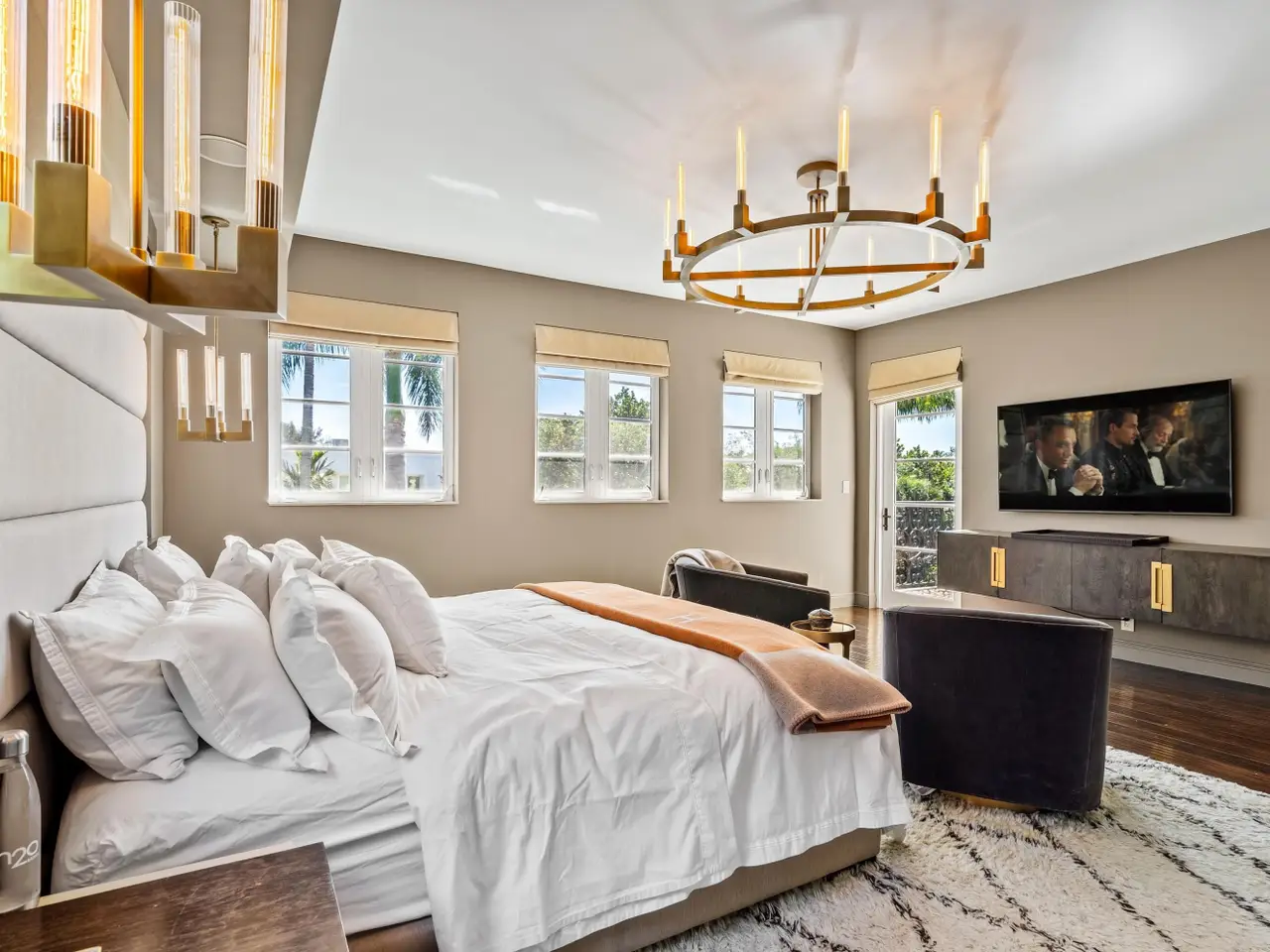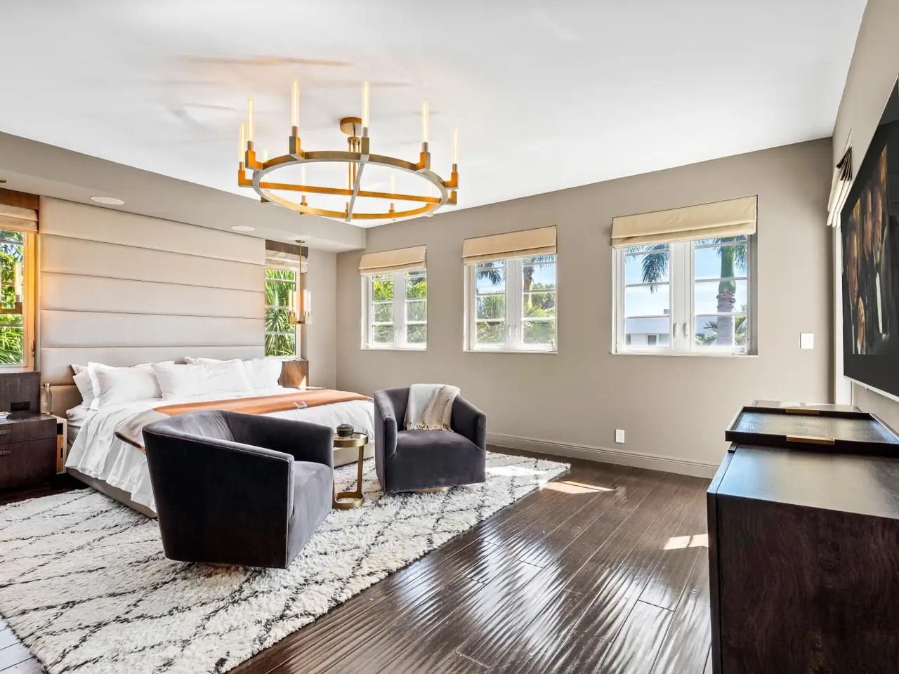 Palm Trail, Delray Beach, Florida. On tree-lined Palm Trail, across from the Intracoastal Waterway's shore, this is one of just six courtyard townhomes in an exclusive enclave offering resort-style living close to the beach, minutes from famous Atlantic Avenue's bistros and boutiques. Going beyond every expectation, this luxury townhome is an exquisite showplace by Leighton Design Group. Casual elegance is expressed with sophisticated modern ease in select finishes and bespoke elements that come together in a calm neutral palette with a textural look and touches of subtle glamour. Creating an estate-like environment in the Mediterranean-inspired architectural design, this light-filled end-position townhome opens to loggias around the private, tropically landscaped courtyard.