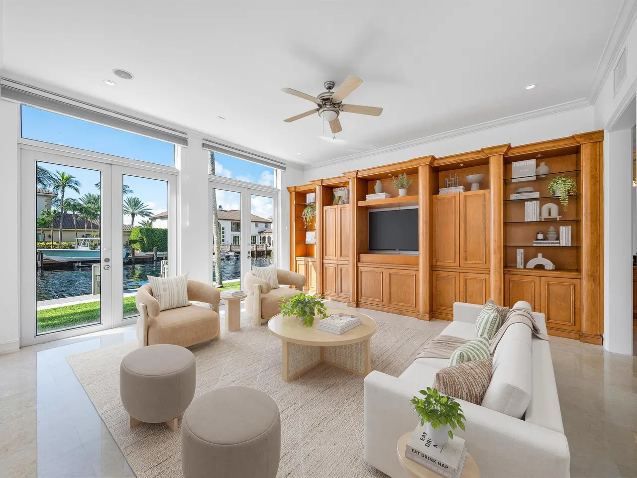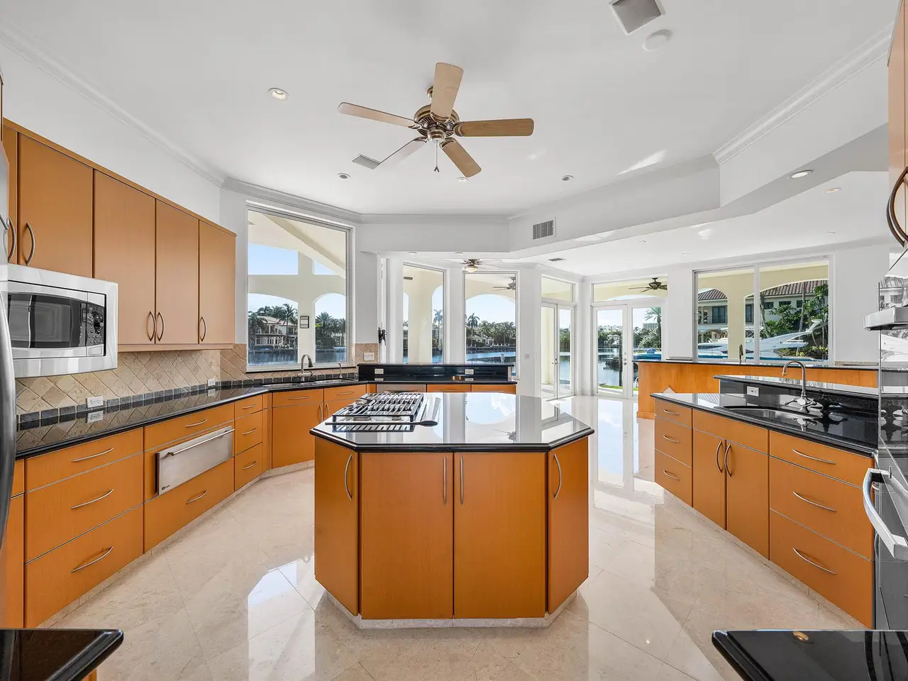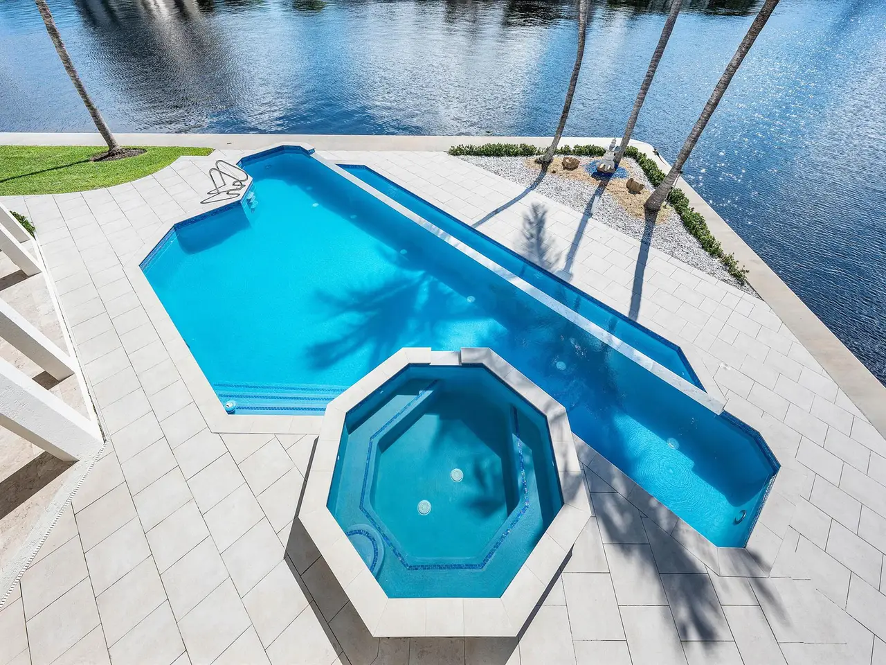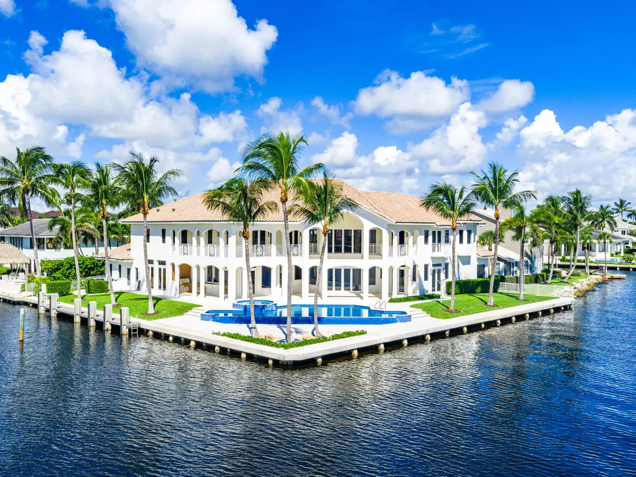 Exceptional Waterfront Estate | Intracoastal Point Lot. This extraordinary residence offers over 7, 300 ft under air plus an additional 2, 000 ft of covered outdoor living space and balconies, creating the perfect blend of indoor-outdoor living. Featuring 5 bedrooms and 9 baths, this estate is thoughtfully designed for both elegance and comfort, with two primary suites, one on each floor. Situated on a coveted point lot in Delray Beach Florida, the home enjoys 126 ft of direct Intracoastal frontage and 125 ft of canal frontage, with direct ocean access and no fixed bridges. A 50 ft dock with electric service and a 100 ft canal width allow for effortless yacht maneuvering and docking. From the moment you enter, you're captivated by panoramic water views from every room. The home's construction is truly unmatched and built with metal studs and a concrete lay-in second floor, providing superior strength, durability, and soundproofing far beyond traditional block construction. Additional highlights include soaring high ceilings throughout, a full-house generator, a temperature-controlled walk-in wine cellar, a 5 zone AC system, and impact rated doors and glass. Designed for the discerning buyer, this residence combines architectural integrity, exceptional quality, and one of the most desirable water exposures - southeast facing Intracoastal.