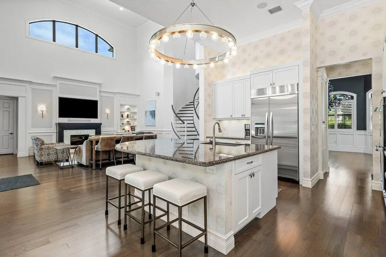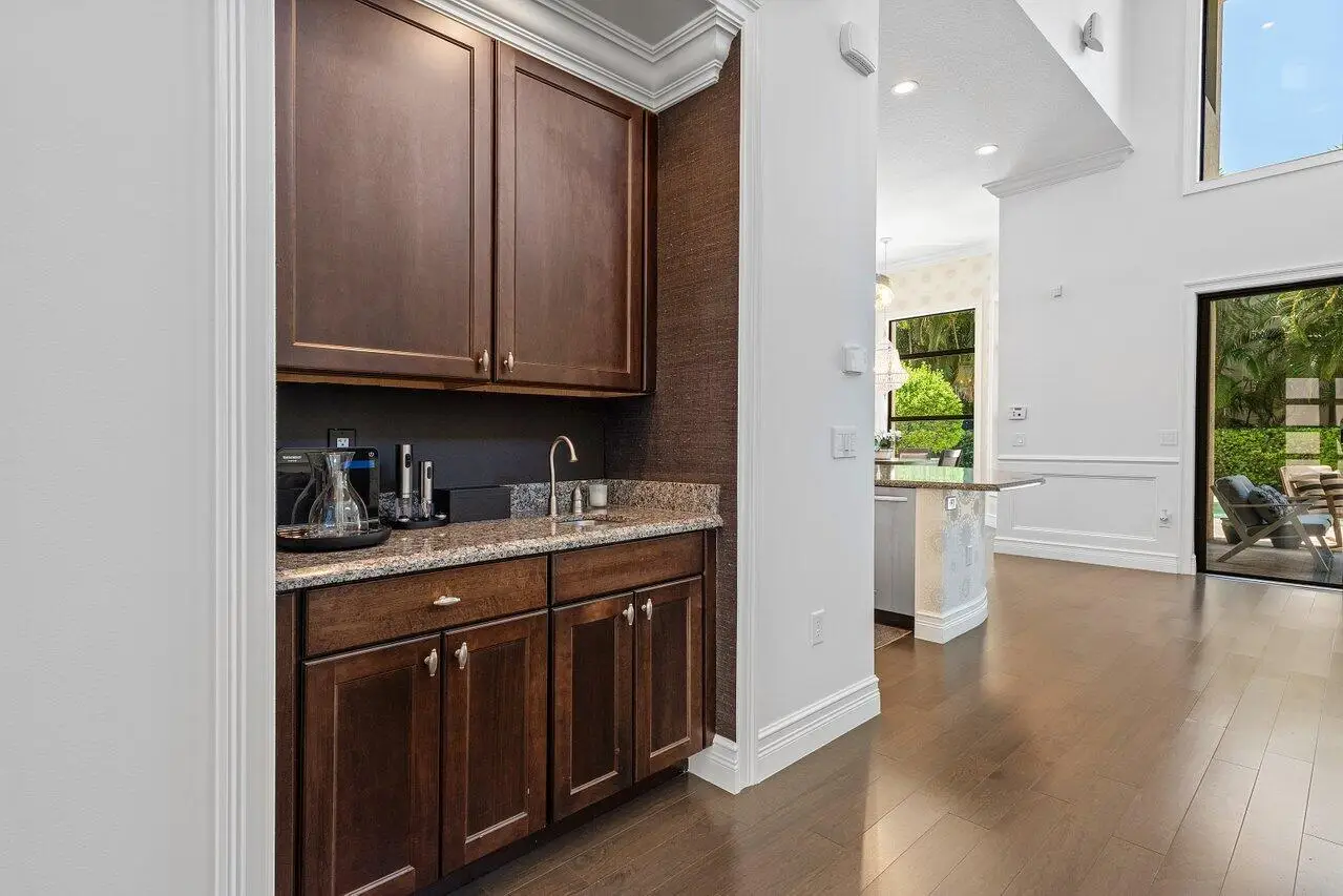 Live Where Luxury Meets Lifestyle - Stunning Sydney Model on Oversized Corner Lot with Whole House Generator. Welcome to your dream home--a rare opportunity to own this elegant four bedroom, five bath Sydney Model, masterfully situated on a massive 14,000+ sq ft fully fenced corner lot. From the moment you arrive, you'll be captivated by the home's crisp modern design, enhanced with handsome developer upgrades and breathtaking curb appeal. Step inside to a dramatic 2-story living room illuminated by designer Ralph Lauren light fixtures, while rich hardwood floors, detailed crown molding, and custom window trim add timeless elegance. Entertain effortlessly with a full wet bar and a 14-ft custom fireplace unit that anchors the living space with sophistication and warmth.