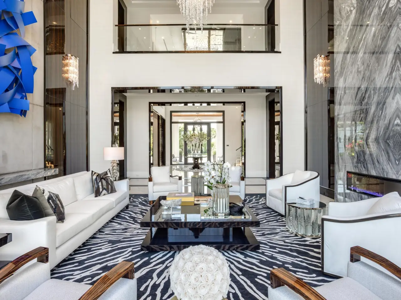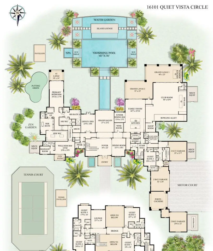 Stately Stone Creek Ranch Lakefront Estate sited on 2.5 +/- acres on the ''Pinnacle of Lots'' in this exclusive guard gated enclave by esteemed team of AK Build & Design, Brenner Architectural Group and Award-Winning Michael Gray Interiors. A streamlined Neo-classical architectural design is set back with an expansive auto plaza and private 6 bay garage. A monumental foyer entrance sets the stage with a grand staircase and direct grand salon window walls views to the shimmering pool and lakefront. A bespoke double island kitchen opens to the family and junior dining rooms all providing endless south views. An adjacent Club Room boasts a concert-sized TV, professional service bar with fine wine storage, two-lane bowling alley and night club seating.