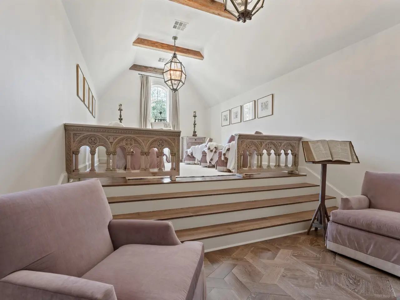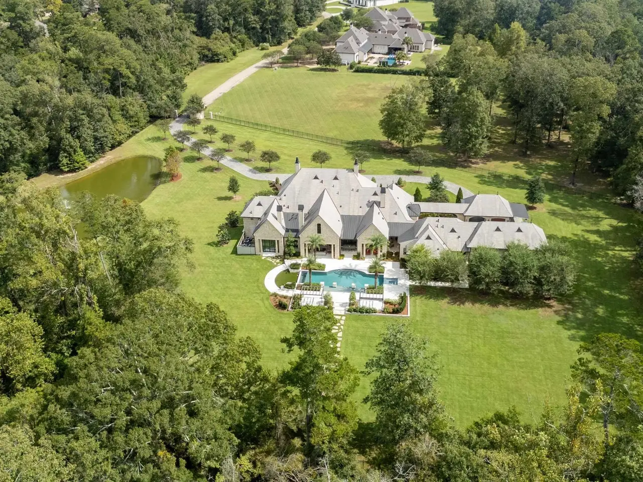 Timeless Luxury, European Flair. Welcome to the most beautiful home you will ever see... a true retreat that words and photos simply cannot capture. Every corner of this estate is filled with details that will take your breath away. Set on 15 gated, mostly wooded acres just 25 minutes from Perkins/Siegen Baton Rouge, Louisiana. This property offers peace, privacy, and an escape from the bustle of the city while keeping convenience close at hand. Inside, this masterpiece features 5 bedrooms each with its own ensuite bath, plus 3 additional half baths. You’ll find a home theater, studio/home gym, craft room, chapel, scullery behind the kitchen, 500 bottle wine room and even 3 laundry rooms for ultimate convenience. The detail is unmatched thanks to Southern Designer-to-the-Stars Kenneth Brown... ombré stair runner, handmade lighting by Paul Ferrante of Los Angeles, stunning trusses and beams, and hand-painted wallpaper bring artistry to every space. The grand entrance, hexagon basket weave wood flooring, and fully furnished interiors create a one-of-a-kind living experience. Outdoors, enjoy an incredible custom pool, outdoor room with phantom screens, hand cut limestone fountain, and grand curb appeal with a 4-car garage and porte cochère. This home is in a league of its own...quality, serenity, and beauty at every turn. Fully furnished and curated without compromise, this is not just a residence, it’s an experience.