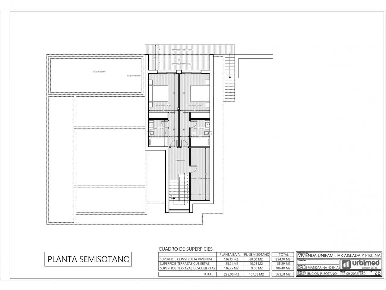 Nice modern villa of about 224 m2 built on a plot of 1.118m2 with open sea and Montgó views. The property is distributed on two levels. The main floor is distributed in entrance hall, living room with open kitchen and laundry area, a full bathroom and two bedrooms, one of them with en-suite bathroom. All units have access to the outdoor area where the pool area is located with covered and uncovered terraces, and the consolidated garden with automatic aspersion irrigation. The ground floor, which is accessed through an internal staircase, there are two bedrooms with en suite bathroom and a room for the technical units. The villa has parking space for several vehicles, air conditioning through ducts and underfloor heating.
