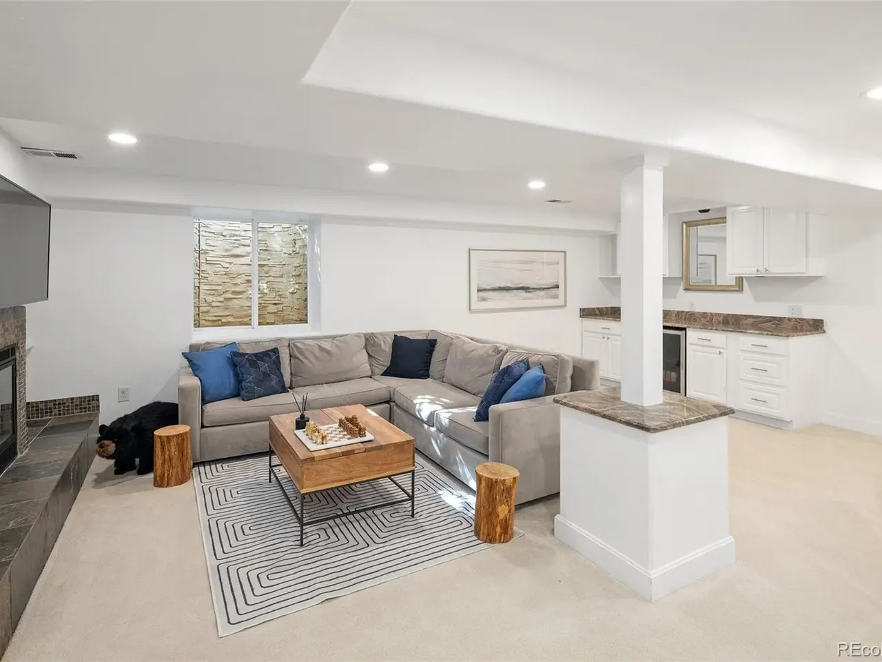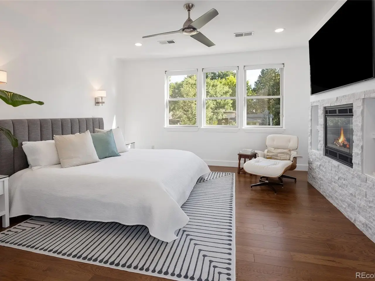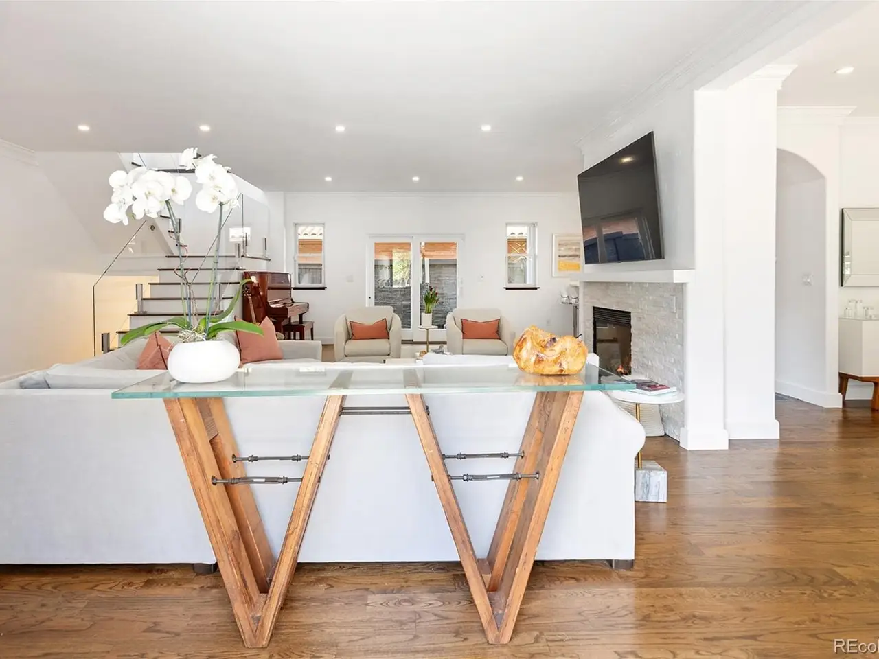 Rebuilt in 2009 with timeless craftsmanship and thoughtful updates, this residence blends elegance with everyday comfort in one of Denver's most desirable neighborhoods. With five bedrooms and an office, it offers value unmatched in the neighborhood. Southern exposure fills each room with natural light, while tree-lined streets, nearby parks, and vibrant dining create the perfect mix of neighborhood charm and city convenience. Inside, new oak floors and an open layout center around a welcoming fireplace, balancing comfort and style. The renovated chef's kitchen features custom cabinetry, quartz countertops, Bosch and Viking appliances, and an island with prep sink and seating - ideal for gatherings. A main floor office with French doors and a spacious main-floor bedroom with en-suite bath make everyday living effortless. Upstairs, the primary suite boasts a cozy fireplace, spa-like bath, and generous walk-in closet, accompanied by two sunlit bedrooms, a full bath, and a convenient laundry room. A finished basement with bedroom, a bath and fireplace provides flexible space for guests, a gym, or media. Outdoors, a tranquil water feature, two flagstone patios, and a firepit combine to create a private backyard oasis. All this in an unbeatable location with preferential waiting list to the Crestmoor Swim & Tennis Club. New furnace and A/C for main floor & basement installed 2022. New furnace & A/C for upstairs installed 2020.